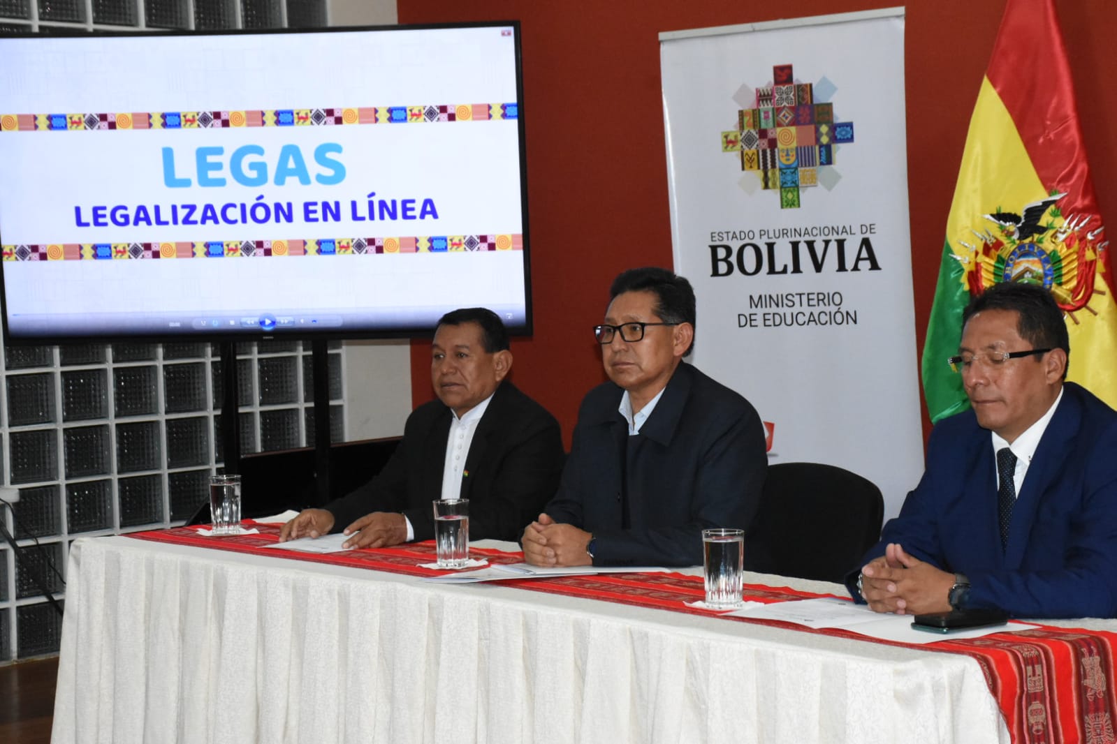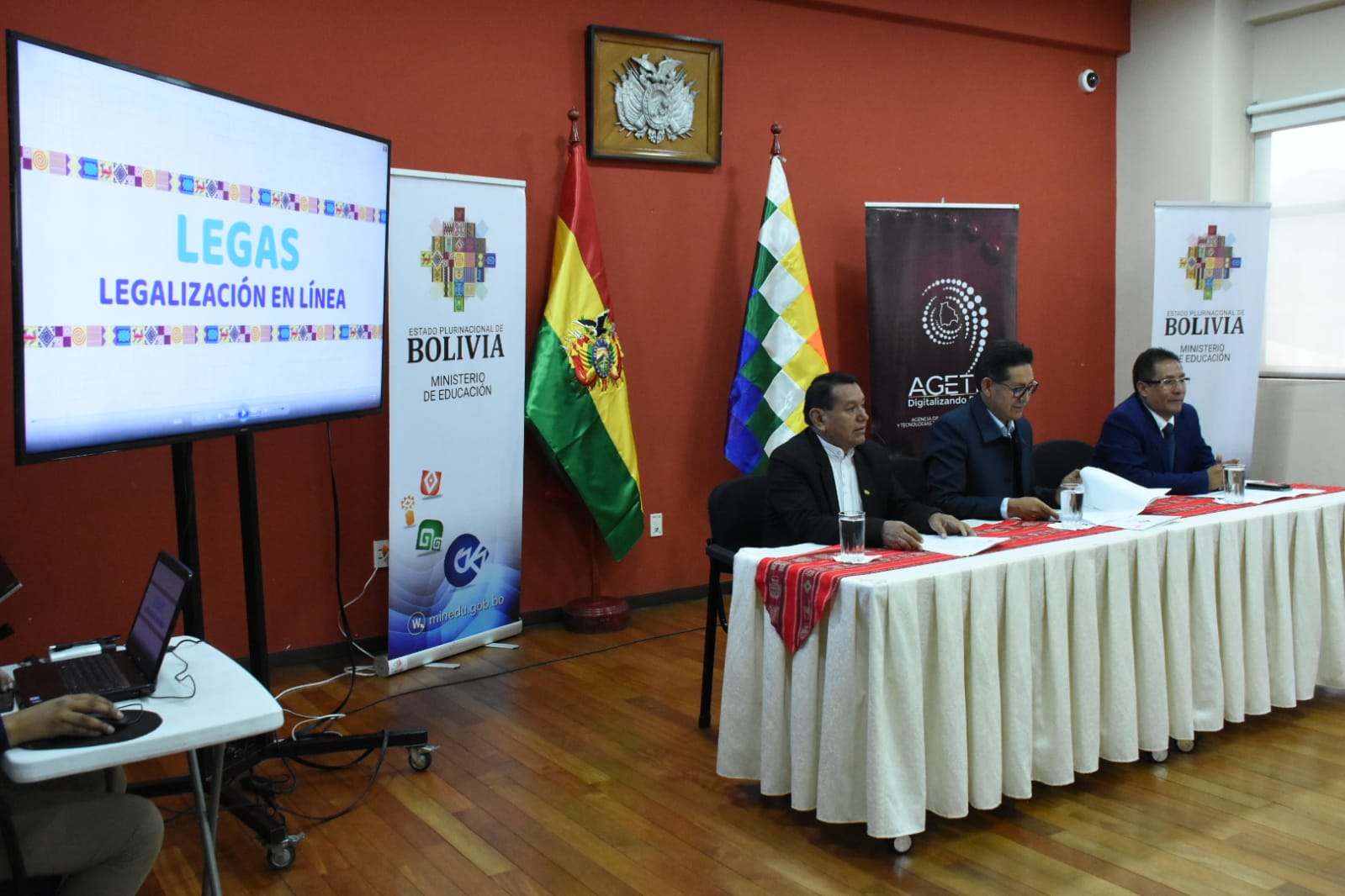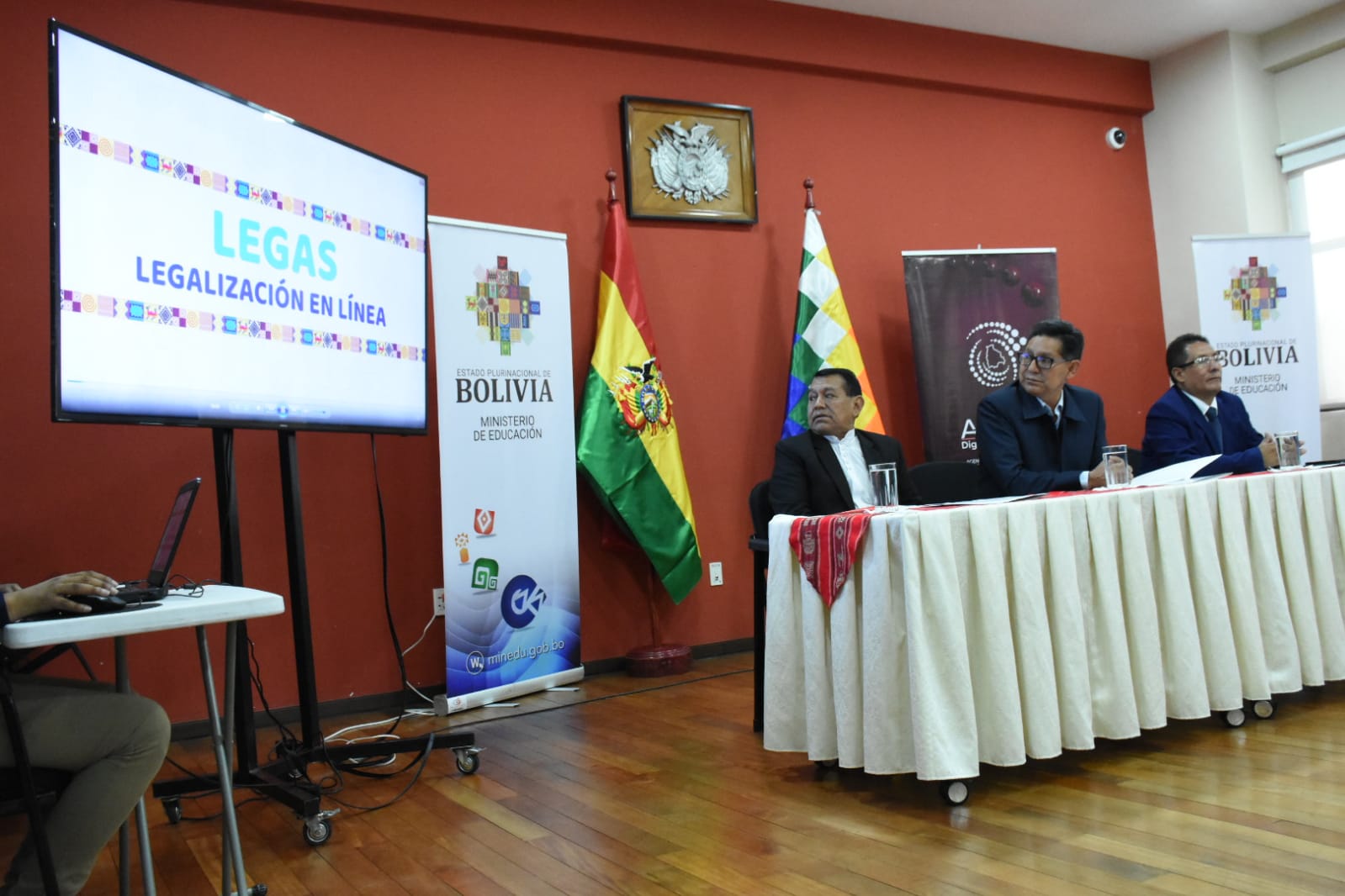 El ministro de Educación, Edgar Pary, realizó el lanzamiento del sistema de Legalización y Certificaciones digitales - legaUsuario ABIGalería Fotográfica 07 Febrero 2023 Visto: 12024ShareTwittearshare with Whatsappshare with Telegram Fotos Jorge MamaniAnteriorSiguiente