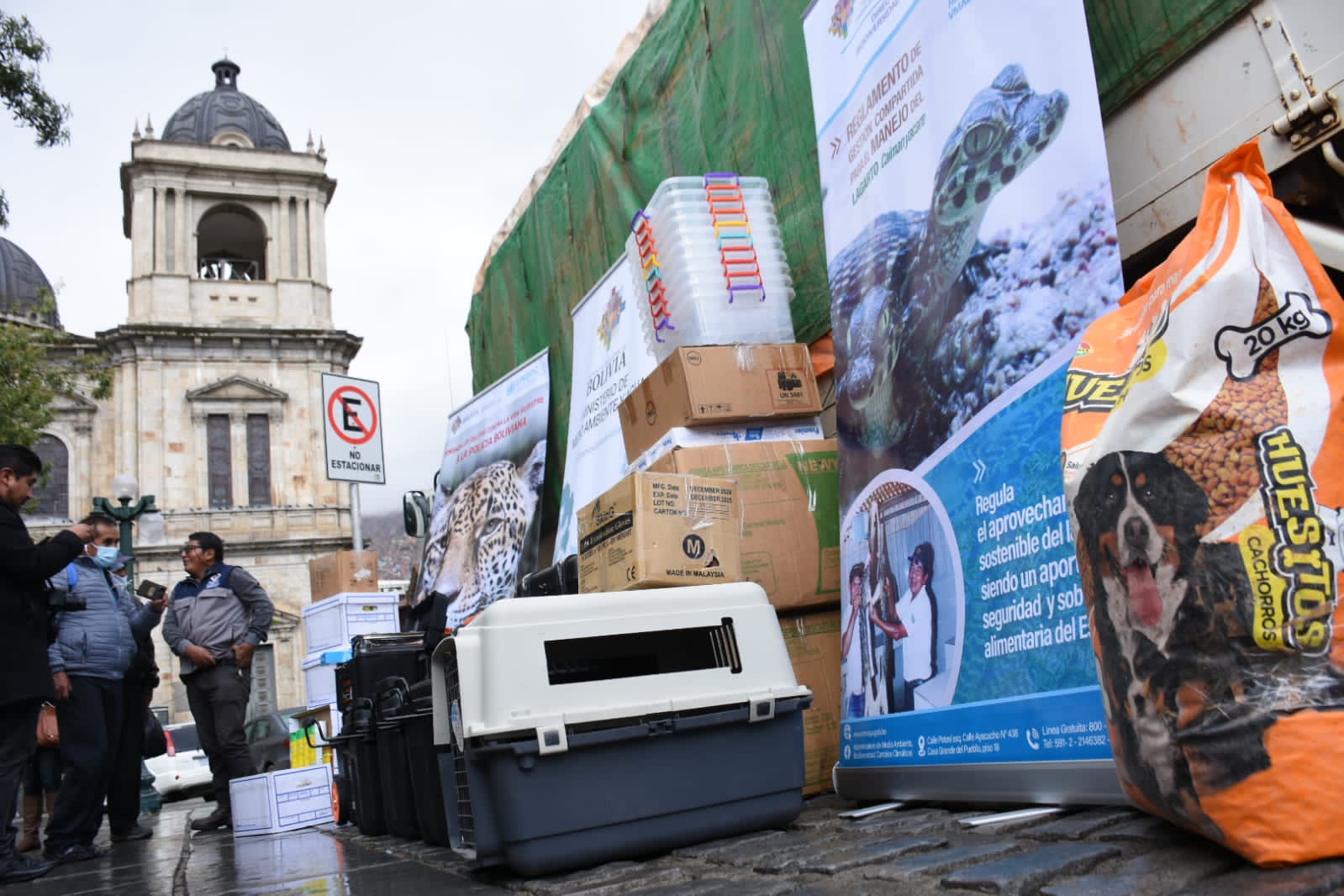 El Viceministerio de Medio Ambiente Juan Santos Cruz, envía alimentos, medicinas, jaulas e instrumental para animales silvestres afectados por los últimos eventos climáticos para cinco municipios de Santa Cruz