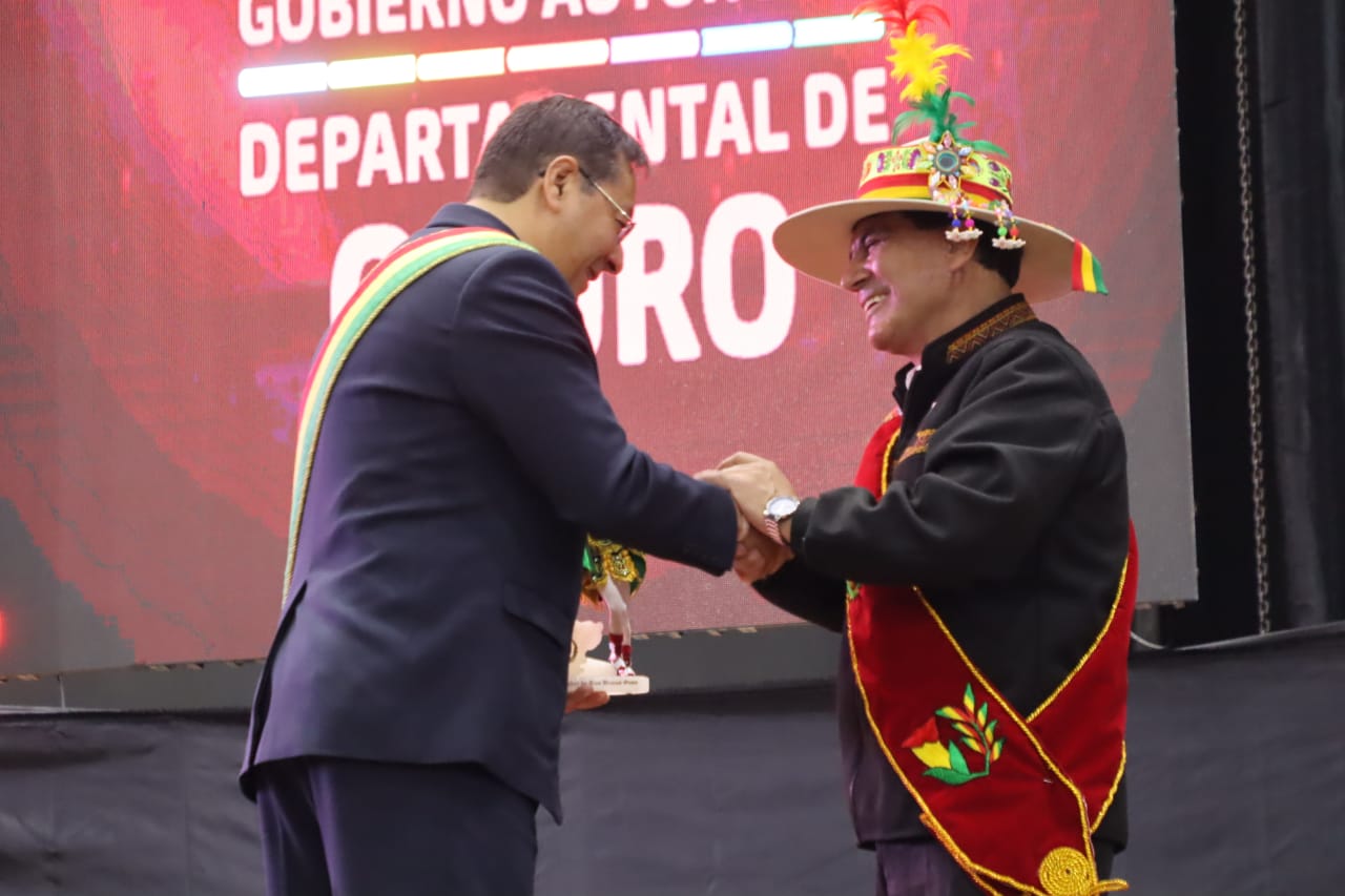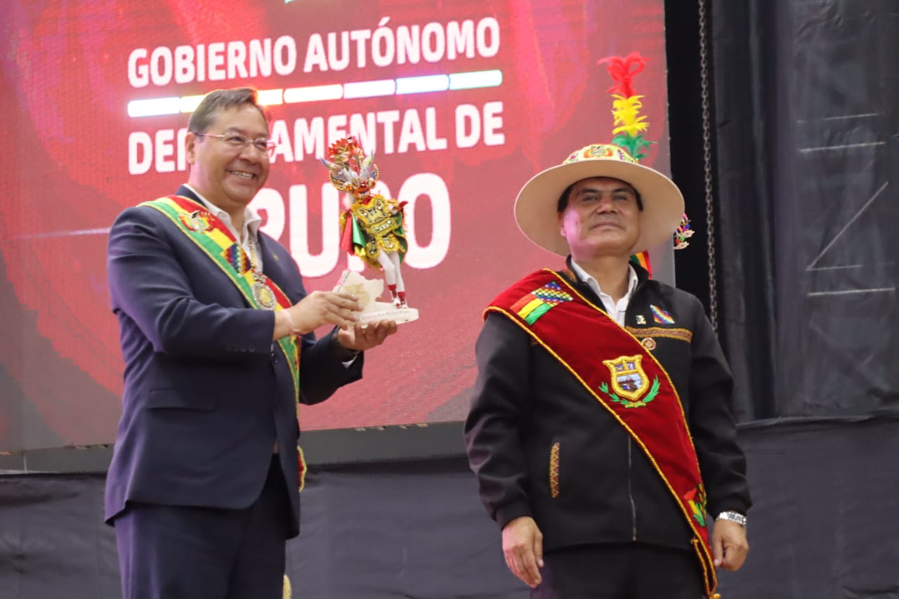 El Presidente del Estado Luis Alberto Arce Catacora participa en la Sesión de Honor en homenaje al aniversario de la gesta libertaria de OruroUsuario ABIGalería Fotográfica 09 Febrero 2023 Visto: 11379ShareTwittearshare with Whatsappshare with Telegram Fuente: Comunicación PresidencialAnteriorSiguiente