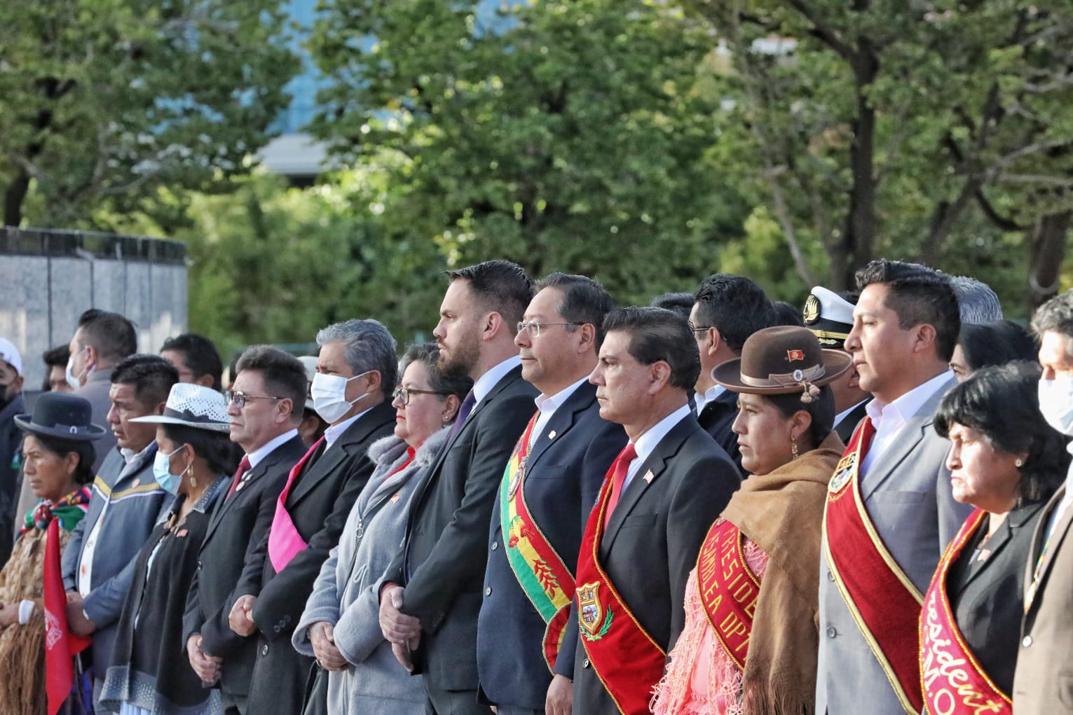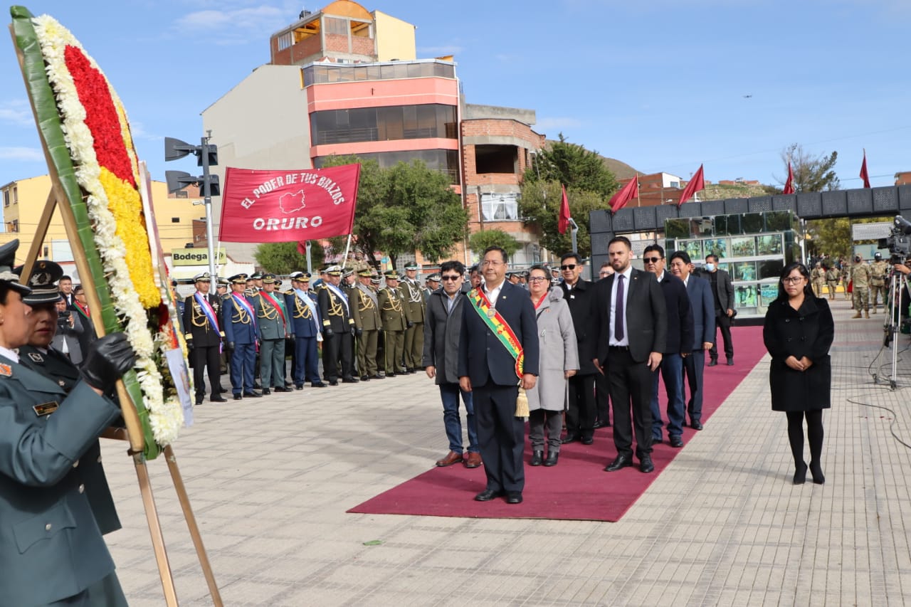 El Presidente del Estado Luis Alberto Arce Catacora participa de la ofrenda floral e iza de las banderas en homenaje a los 242 años de la gesta libertaria de OruroUsuario ABIGalería Fotográfica 10 Febrero 2023 Visto: 11564ShareTwittearshare with Whatsappshare with Telegram Fuente: Comunicación PresidencialAnteriorSiguiente