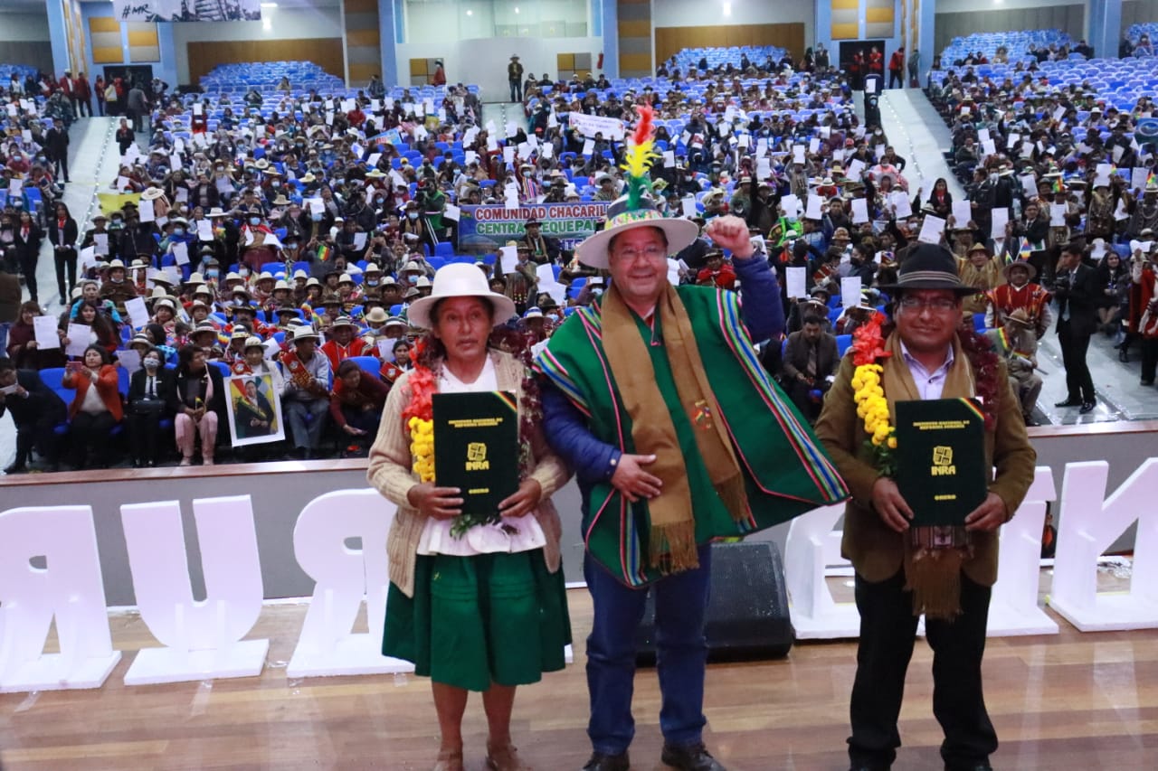 El Presidente del Estado Luis Arce Catacora entrega 3.612 títulos agrarios de propiedad en OruroUsuario ABIGalería Fotográfica 10 Febrero 2023 Visto: 11672ShareTwittearshare with Whatsappshare with Telegram Fuente: Comunicación PresidencialAnteriorSiguiente