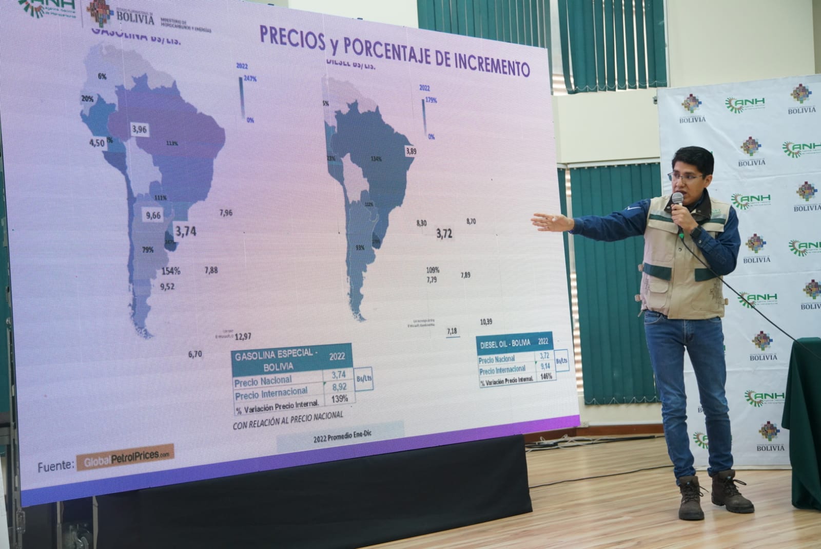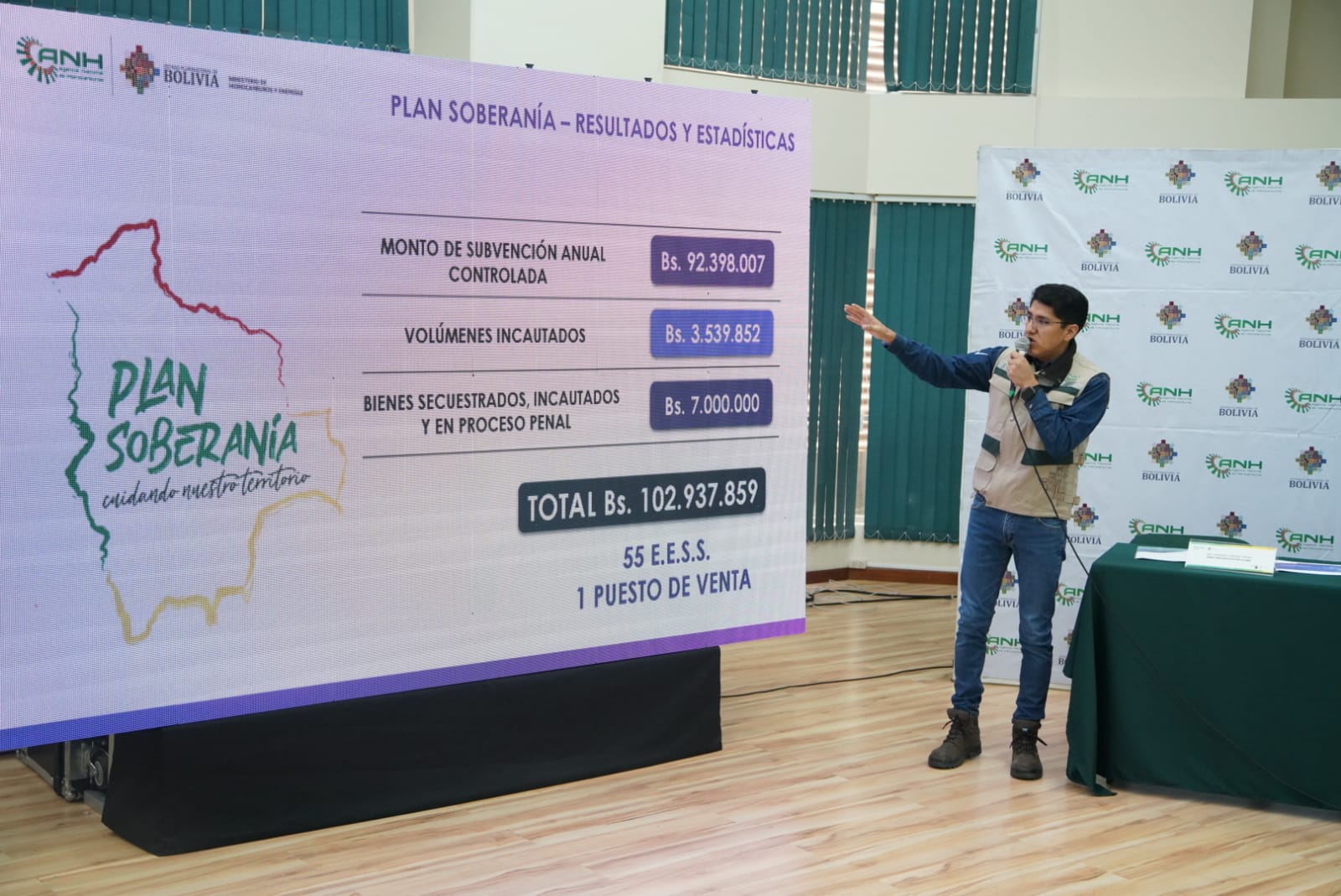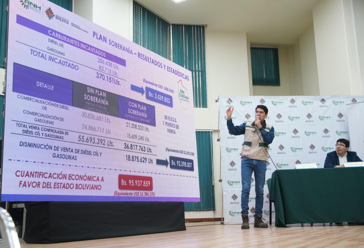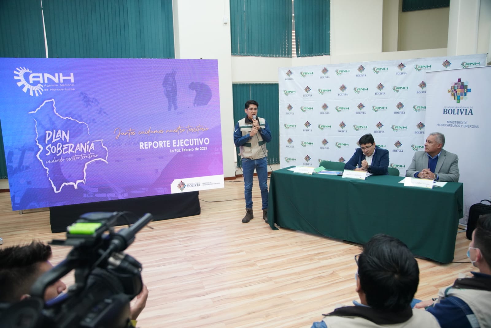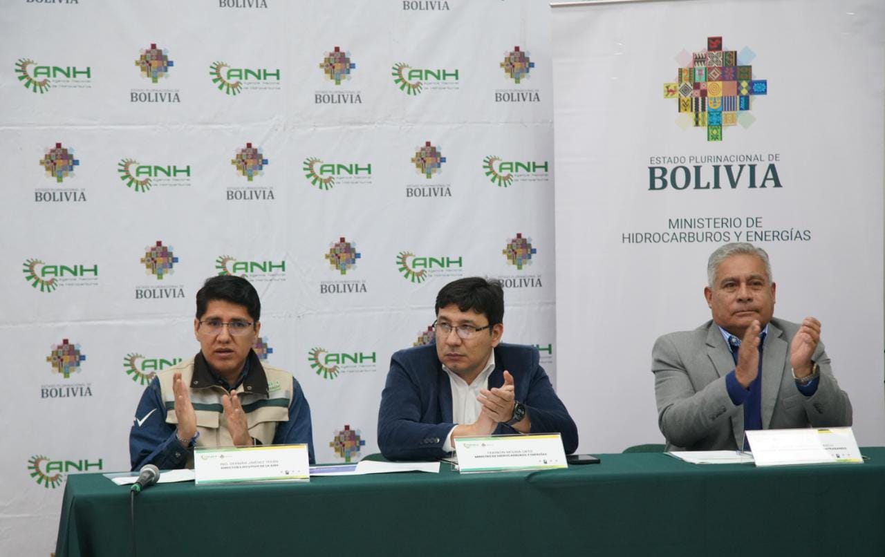 El Ministro de Hidrocarburos y Energías Franklin Molina y Director de la ANH Germán Jiménez informa de los resultados del plan soberanía lucha contra el contrabandoUsuario ABIGalería Fotográfica 13 Febrero 2023 Visto: 13436ShareTwittearshare with Whatsappshare with Telegram Fotos Jorge MamaniAnteriorSiguiente