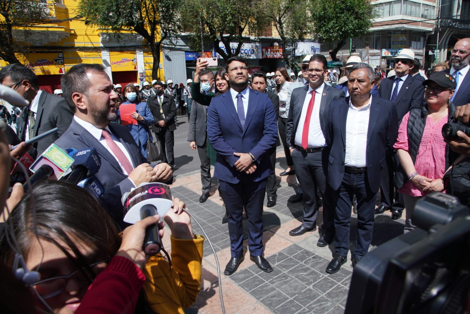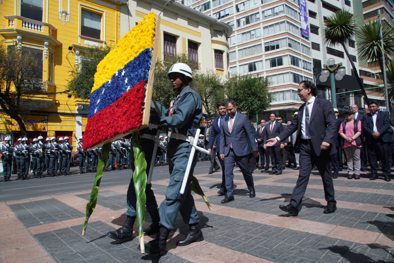 Ofrenda Floral al Monumento del Libertador Simón Bolívar con la participación del Ministro de Relaciones Exteriores, Rogelio Mayta y el Canciller de la República Bolivariana de Venezuela Yván Gil