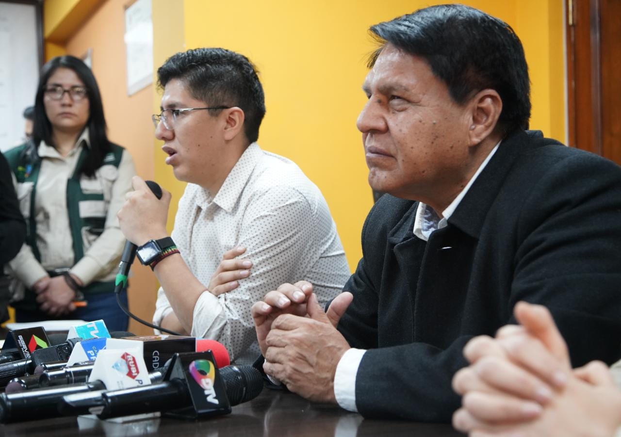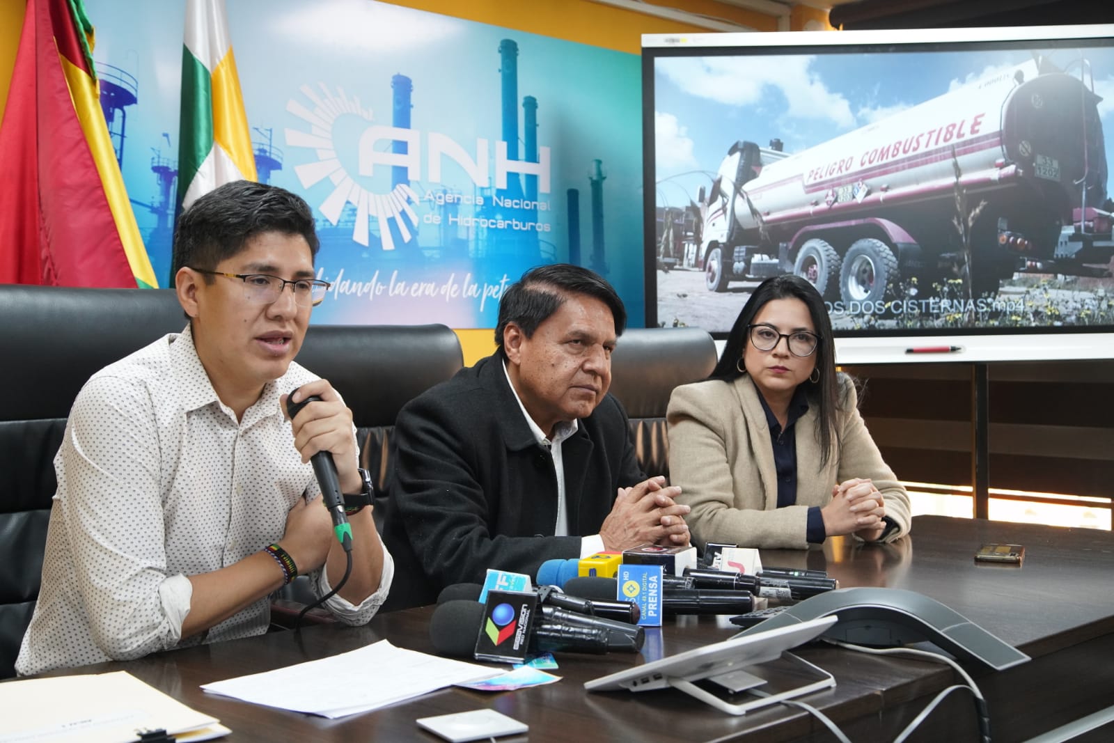 Hidrocarburos (Asosur), ofrecen una conferencia de prensa, sobre la Política de Control y Lucha contra el Contrabando de Combustibles. Fotos Jorge Mamani