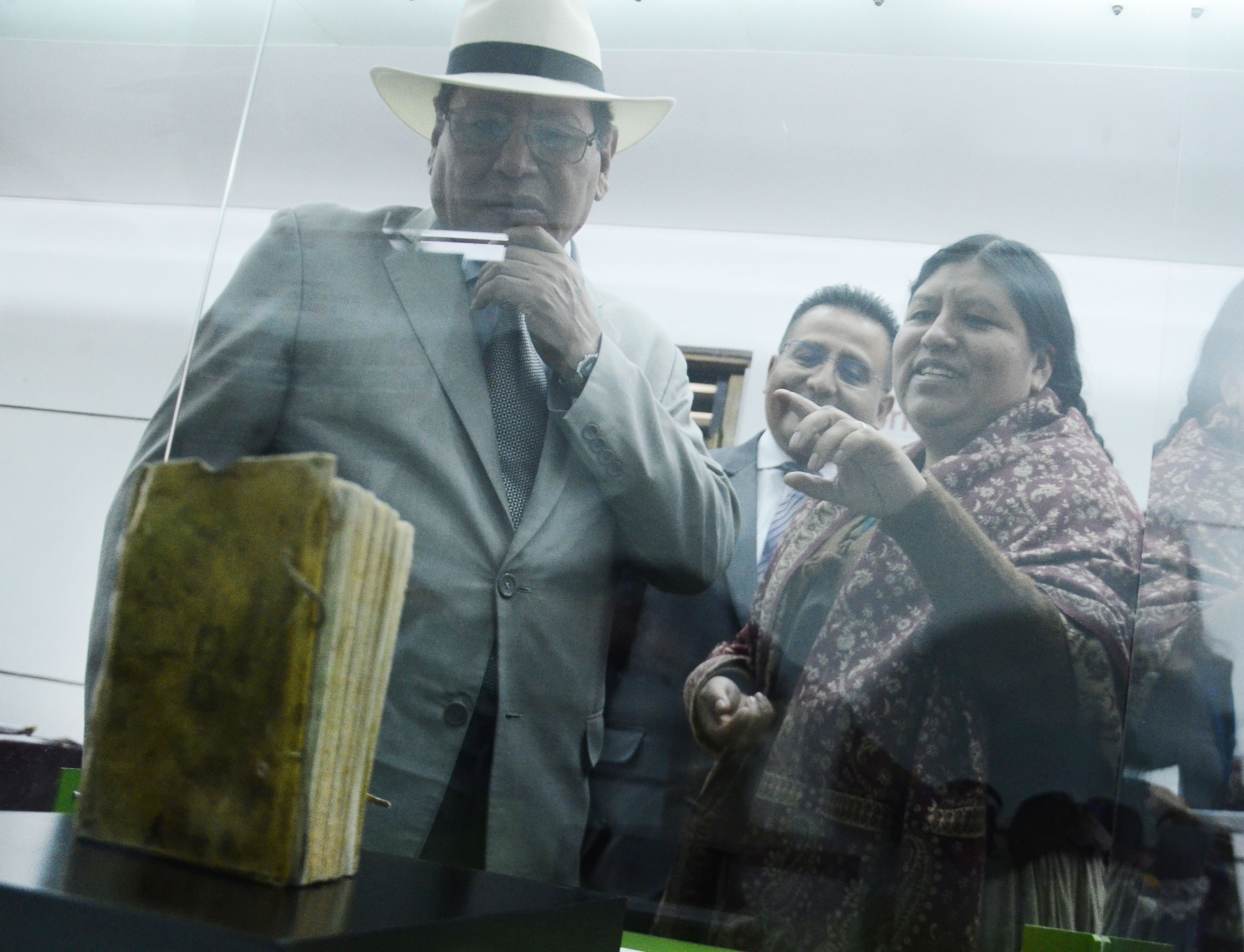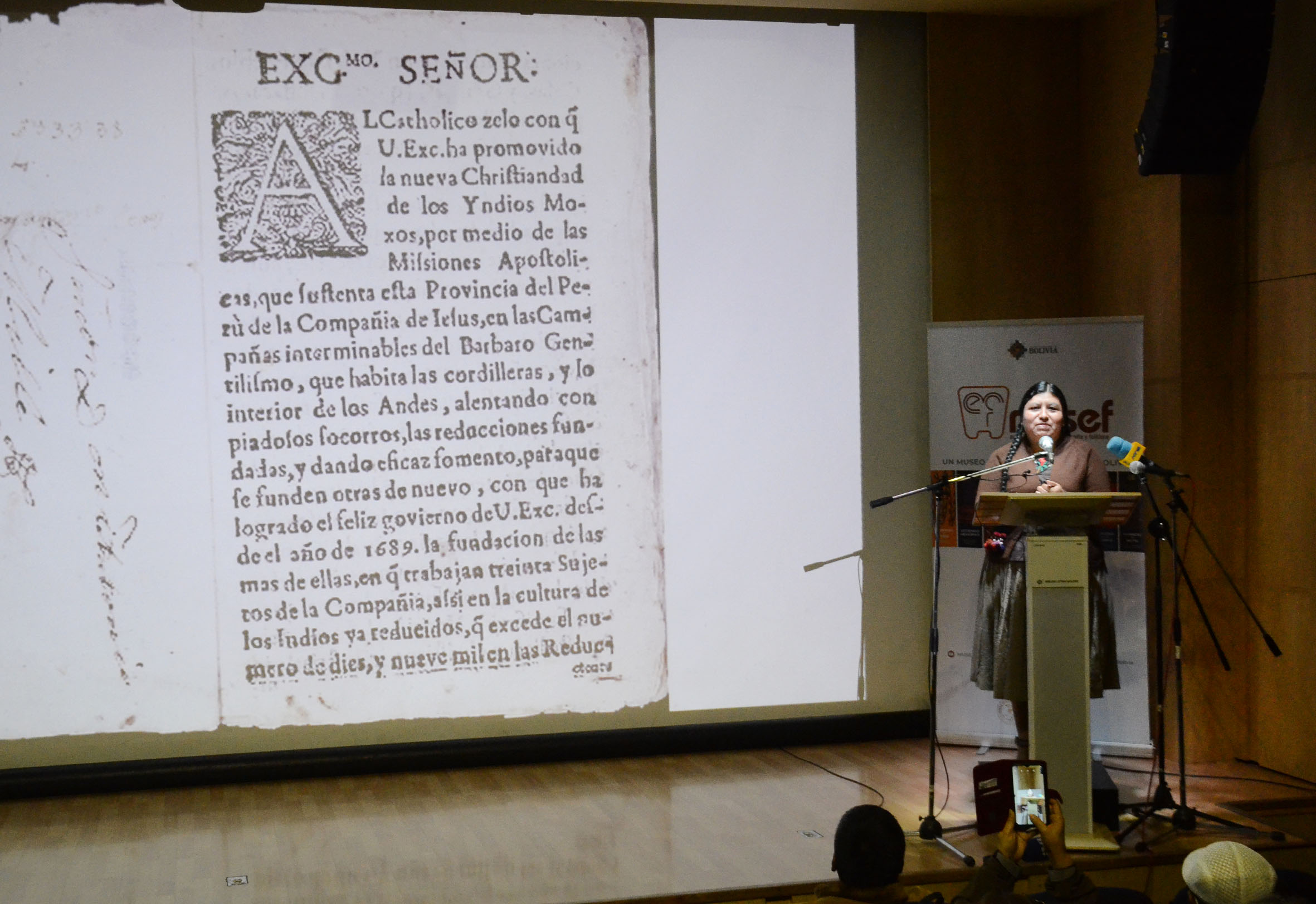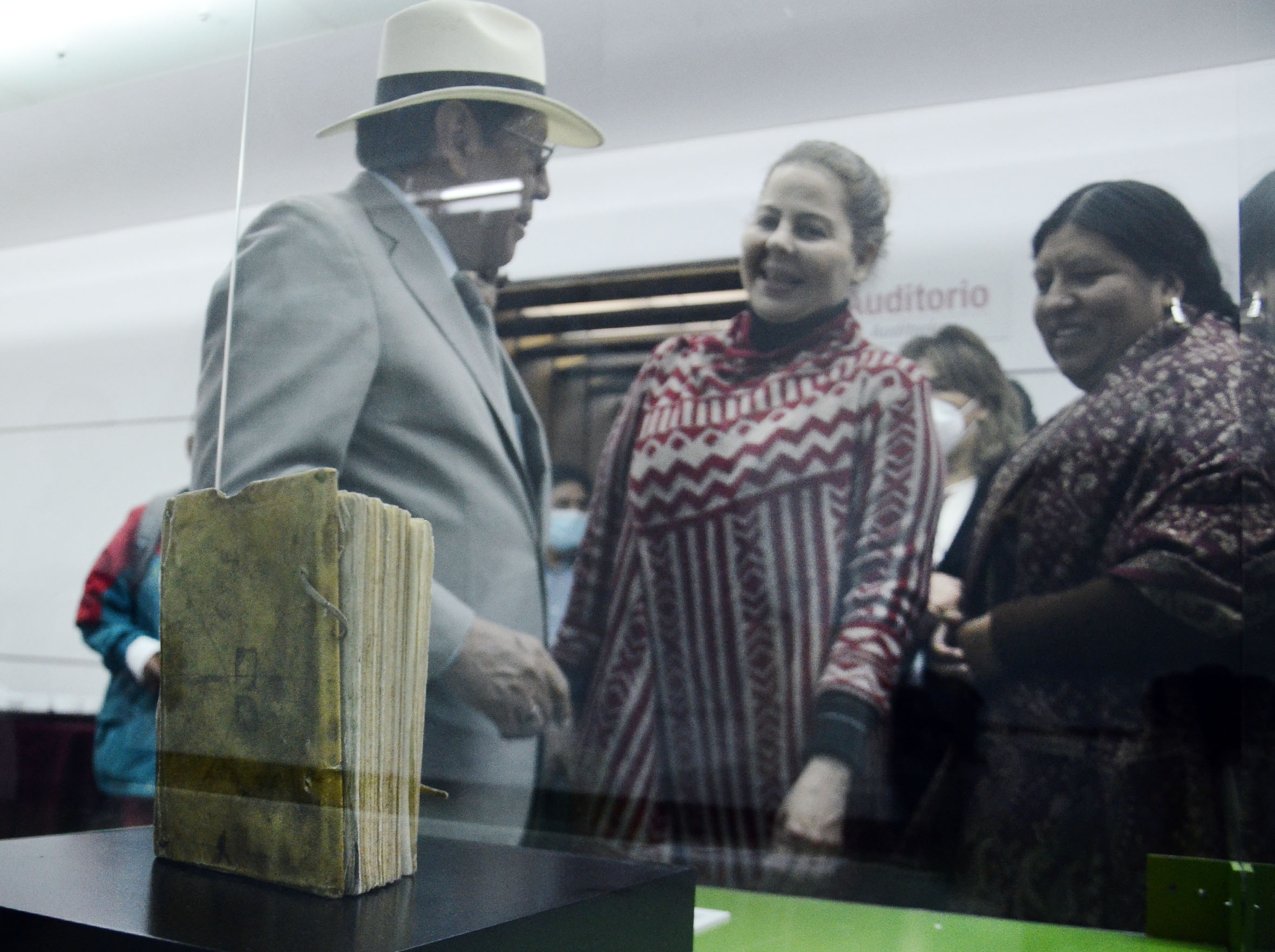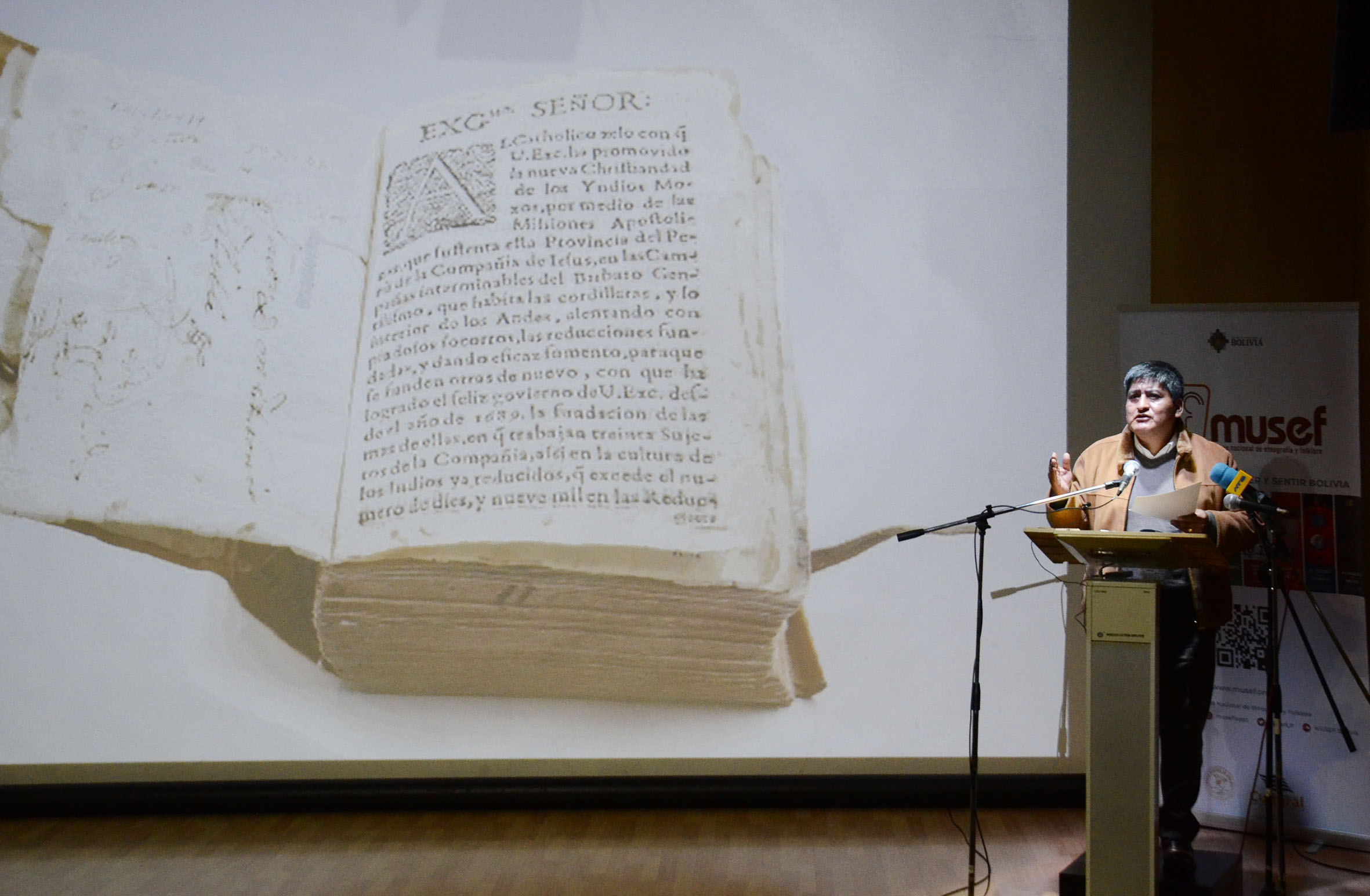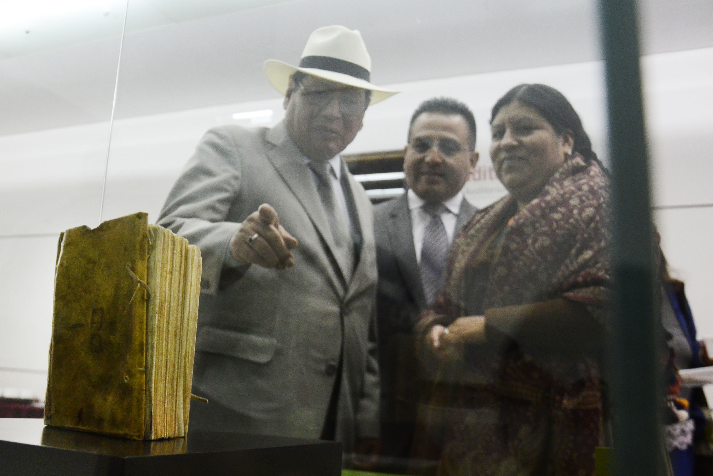 Entrega de certificado de la declaratoria MOWLAC - UNESCO Diccionario de la lengua Moxa, de Pedro Marbán. En instalaciones del MUSEF