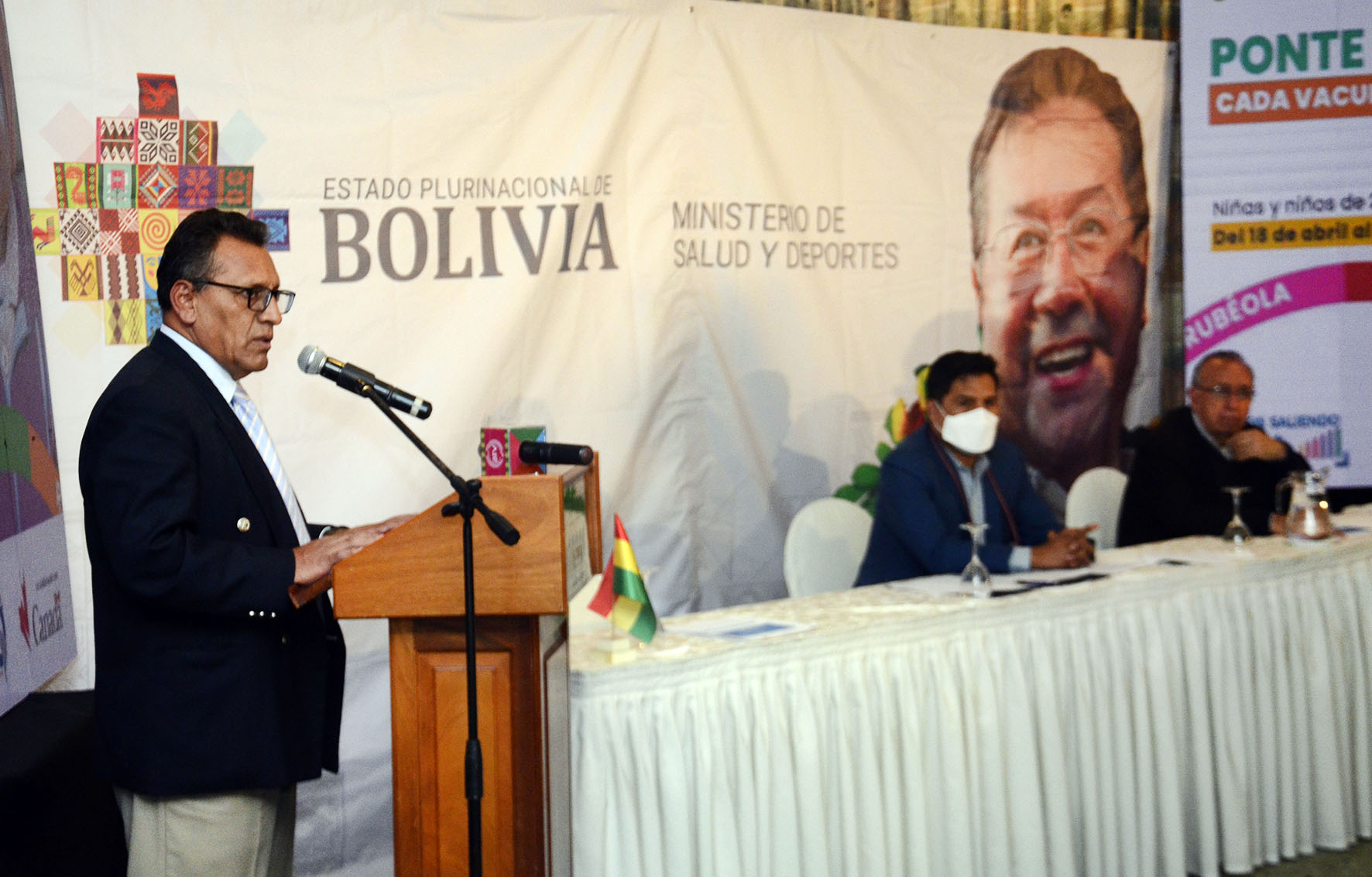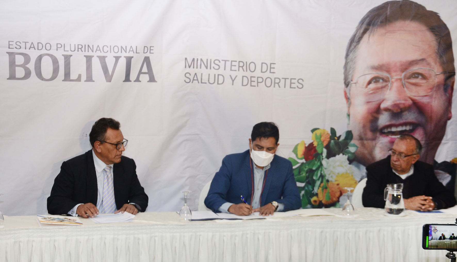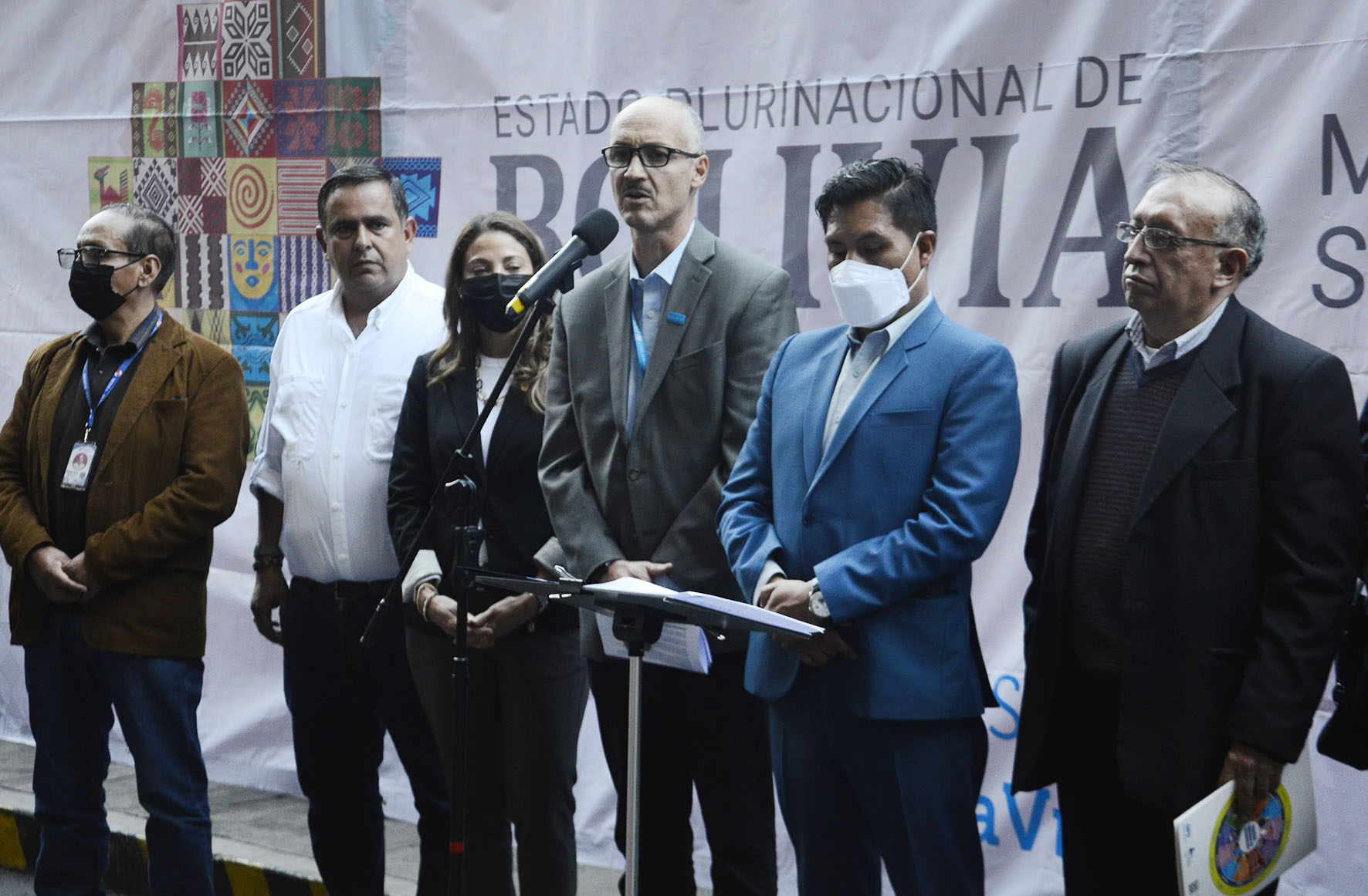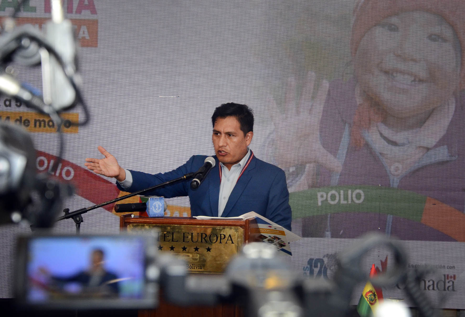 El Ministro de Salud y Deportes, Dr. Jeyson Auza, participa de las conclusiones de la reunión con los SEDES departamentales, se presenta el plan de contingencia contra infecciones respiratorias y entrega de equipos de cadena de frio para el fortalecimiento del sistema de salud en Bolivia. Fotos: Freddy Barragán