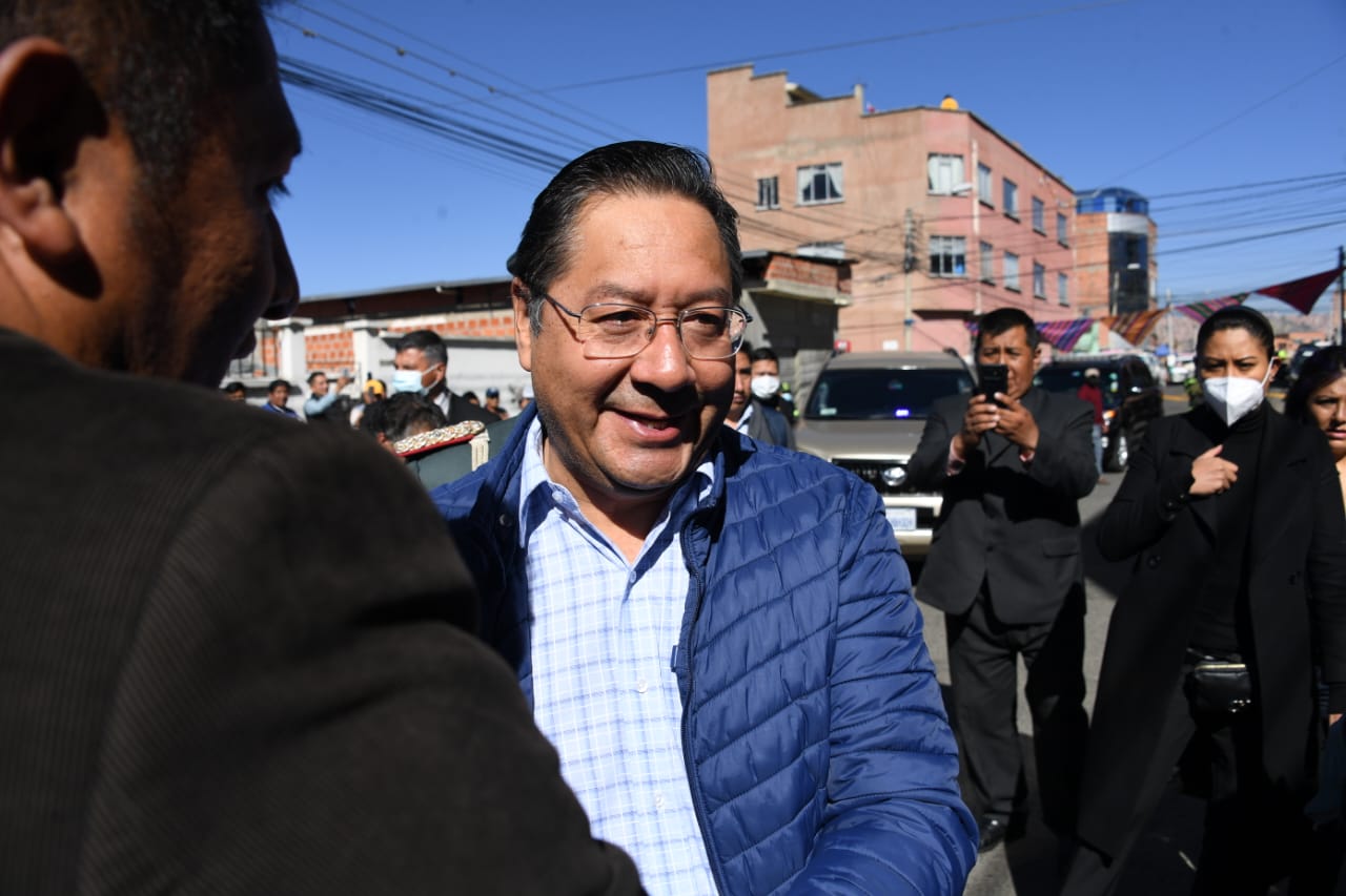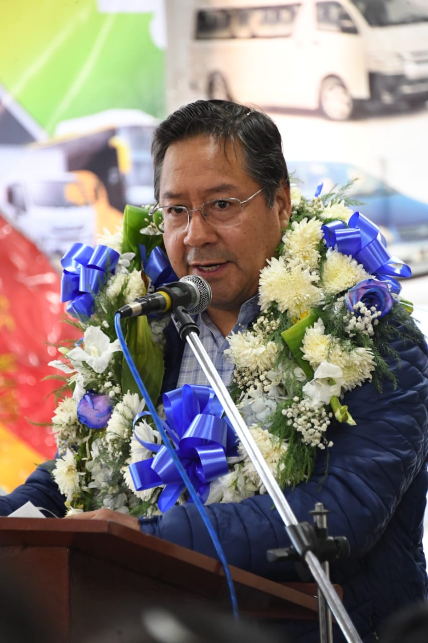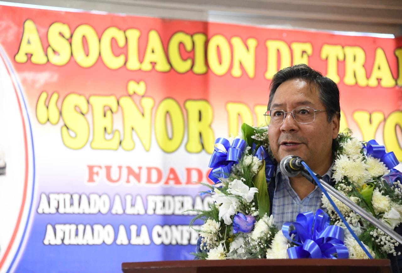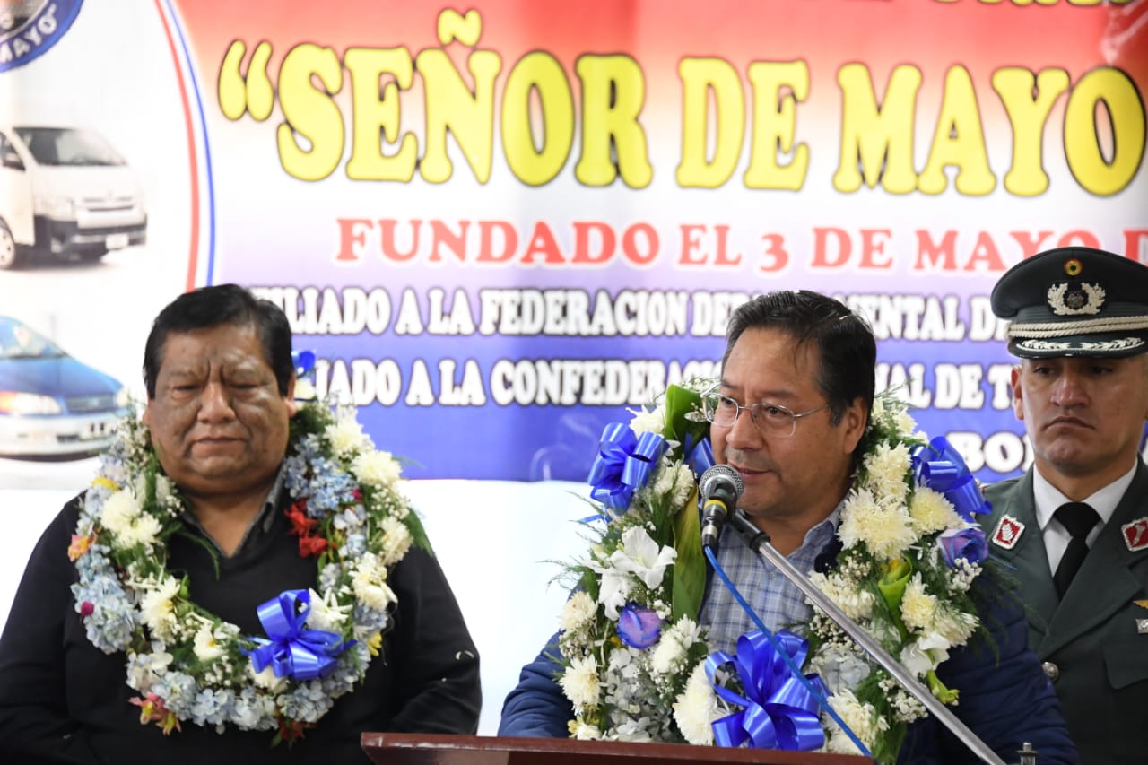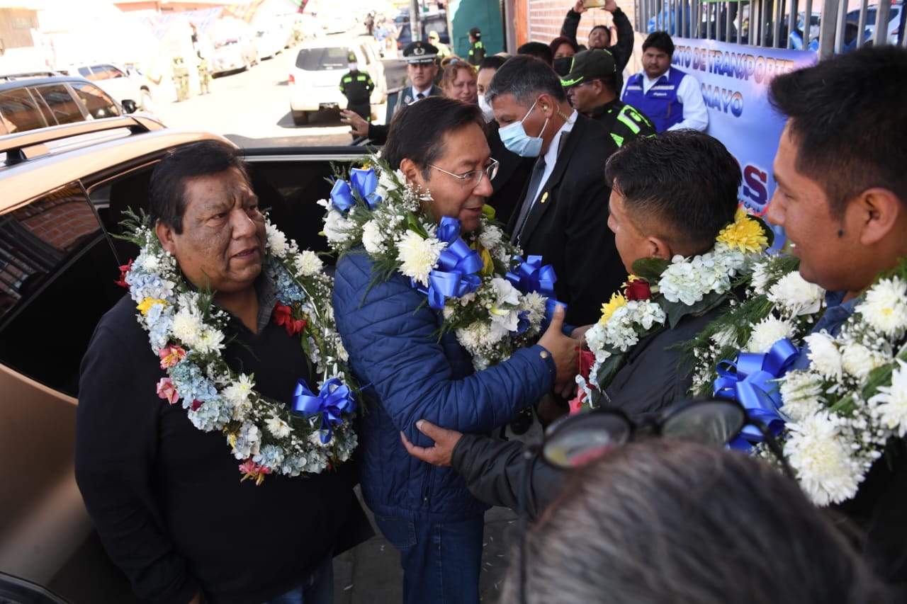 El Presidente del Estado Plurinacional de Bolivia Luis Arce Catacora participa del ampliado de la confederación Nacional de Transporte libre de Bolivia en Pampahasi, La Paz. Fotos: Josué Cortéz