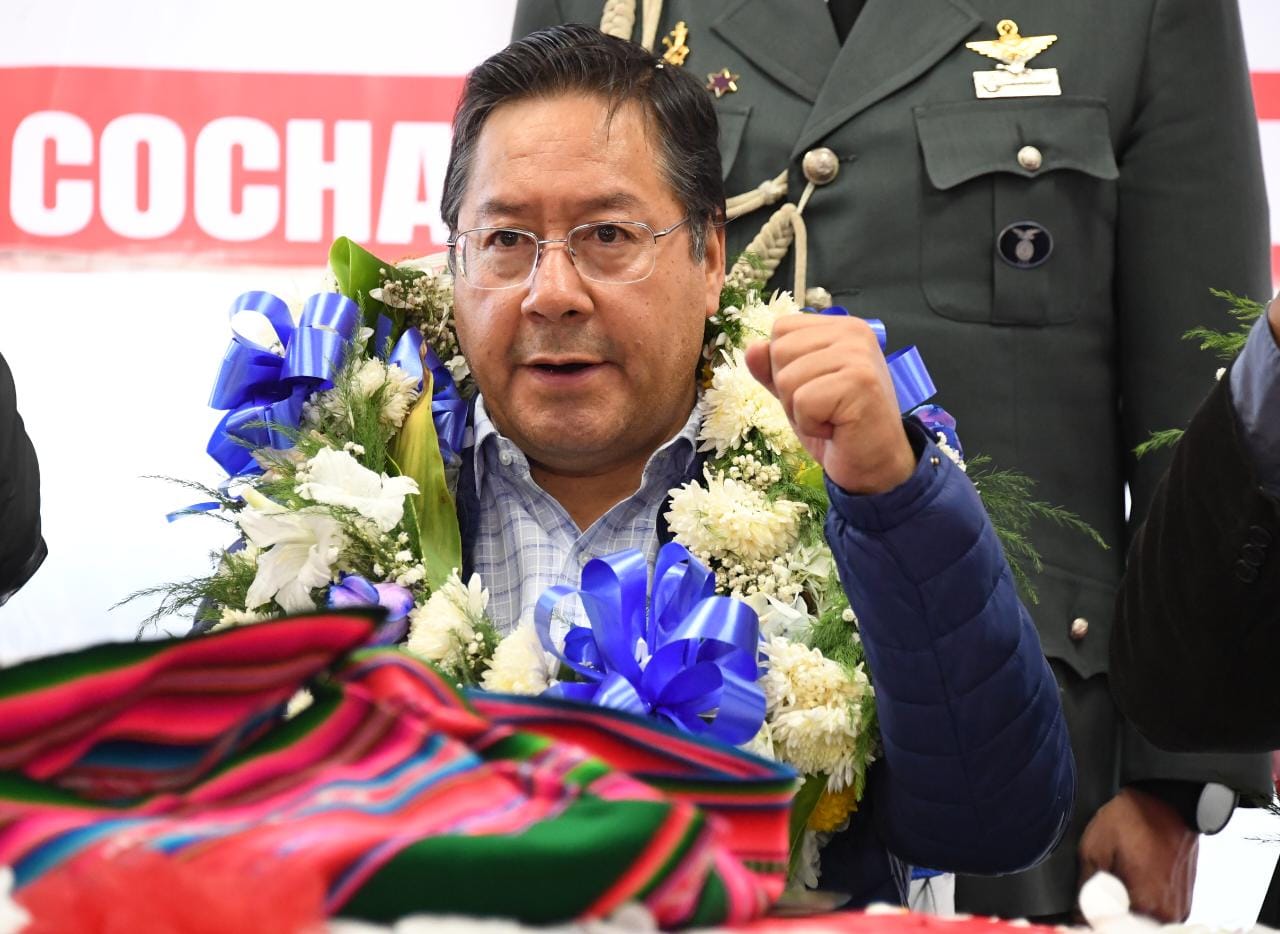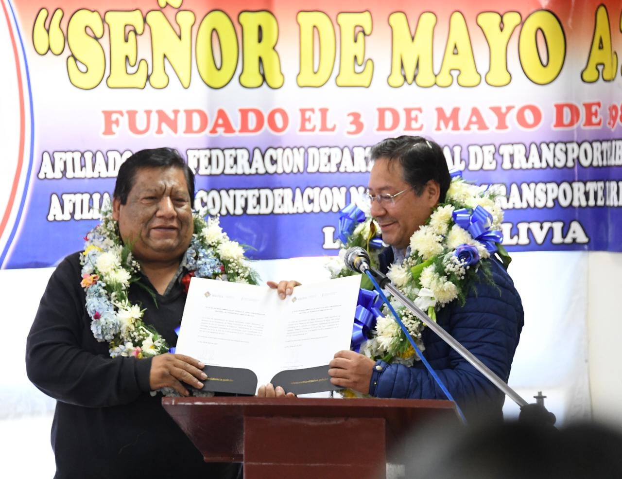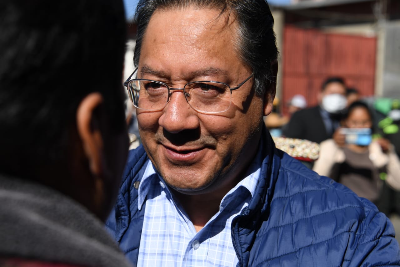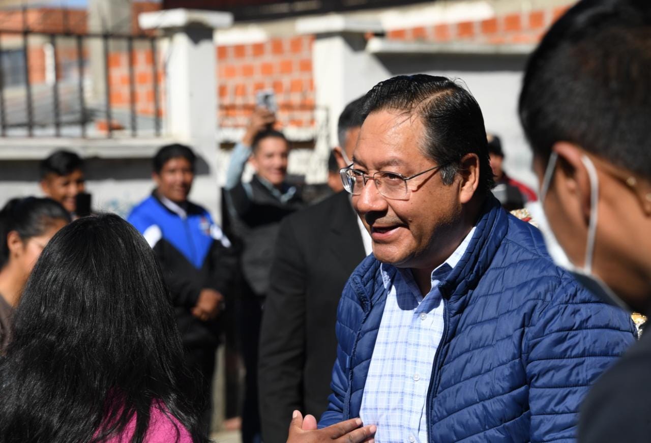 El Presidente del Estado Plurinacional de Bolivia Luis Arce Catacora participa del ampliado de la confederación Nacional de Transporte libre de Bolivia en Pampahasi, La Paz. Fotos: Josué Cortéz