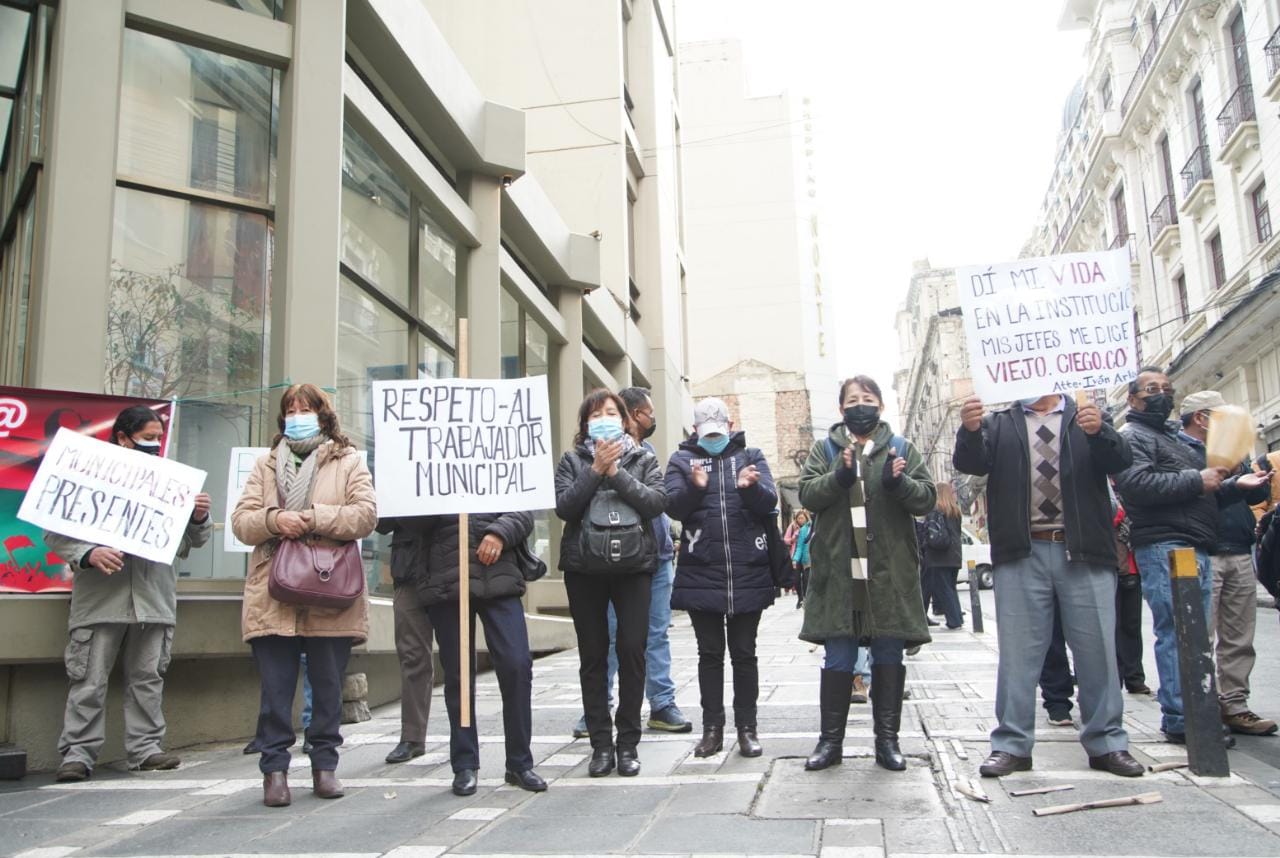 Trabajadores de la Alcaldía de La Paz, exigen el pago de bonos y el incremento salarial de la gestión 2022