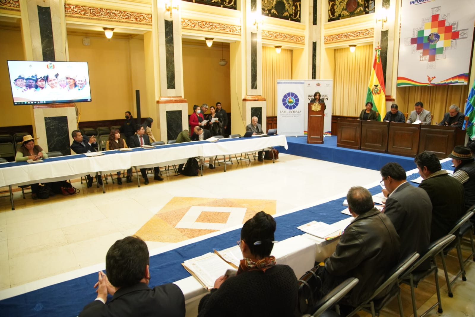 Con la participación del Vicepresidente, David Choquehuanca, se realiza el evento Gobiernos Autónomos Municipales en la Elaboración del Informe del Vivir Bien”, en el Hall de la Vicepresidencia. Fotos: Jorge Mamani