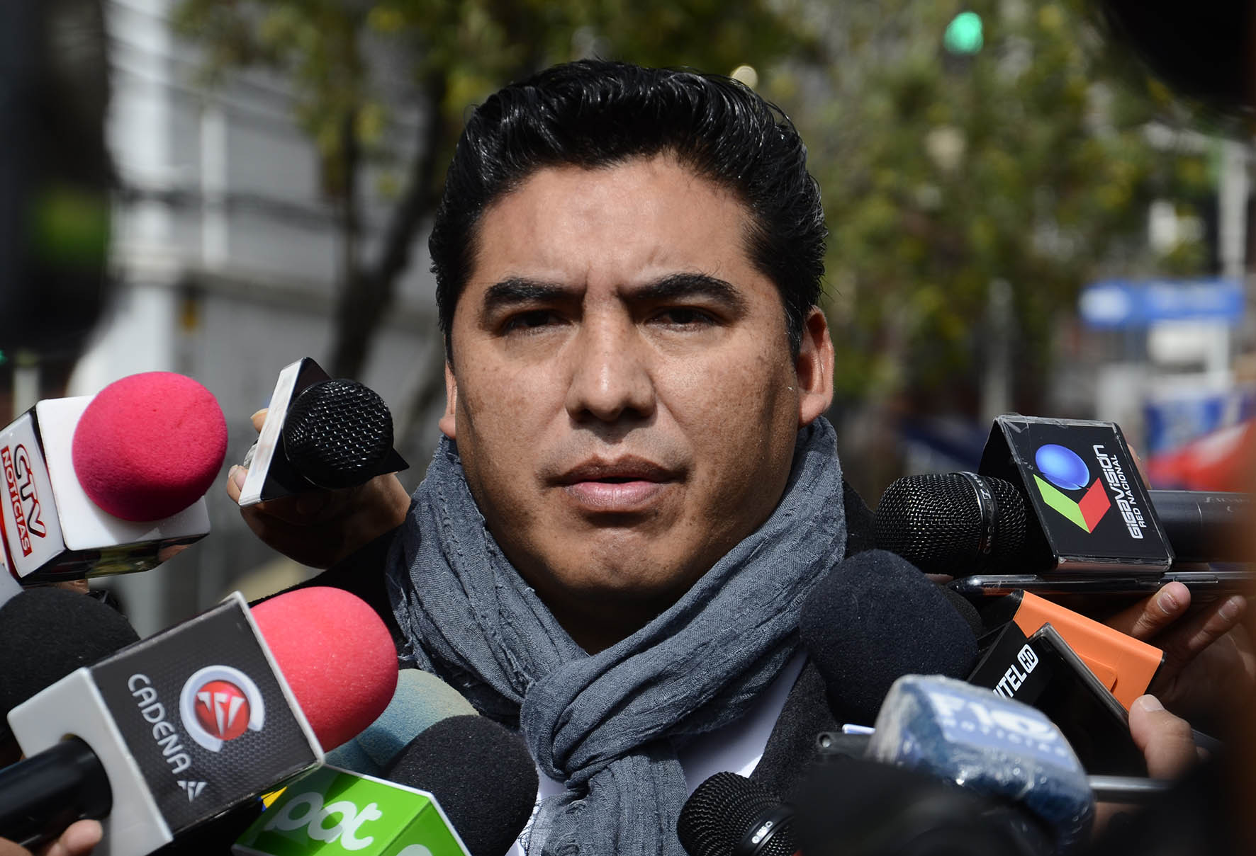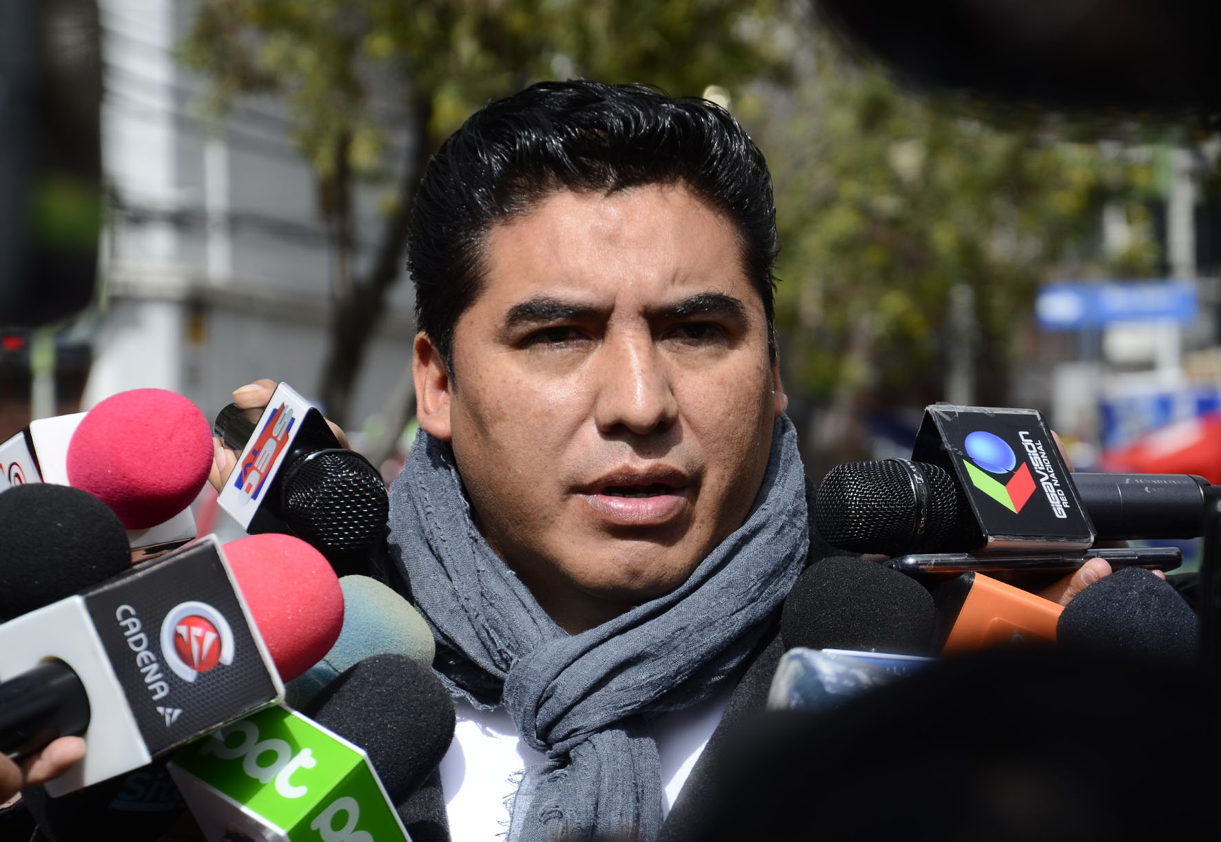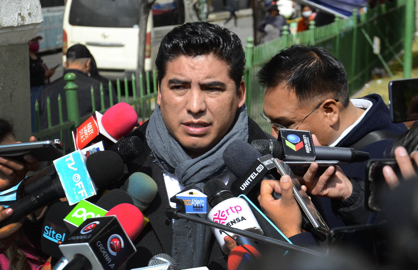 El Director de Régimen Penitenciario, Lic. Juan Carlos Limpias se dirige a los medios de comunicación sobre la salud del privado de libertad Luis Fernando Camacho. Foto: Freddy Barragán