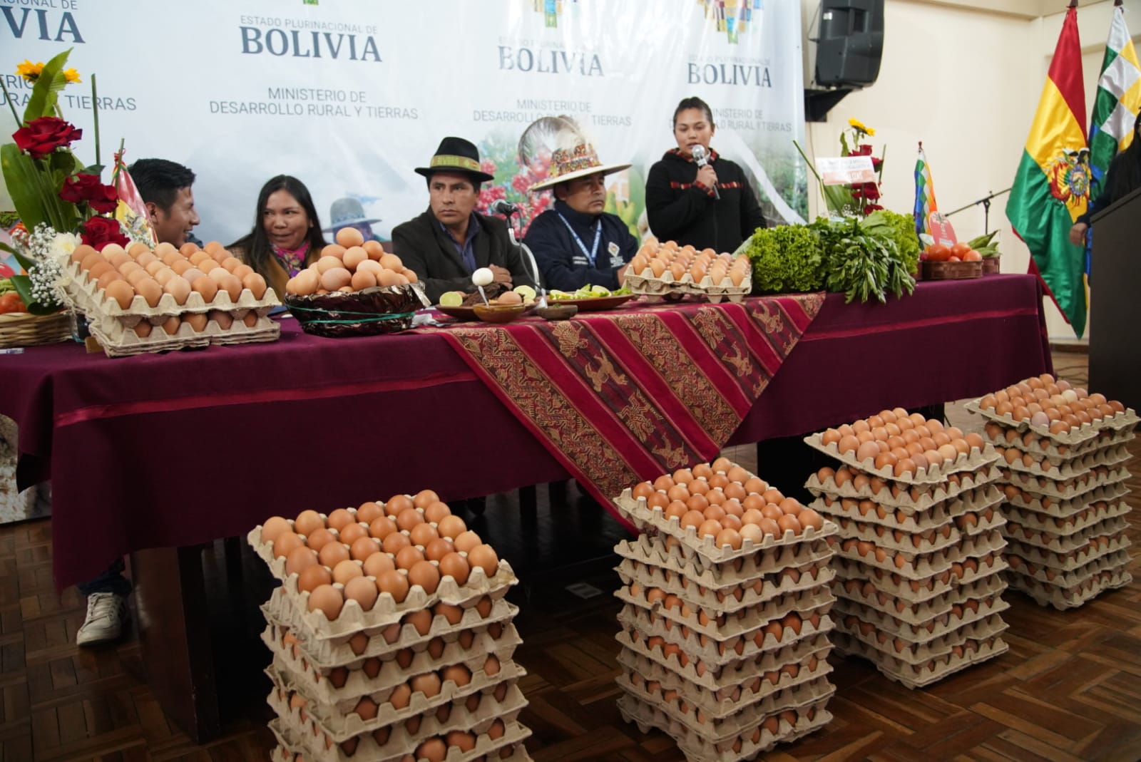 Lanzamiento de la “Feria del Campo a la Olla: Huevo, Hortalizas, tubérculos, frutas y carnes”, a través del Ministerio de Desarrollo Rural y Tierras, y Viceministerio de Desarrollo. Fotos: Jorge Mamani