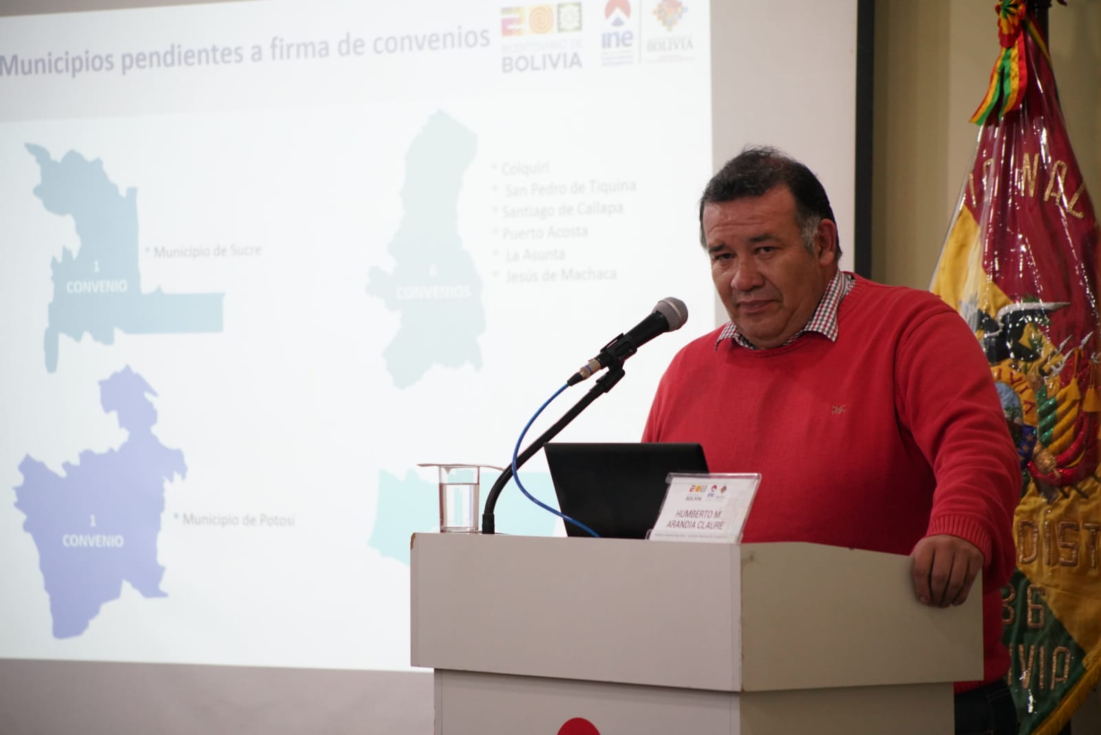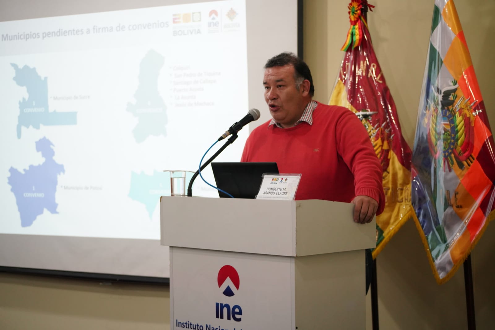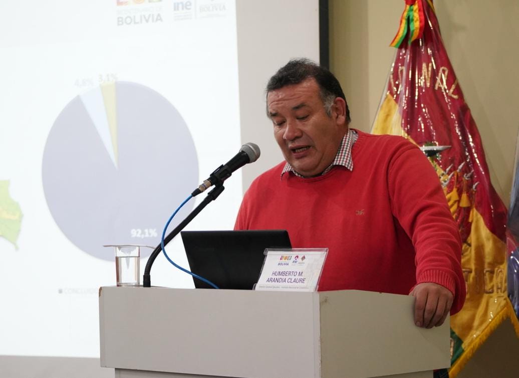 El Director General Ejecutivo del INE, Humberto Arandia Claure, informa sobre el avance de la Actualización Cartográfica Estadística. Fotos: Jorge Mamani