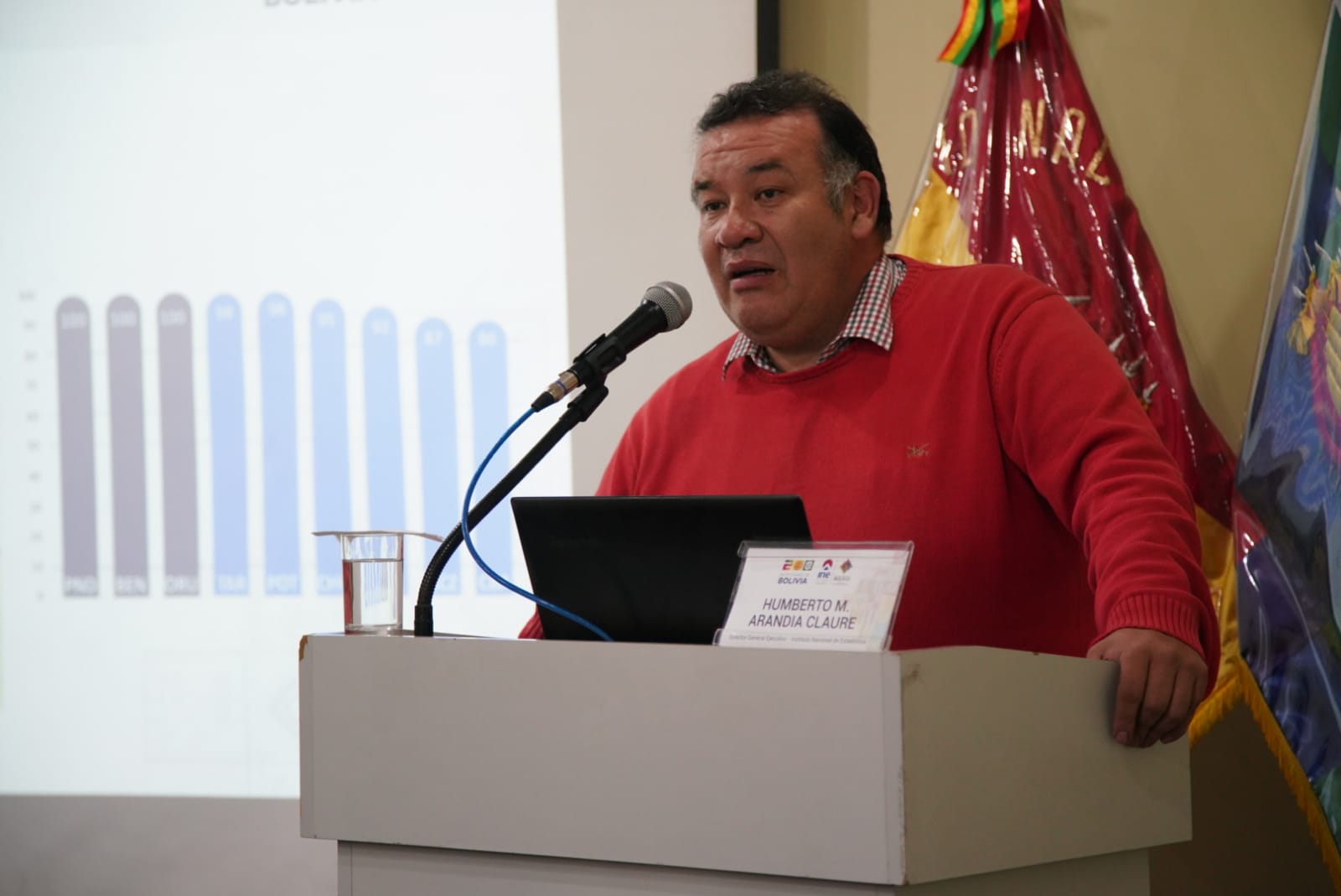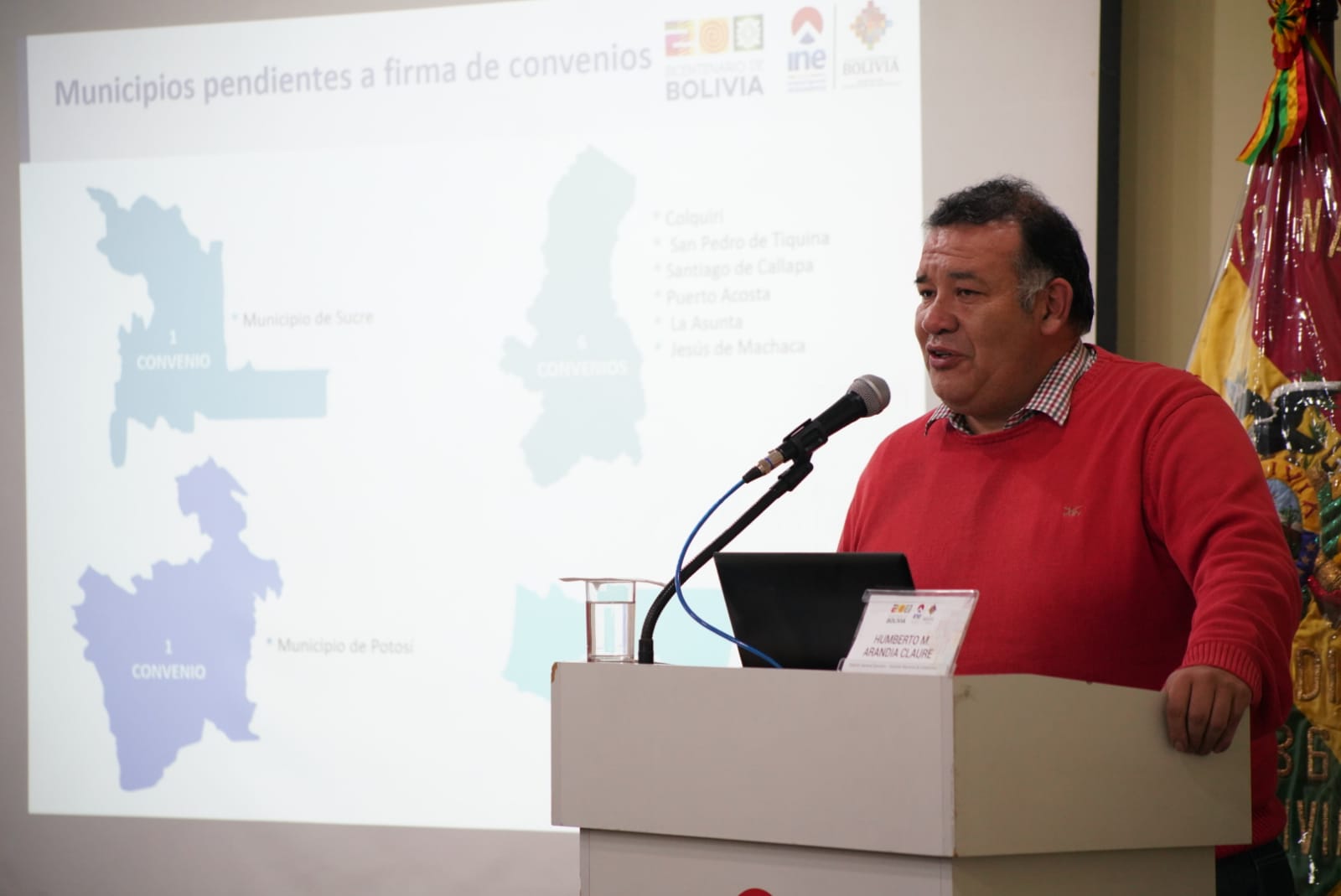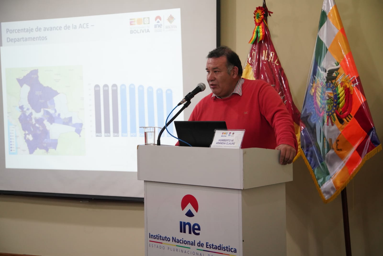 El Director General Ejecutivo del INE, Humberto Arandia Claure, informa sobre el avance de la Actualización Cartográfica Estadística. Fotos: Jorge Mamani