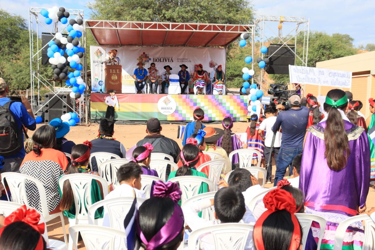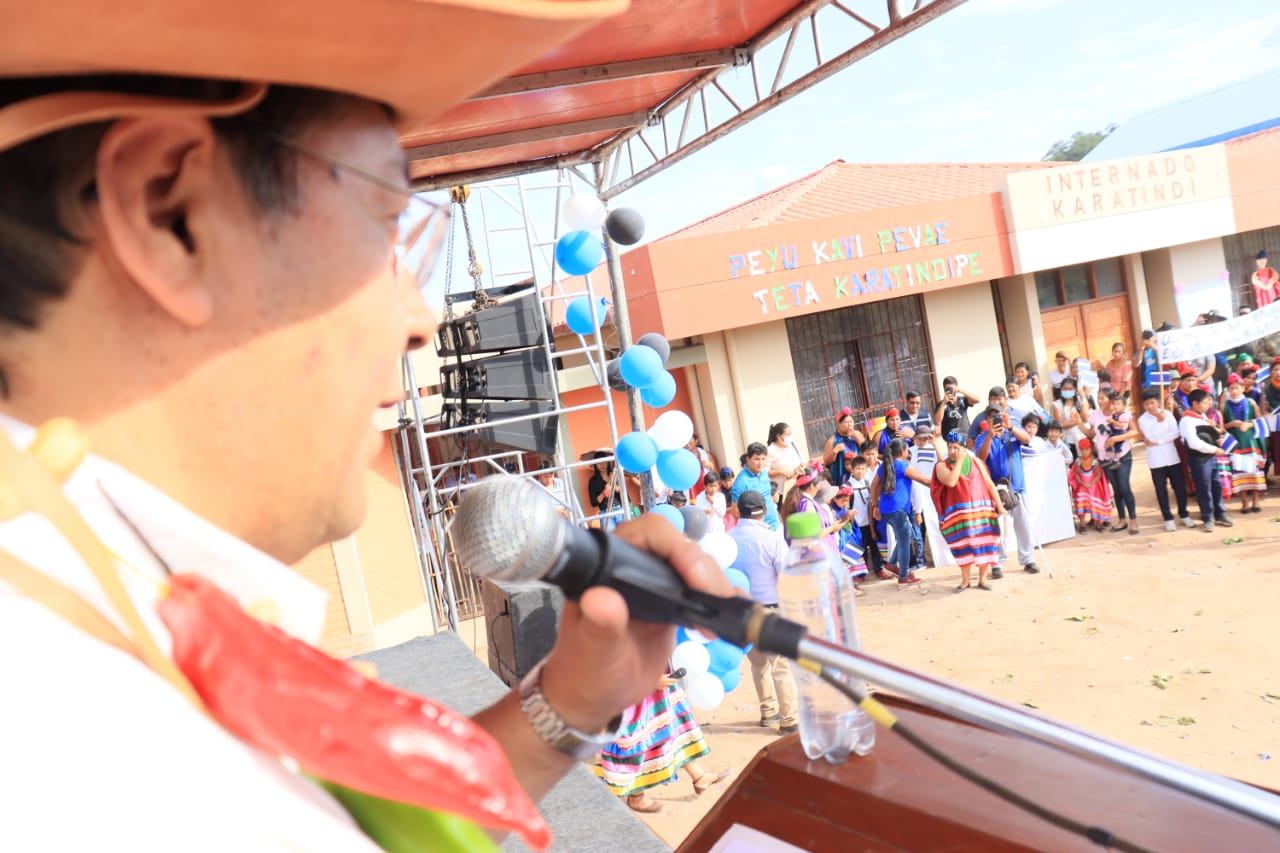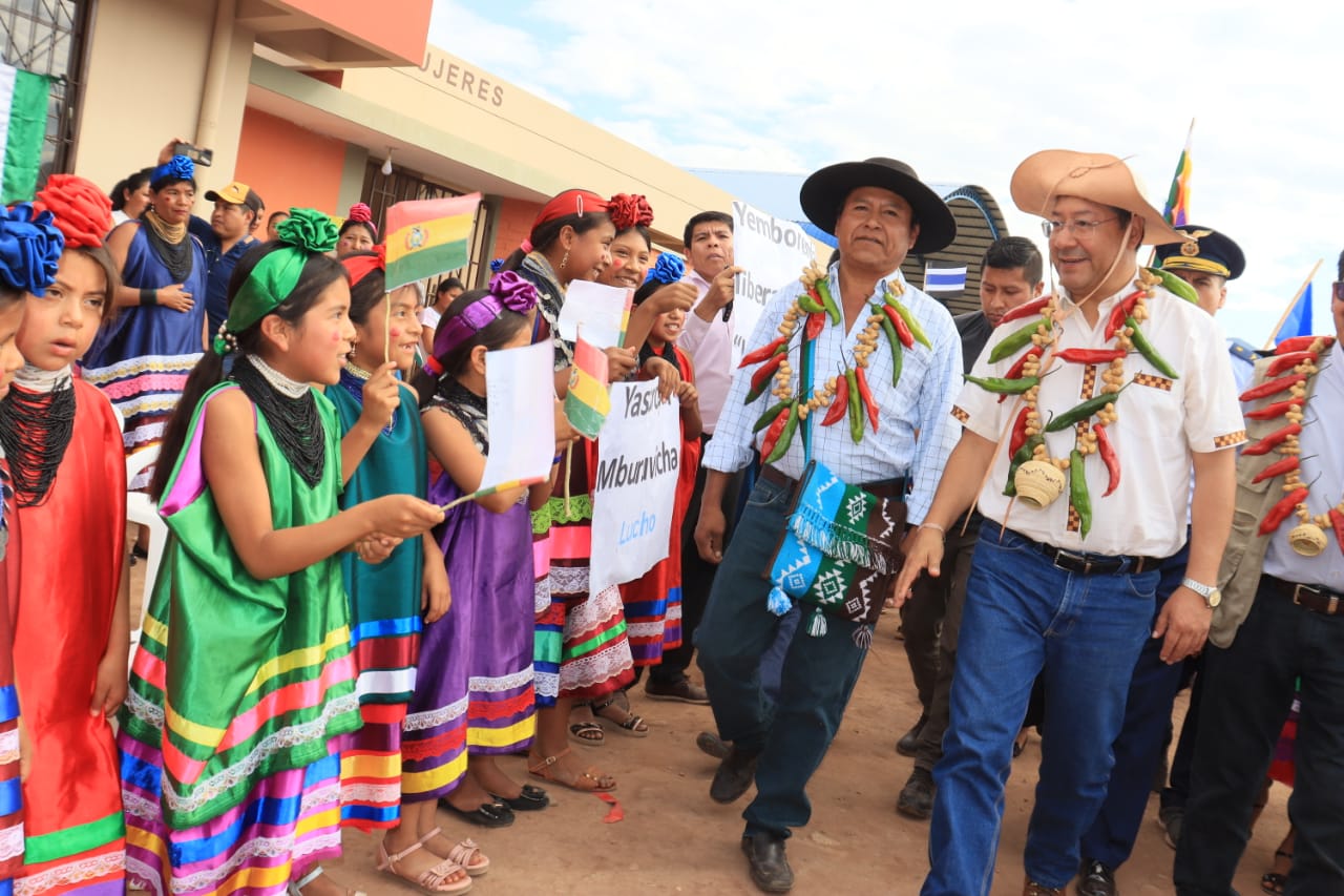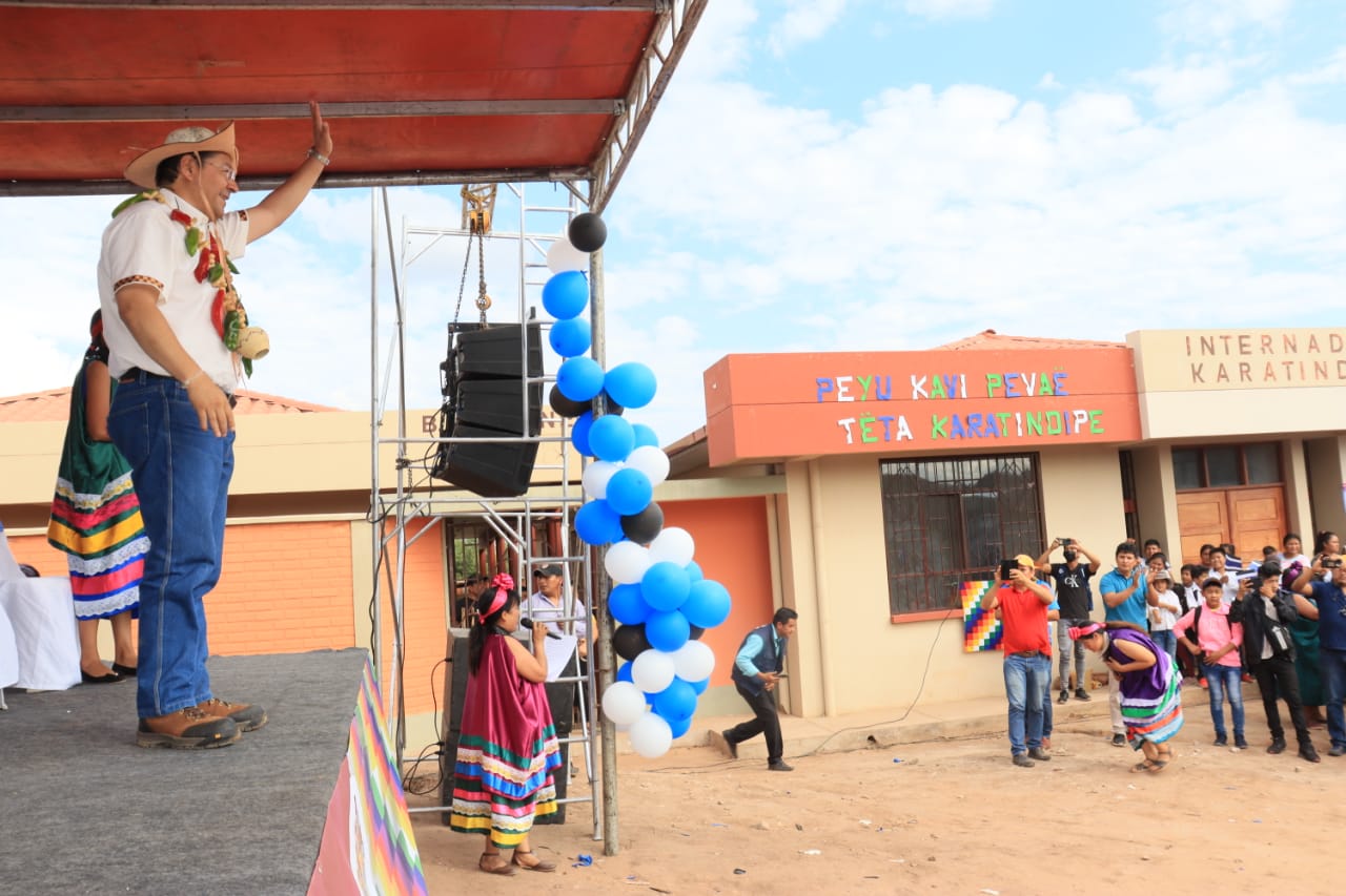 Presidente del Estado Luis Arce, entrega internado y un tinglado para la Unidad Educativa Karatindi, en Chuquisaca