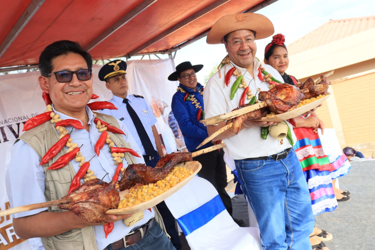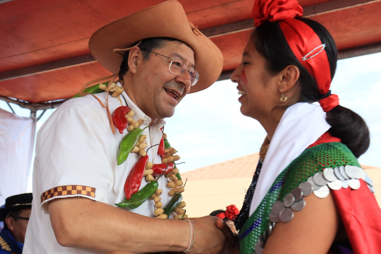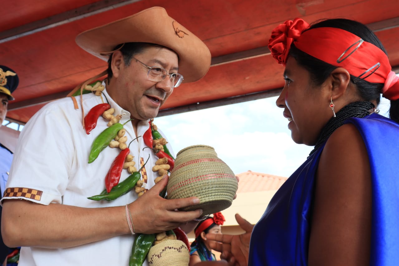 Presidente del Estado Luis Arce, entrega internado y un tinglado para la Unidad Educativa Karatindi, en Chuquisaca. Fuente: Comunicación Presidencial