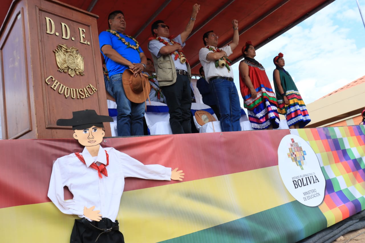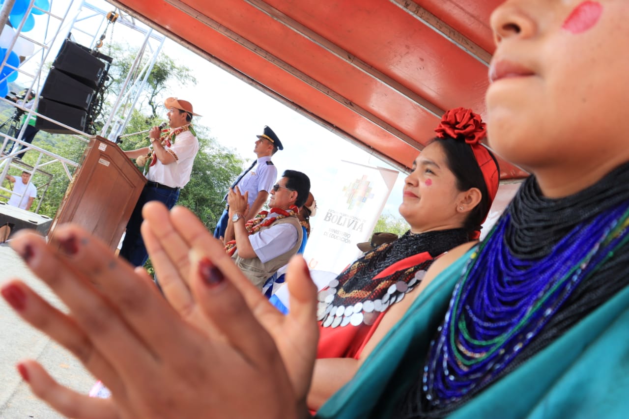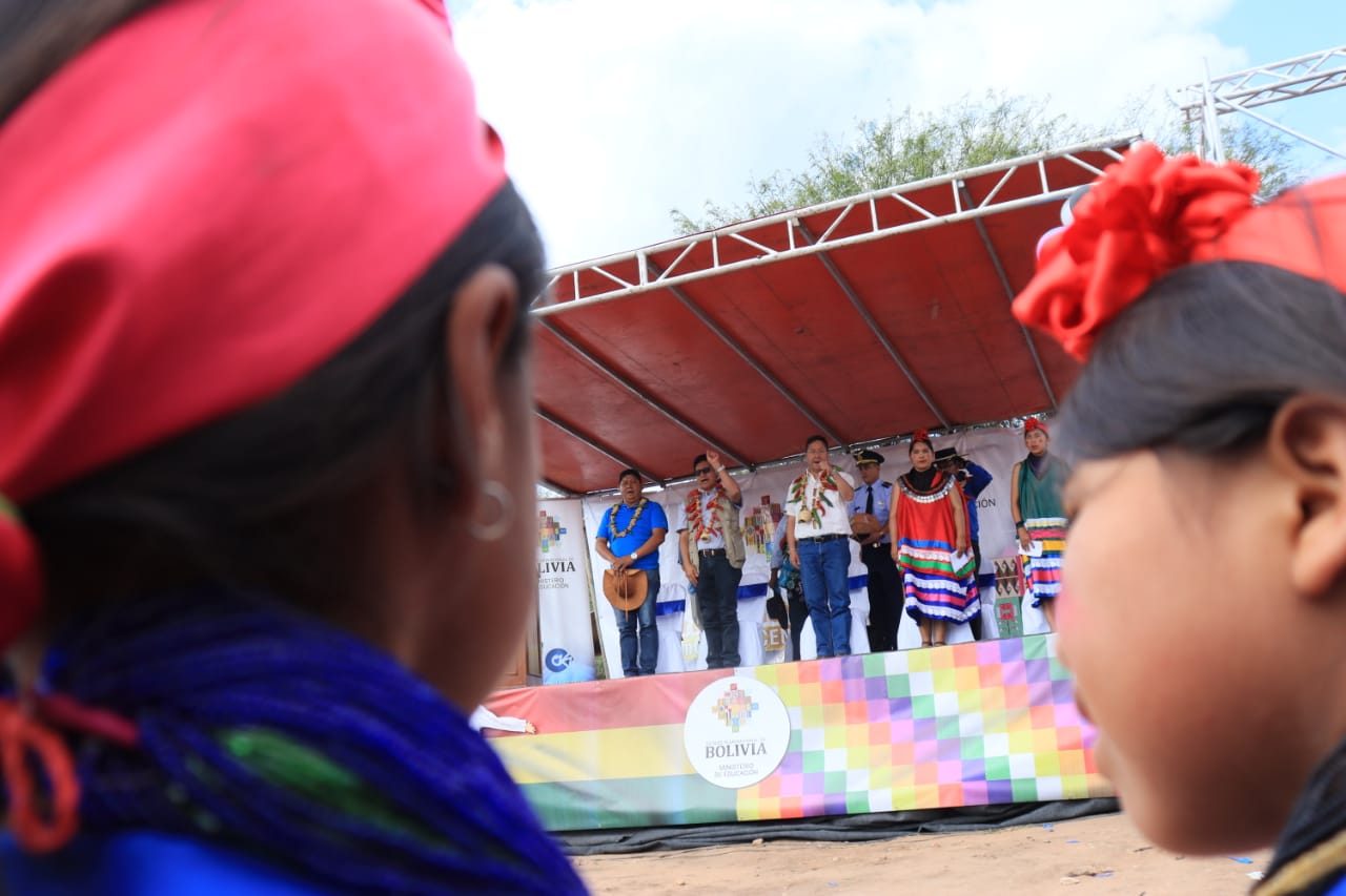 Presidente del Estado Luis Arce, entrega internado y un tinglado para la Unidad Educativa Karatindi, en Chuquisaca. Fuente: Comunicación Presidencial