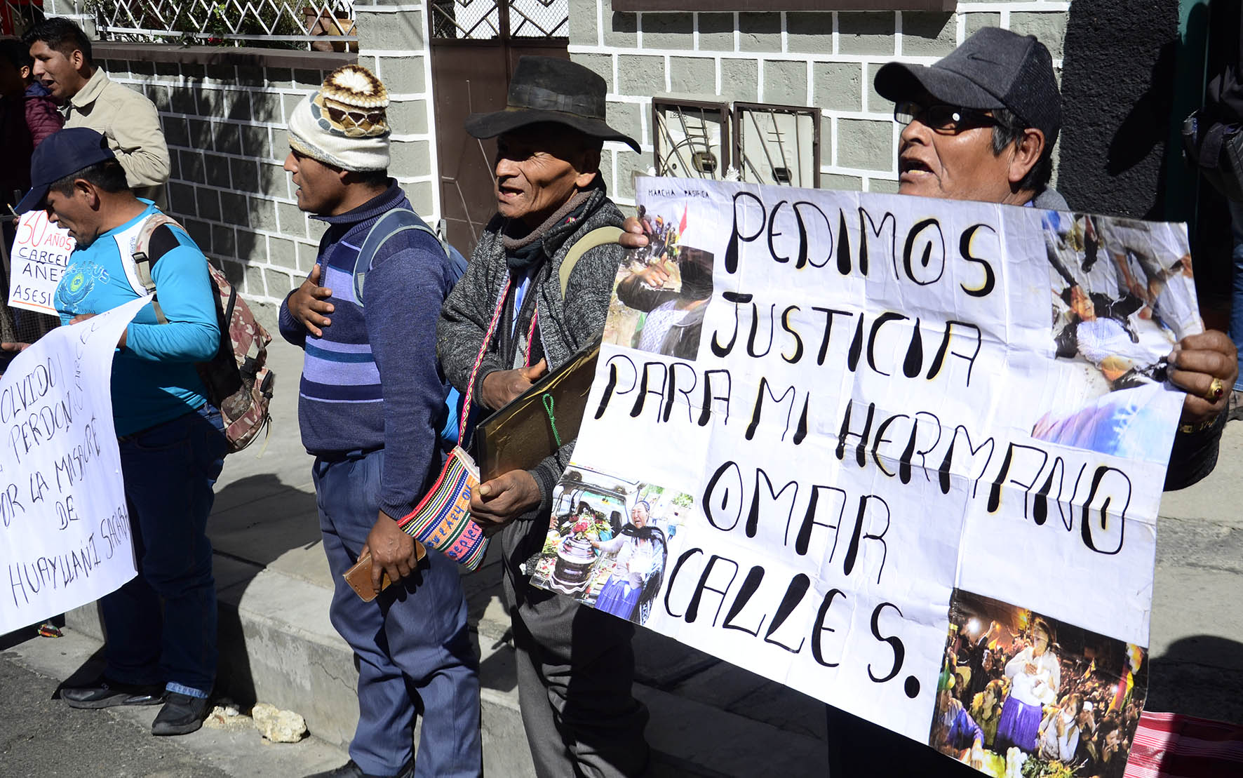 Familiares de víctimas de Sacaba y Huayllani protestan y hacen vigilia en puertas del centro penitenciario de Miraflores. Foto: Freddy Barragán