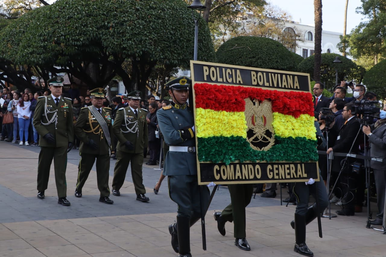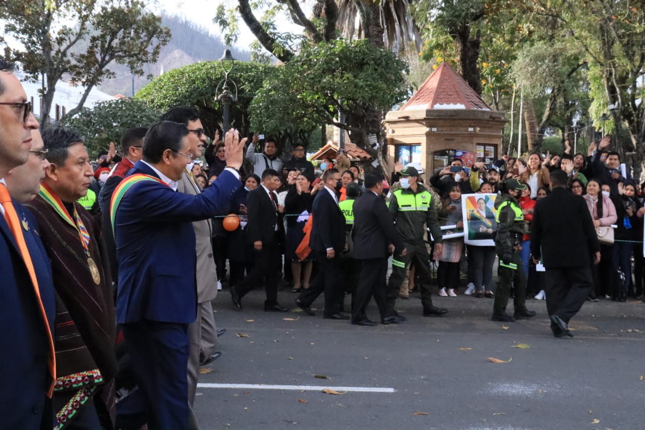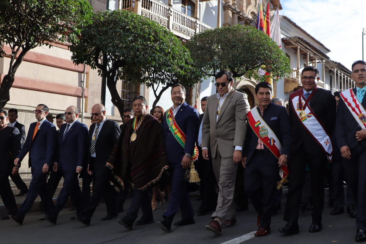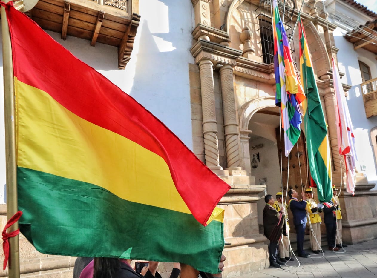 Presidente del Estado Luis Arce entrega en Sucre Ofrenda floral e iza banderas en homenaje a los 214 años de la Revolución del 25 de mayo de 1809