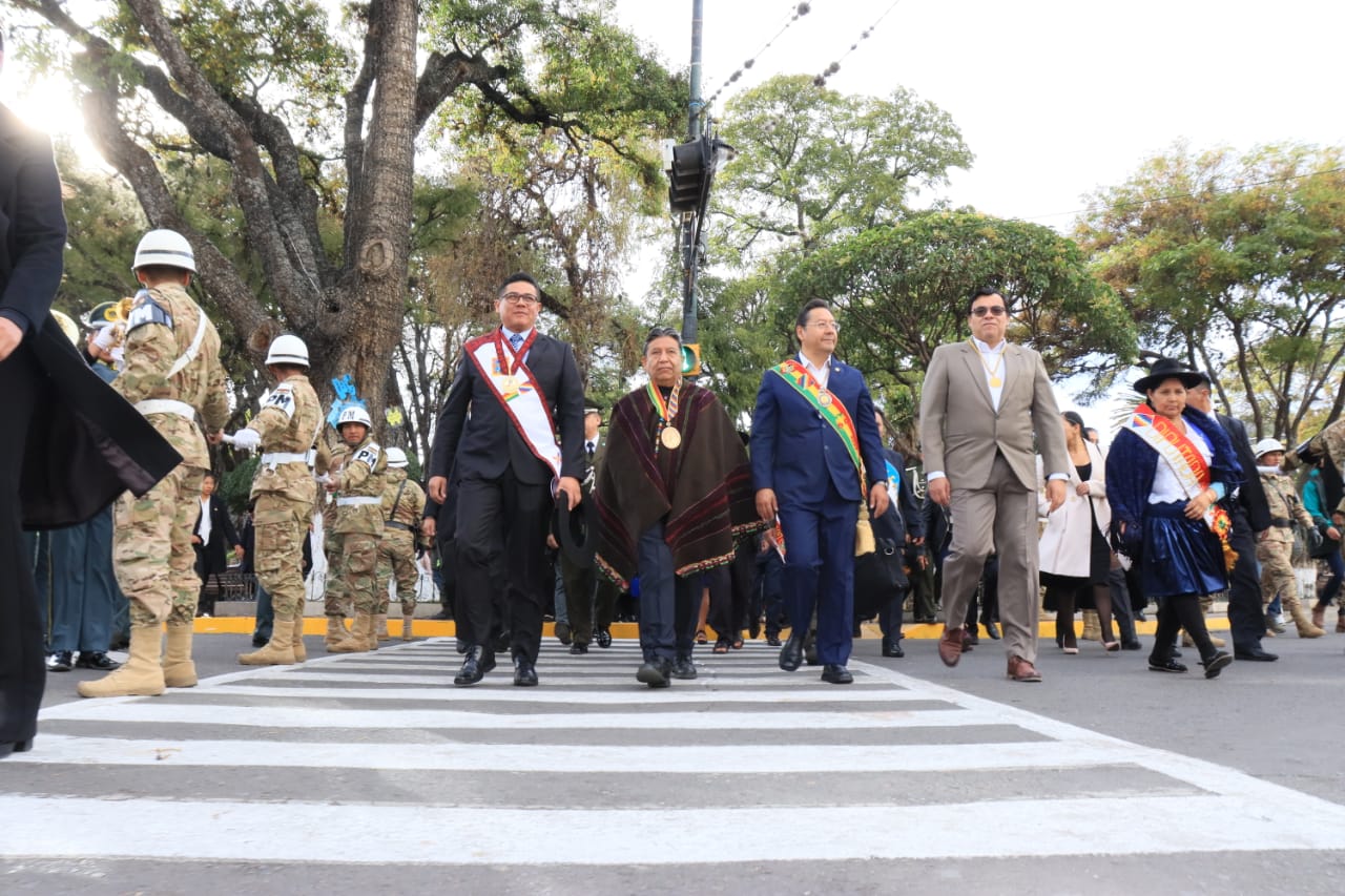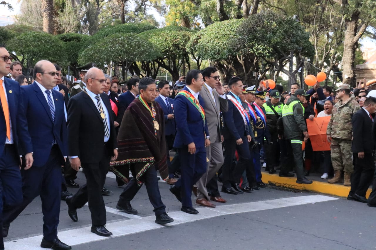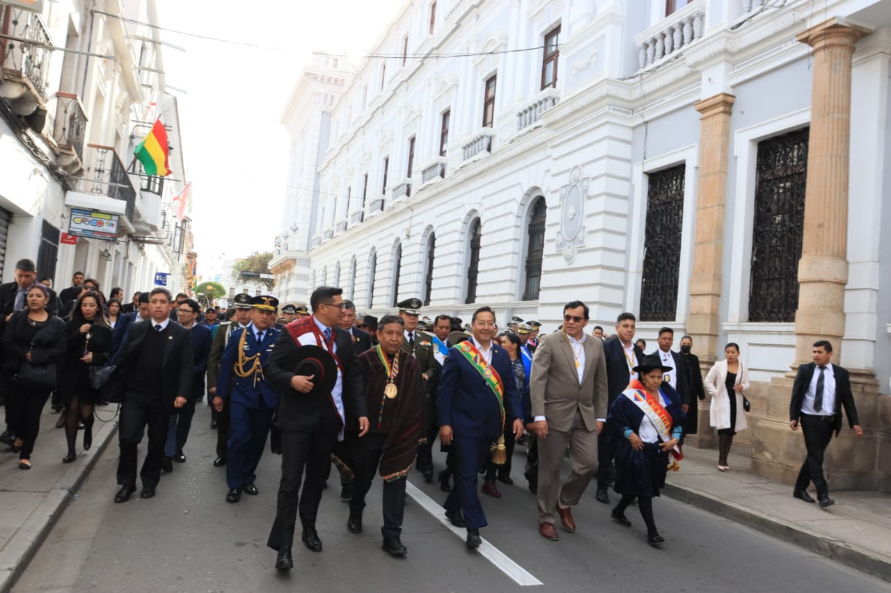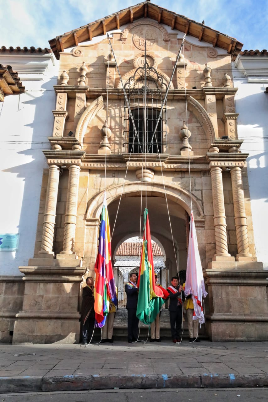 Presidente del Estado Luis Arce entrega en Sucre Ofrenda floral e iza banderas en homenaje a los 214 años de la Revolución del 25 de mayo de 1809