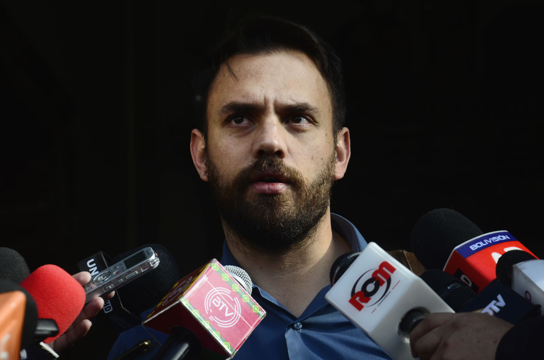 Ministro de Gobierno Eduardo Del Castillo ofrece declaraciones a medios de comunicación en puertas de Palacio Quemado