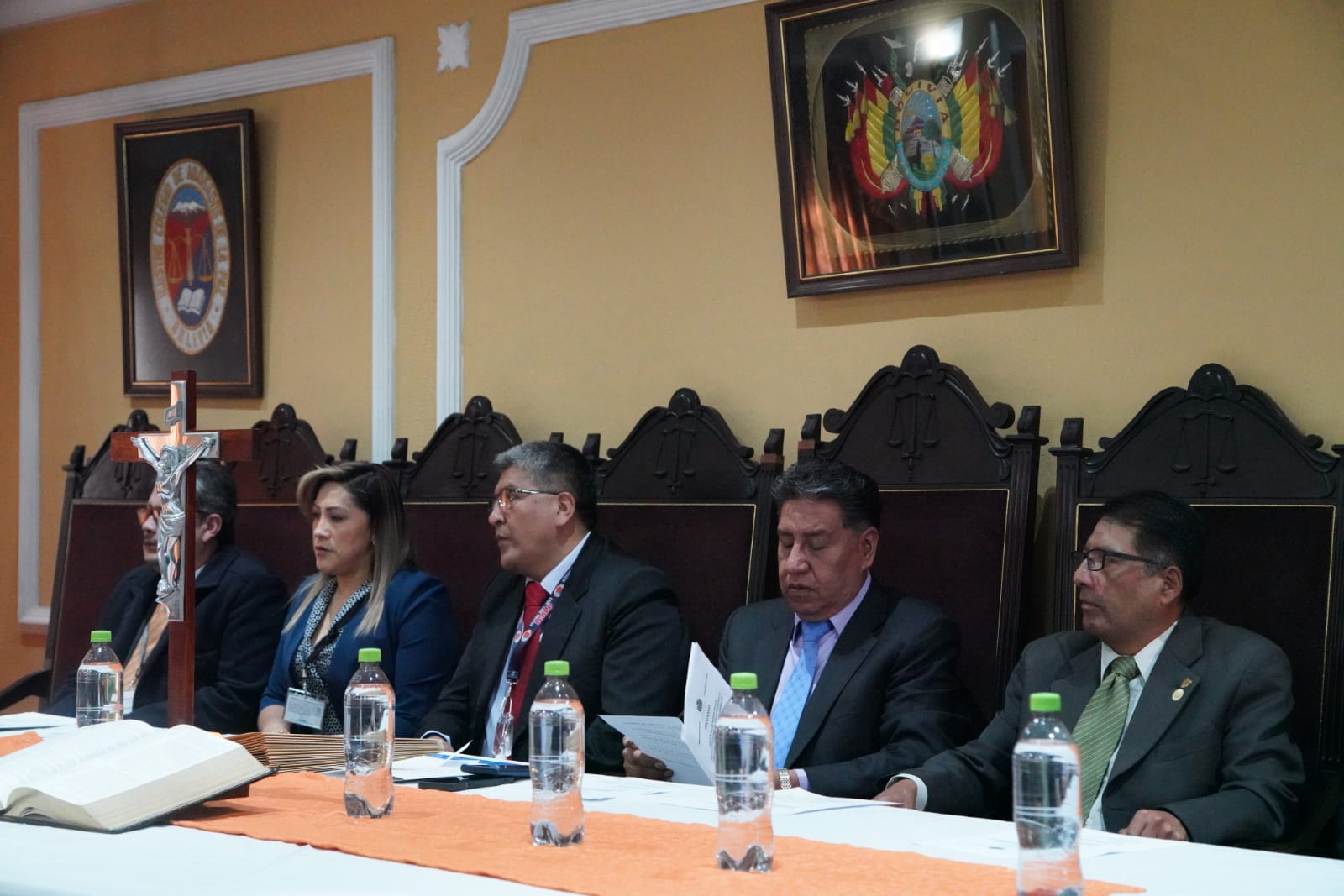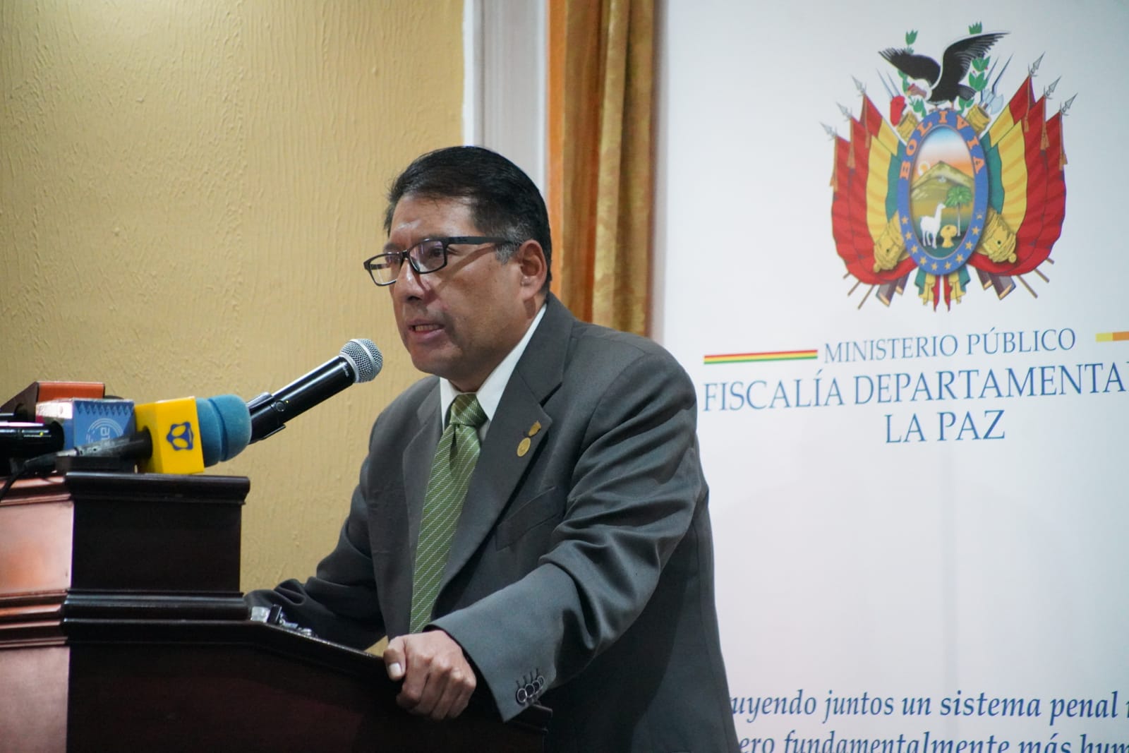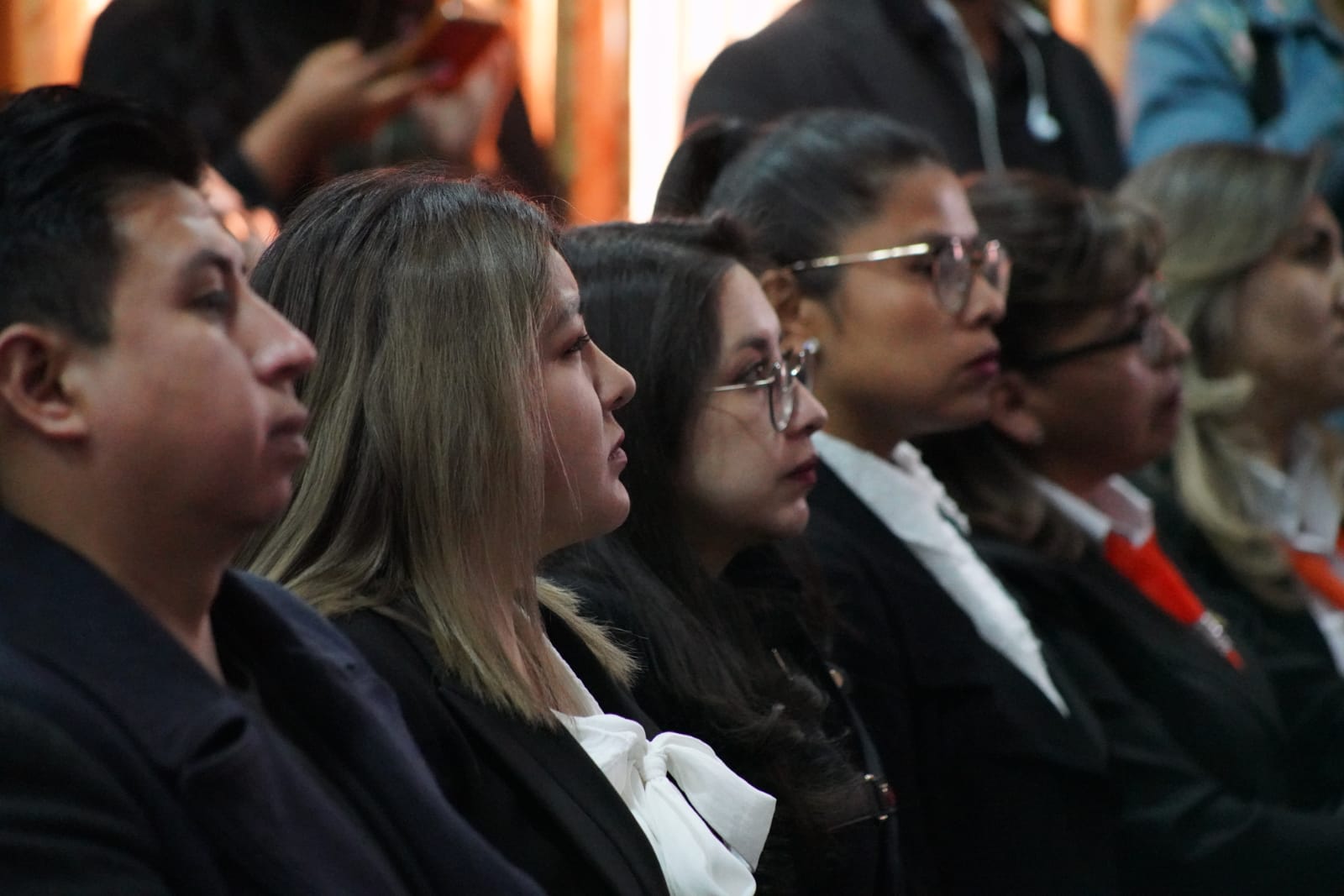 El Fiscal Departamental de La Paz, William Alave Laura, posesiona a los nuevos Fiscales Institucionalizados del Tercer Programa de Formación Inicial, en el salón de Honor del Colegio de Abogados. Fotos: Jorge Mamani