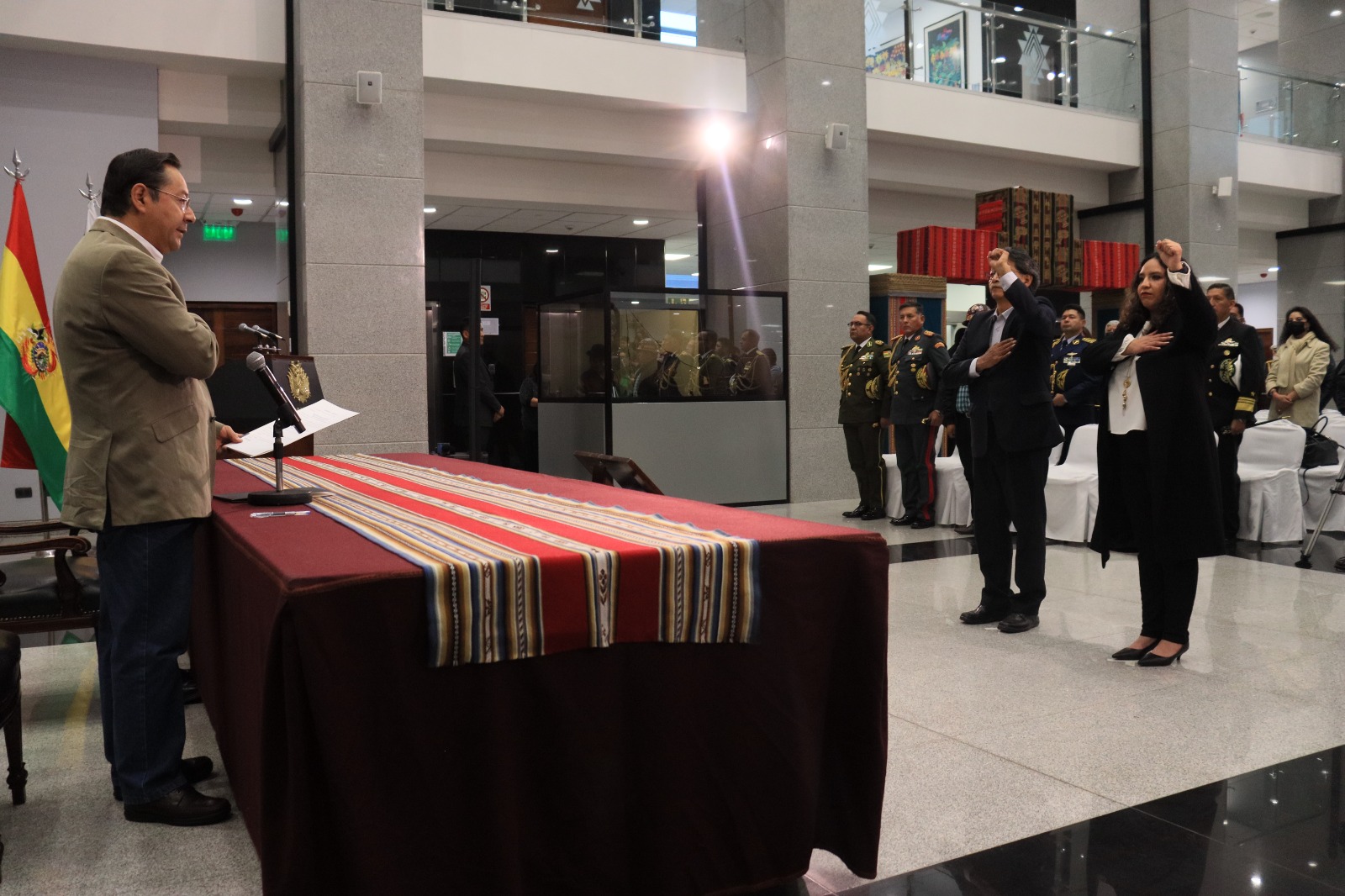 Presidente del Estado Luis Arce posesiona a los nuevos ministros de Salud y de Minería, en Casa Grande del Pueblo