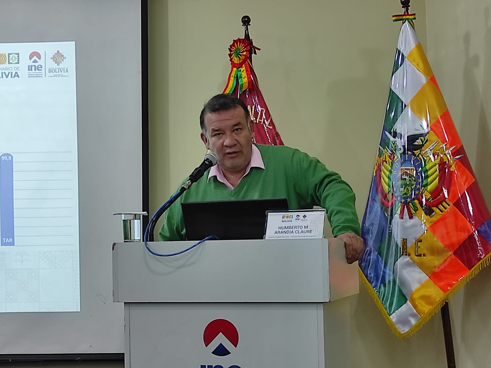 El director general del Instituto Nacional de Estadística (INE), Humberto Arandia en conferencia de prensa se refirió a los avances del Censo de Población y Vivienda a junio 2023. Fotos: Gonzalo Jallasi