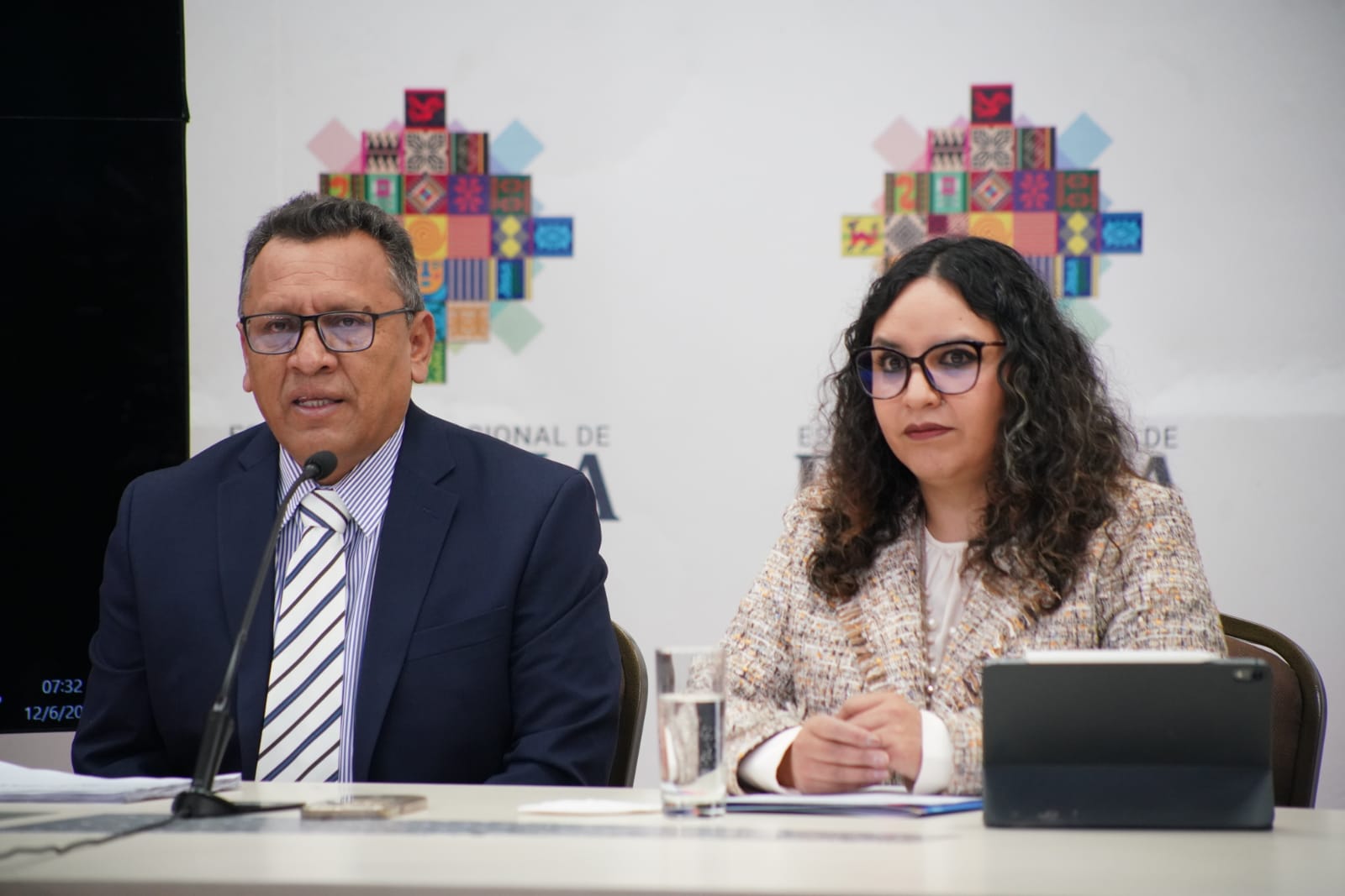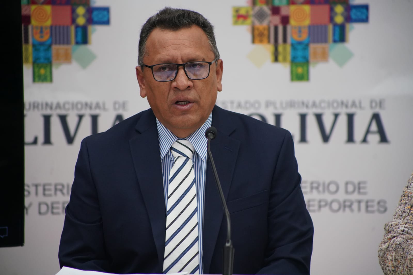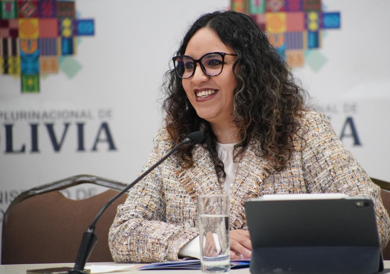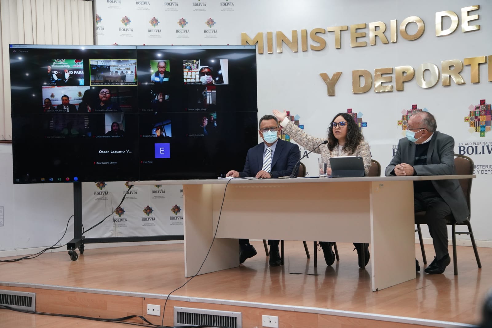 La Ministra de Salud y Deportes María Renée Castro, junto a los directores nacionales de Epidemiología y PAI (Programa Ampliado de Inmunización), realizan “informe del inicio del Monitoreo Rápido de Vacunación a menores de 6 años”. Fotos: Jorge Mamani