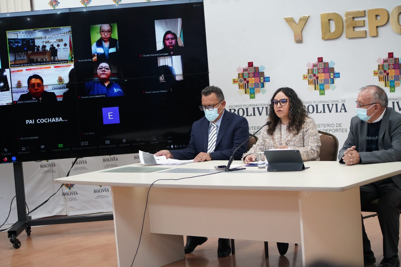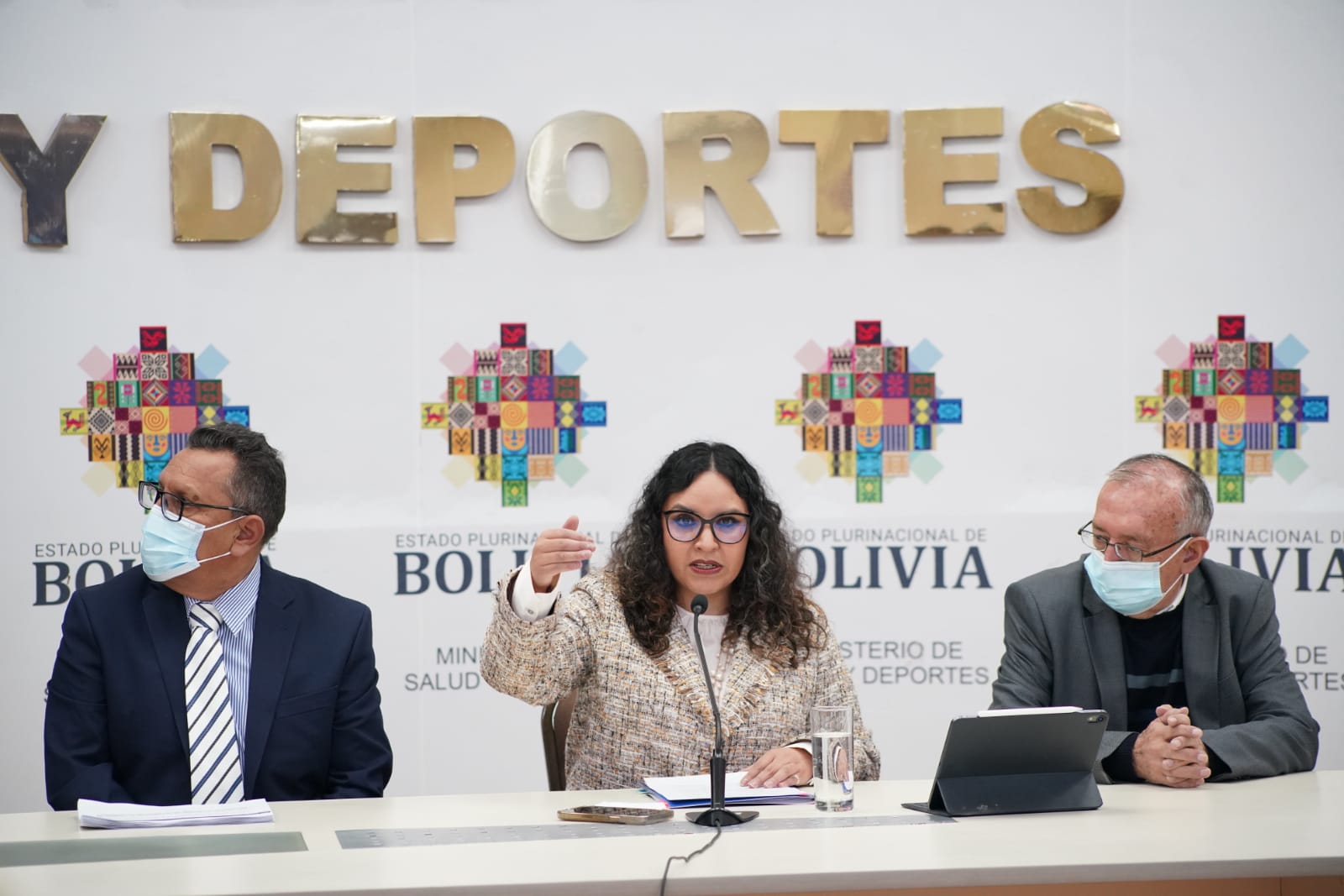 Conferencia de prensa de la Ministra de Salud y Deportes María Renée Castro junto a los directores nacionales de Epidemiología y PAI