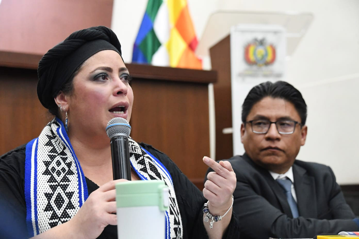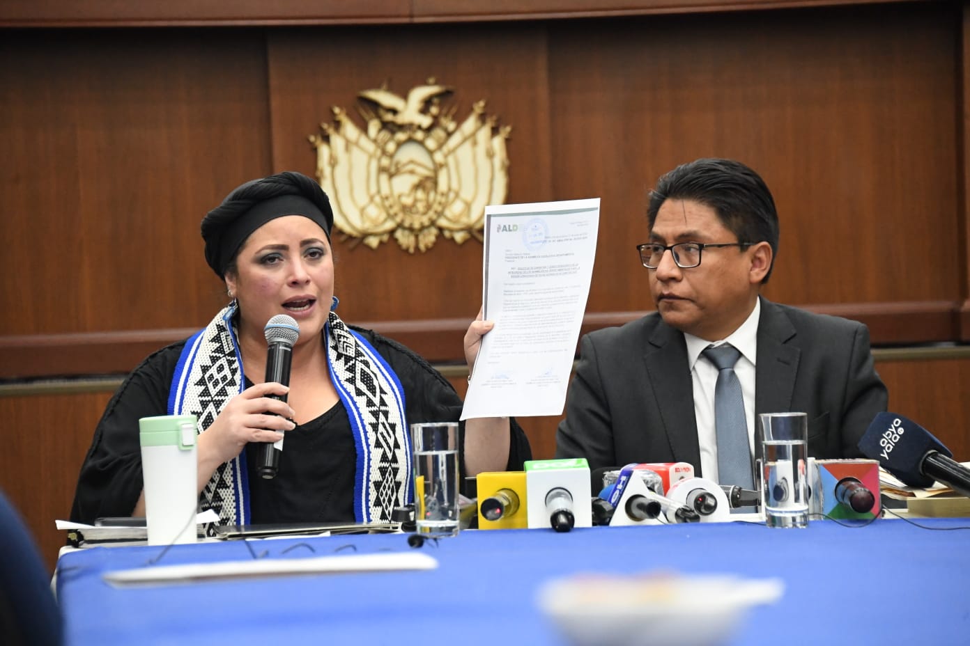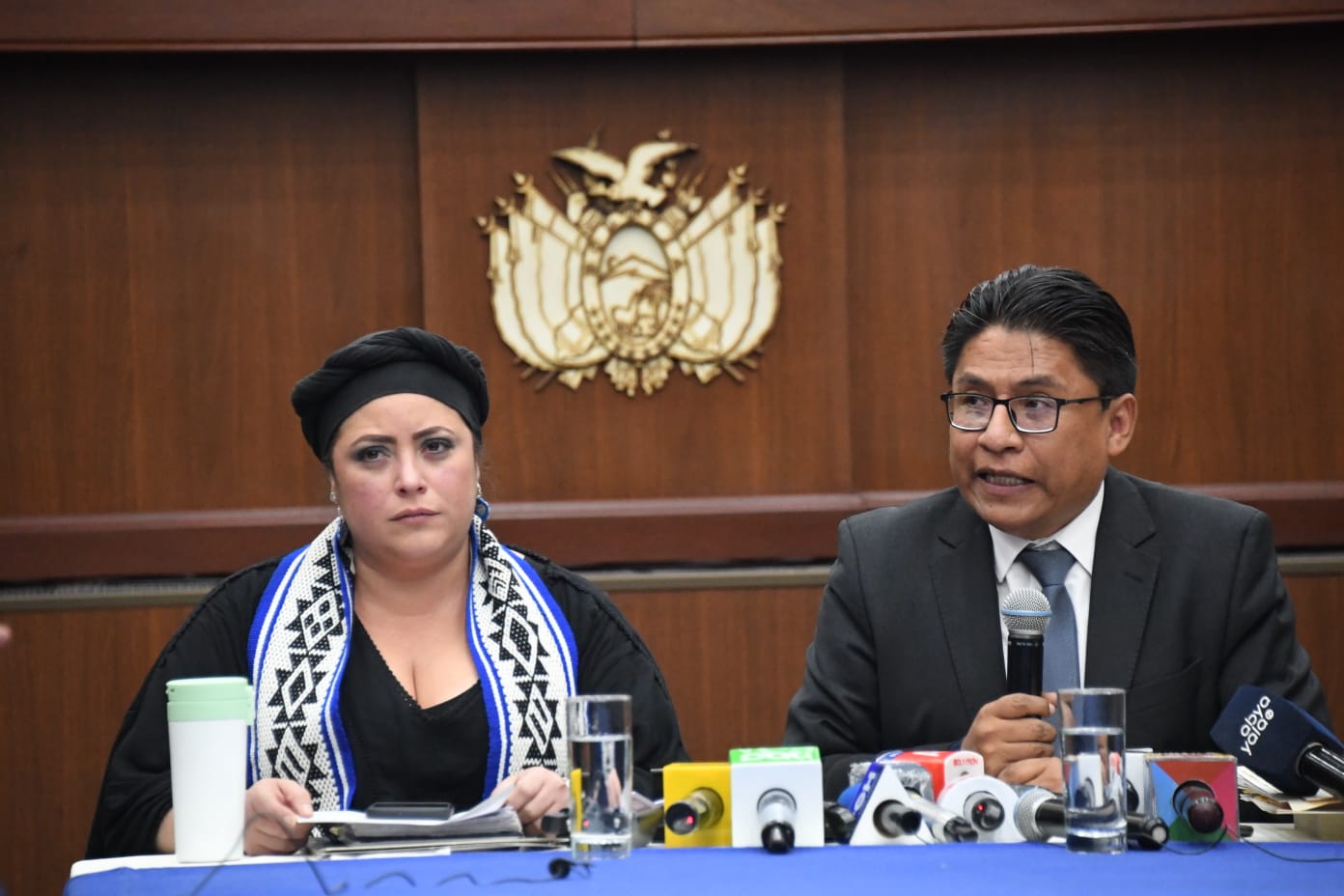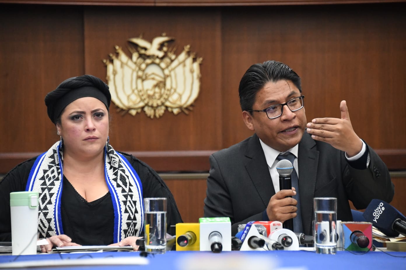 Ministra de la Presidencia María Nela Prada junto al Ministro de Justicia Iván Lima en conferencia de prensa