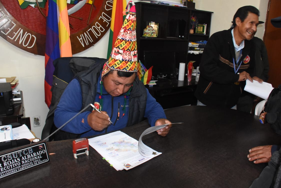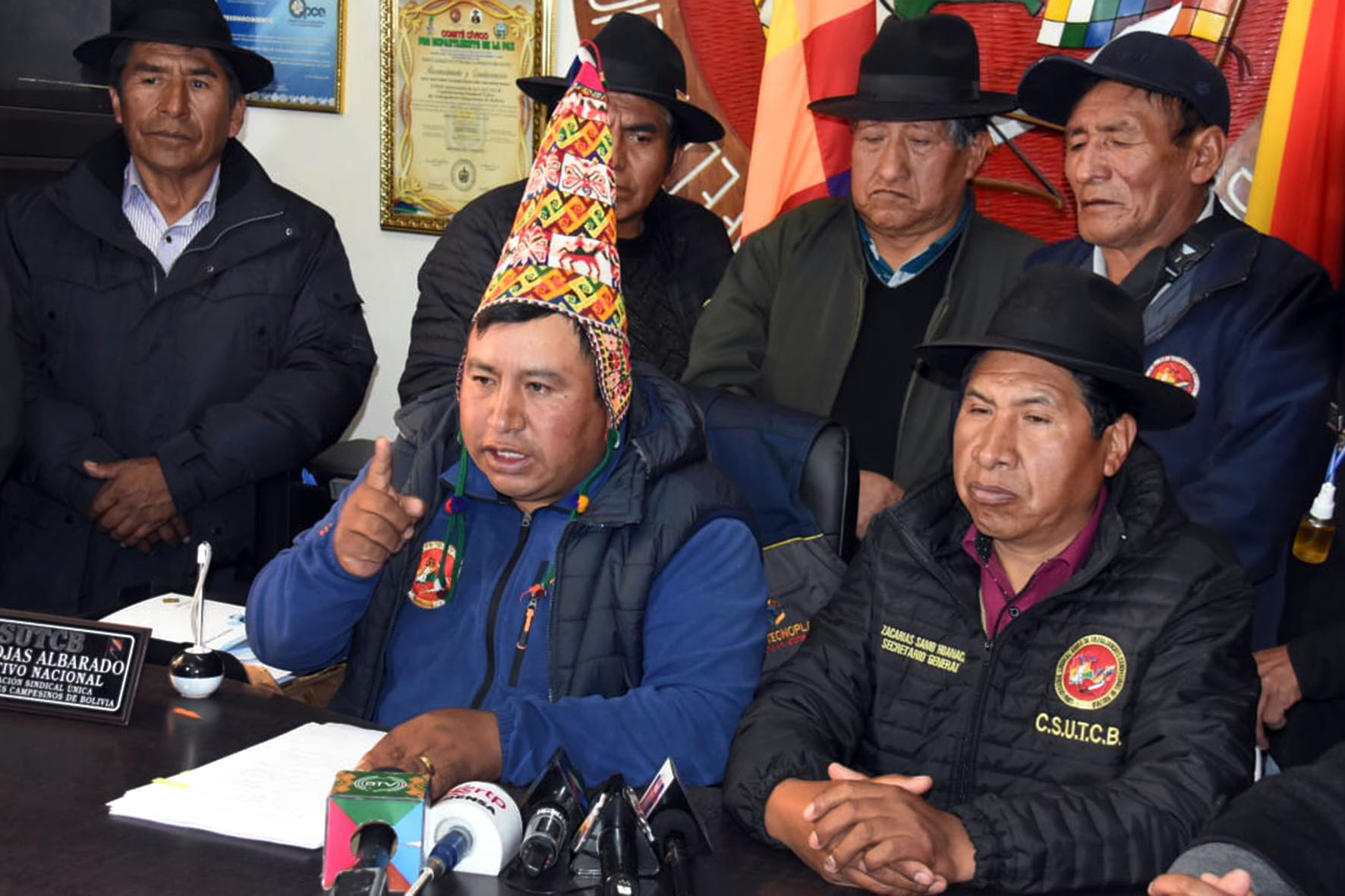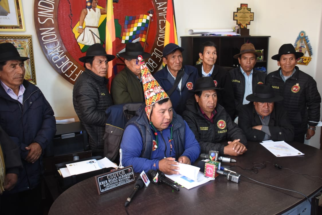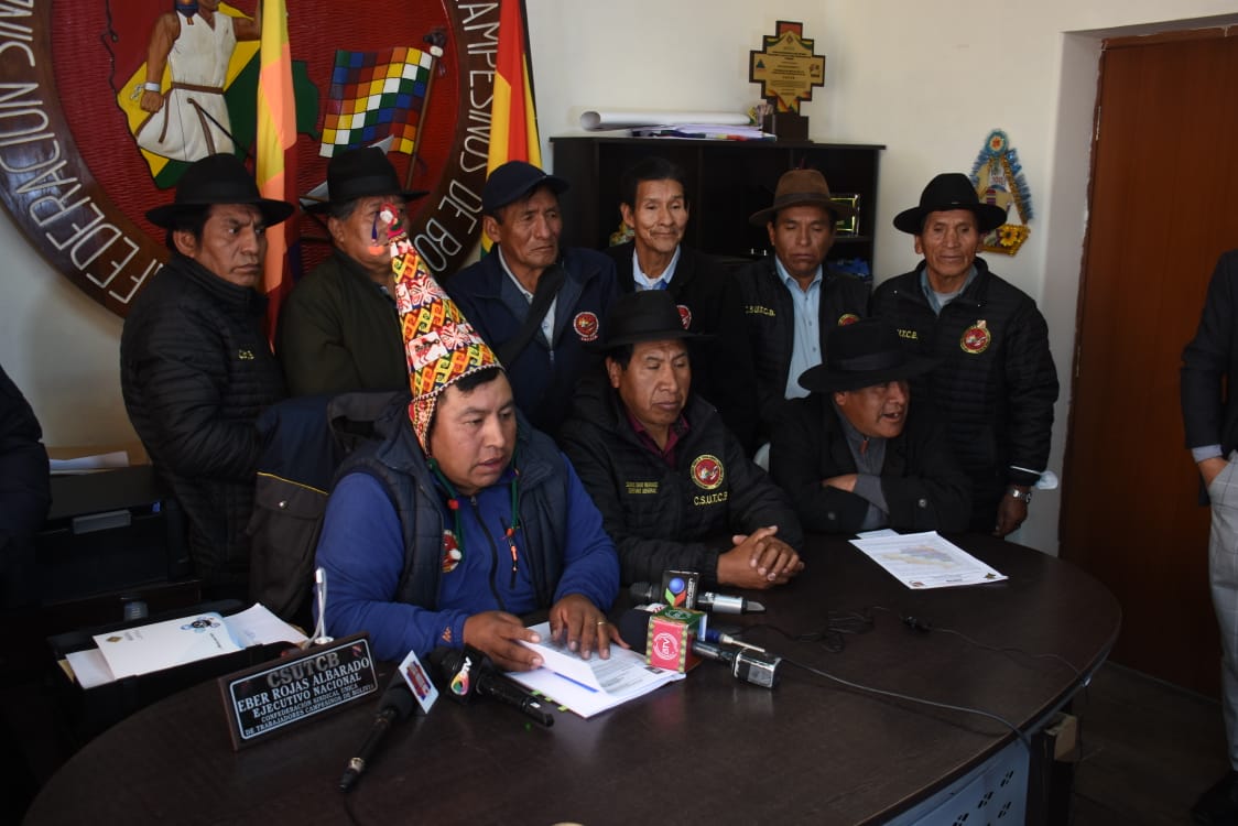 El secretario ejecutivo de la CSUTCB, Ever Rojas da su respaldo al Gobierno Nacional de Lucho-David. Fotos: Gonzalo Jallasi