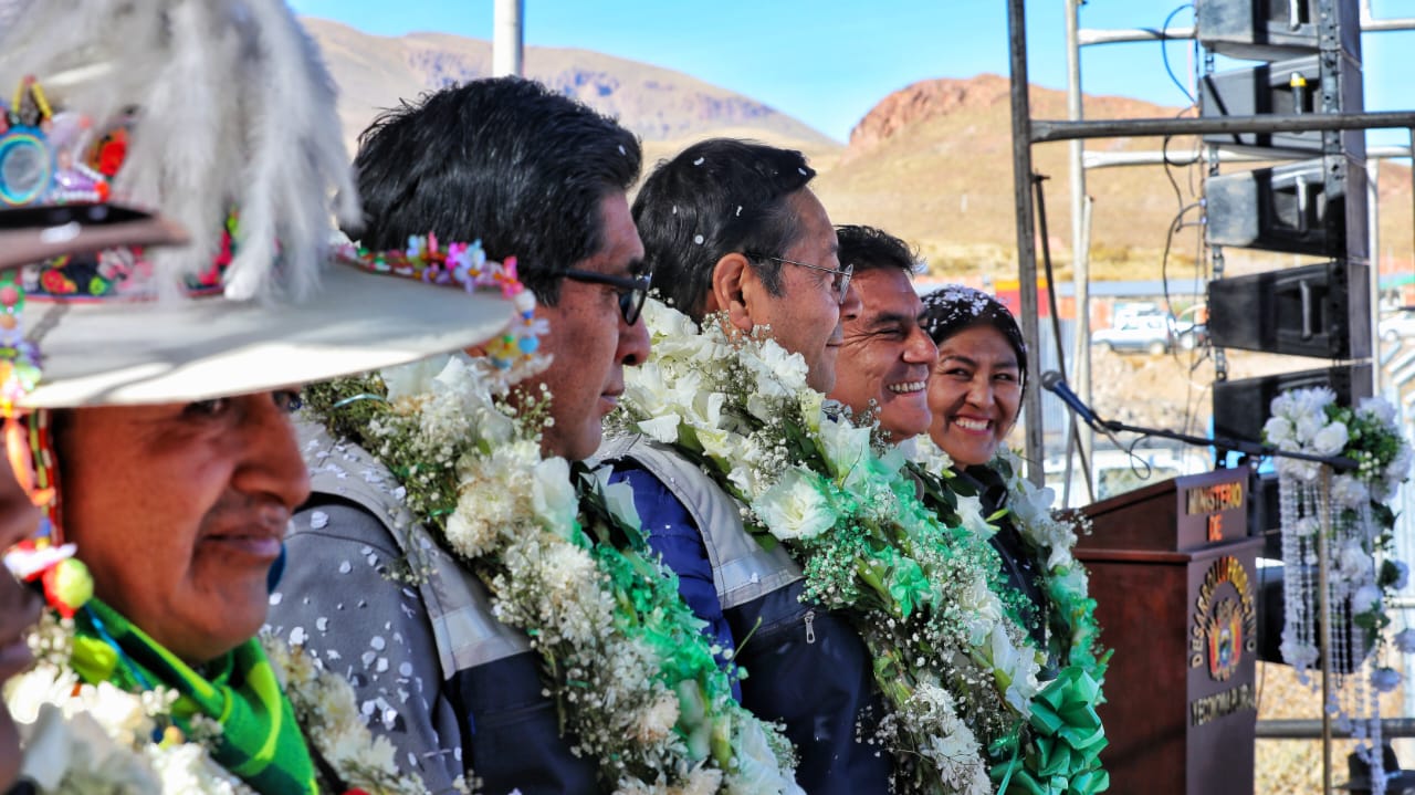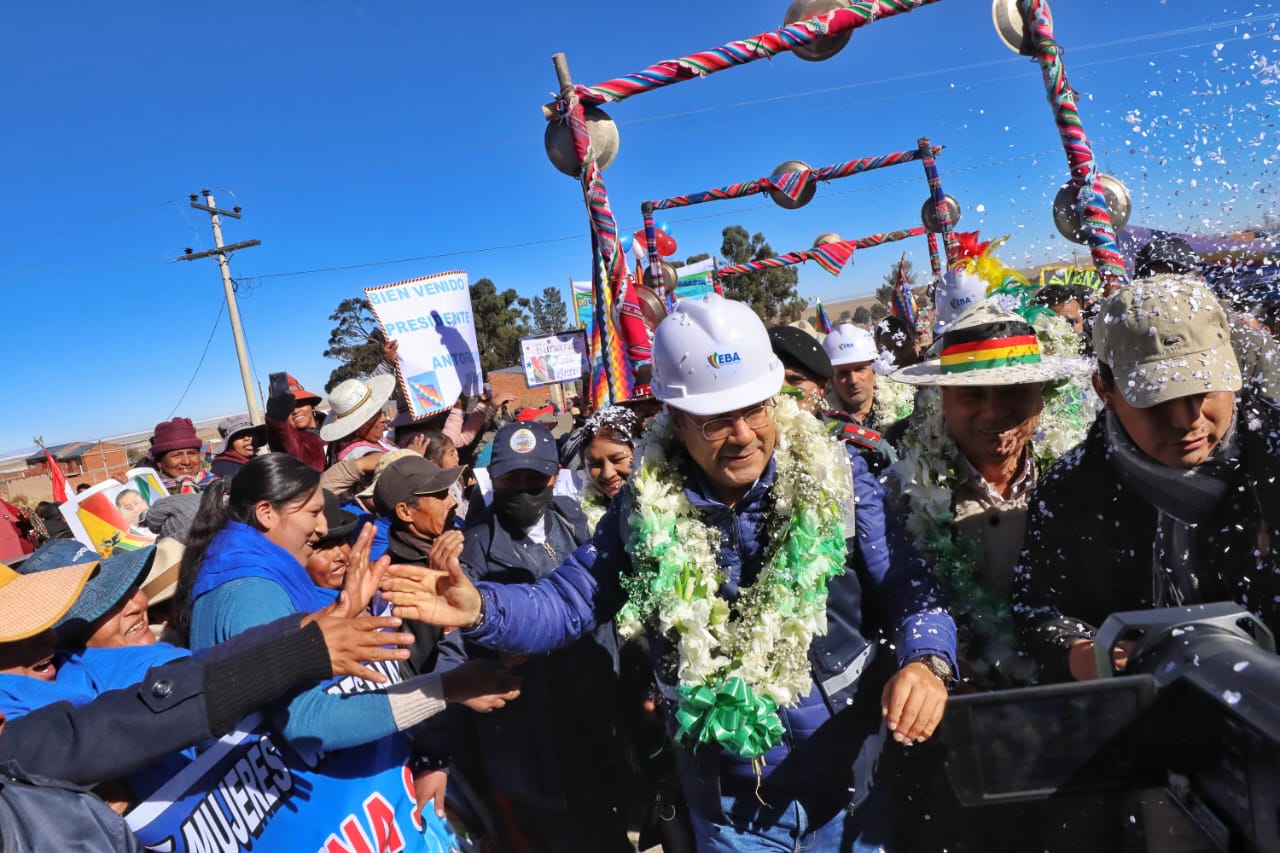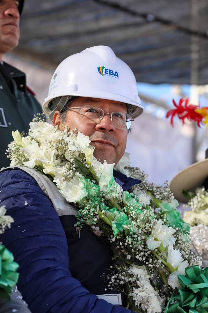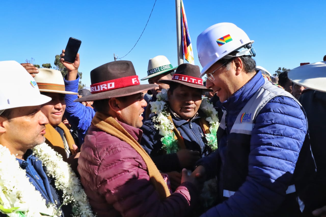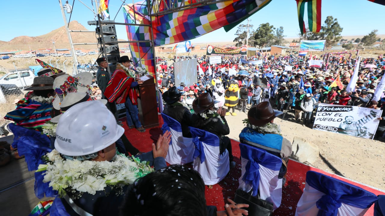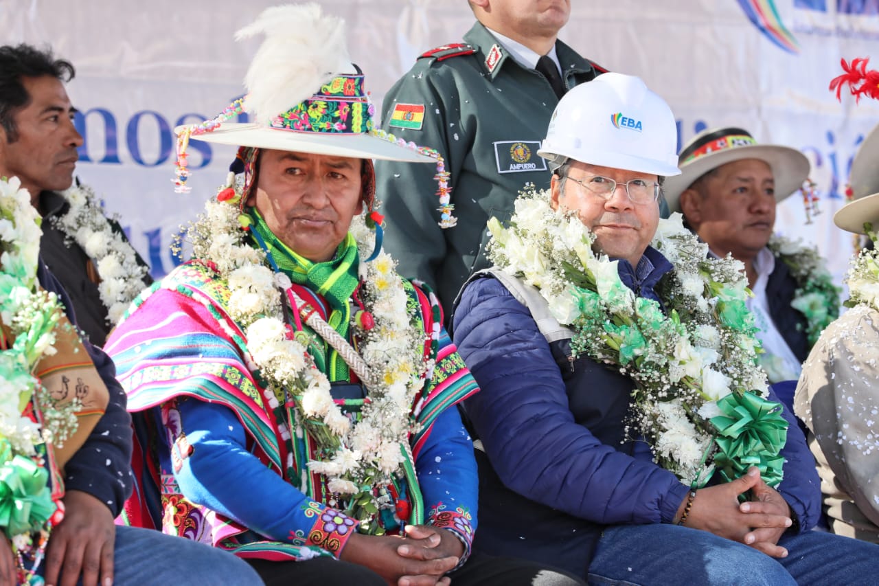 Presidente coloca la piedra fundamental para la ampliación de la Planta Procesadora de Lácteos en Challapata, Oruro. Fuente: Comunicación Presidencial