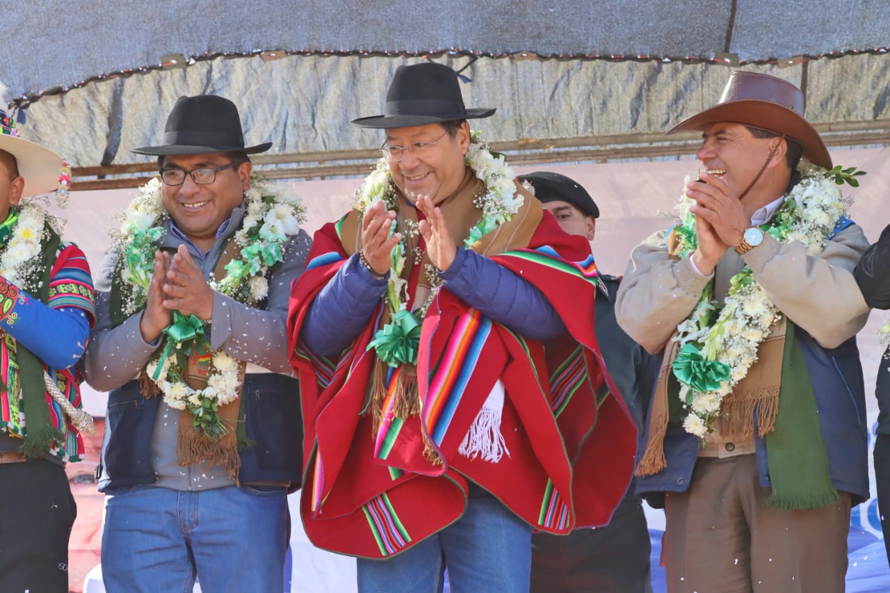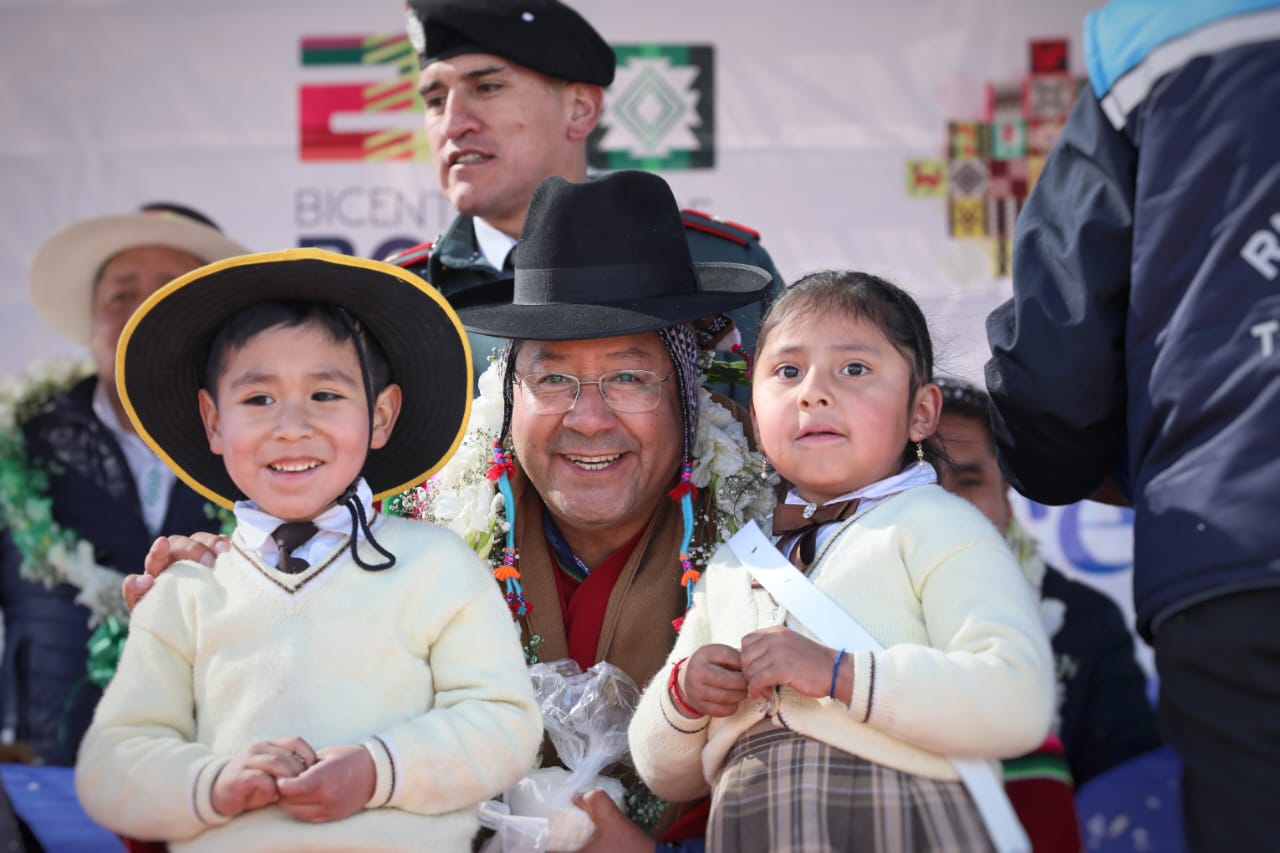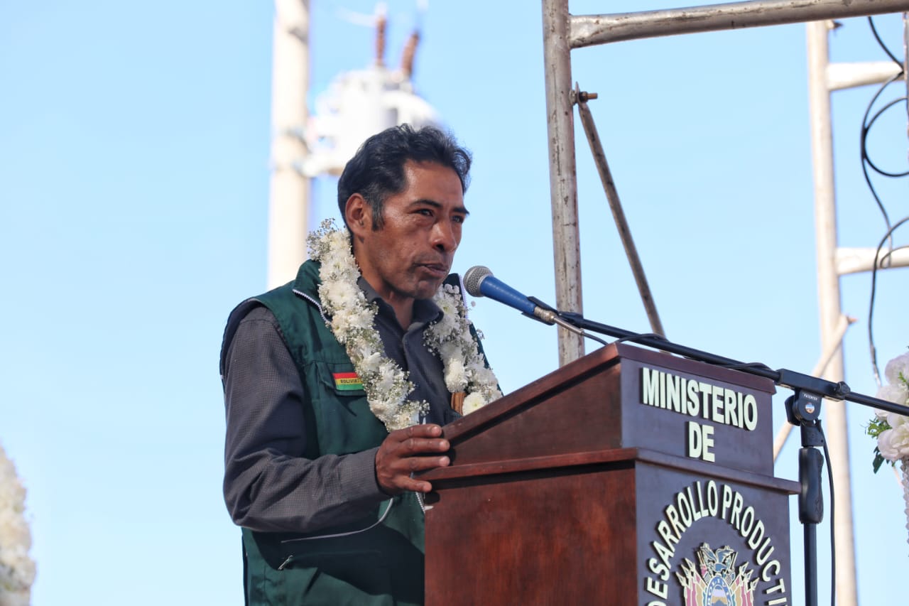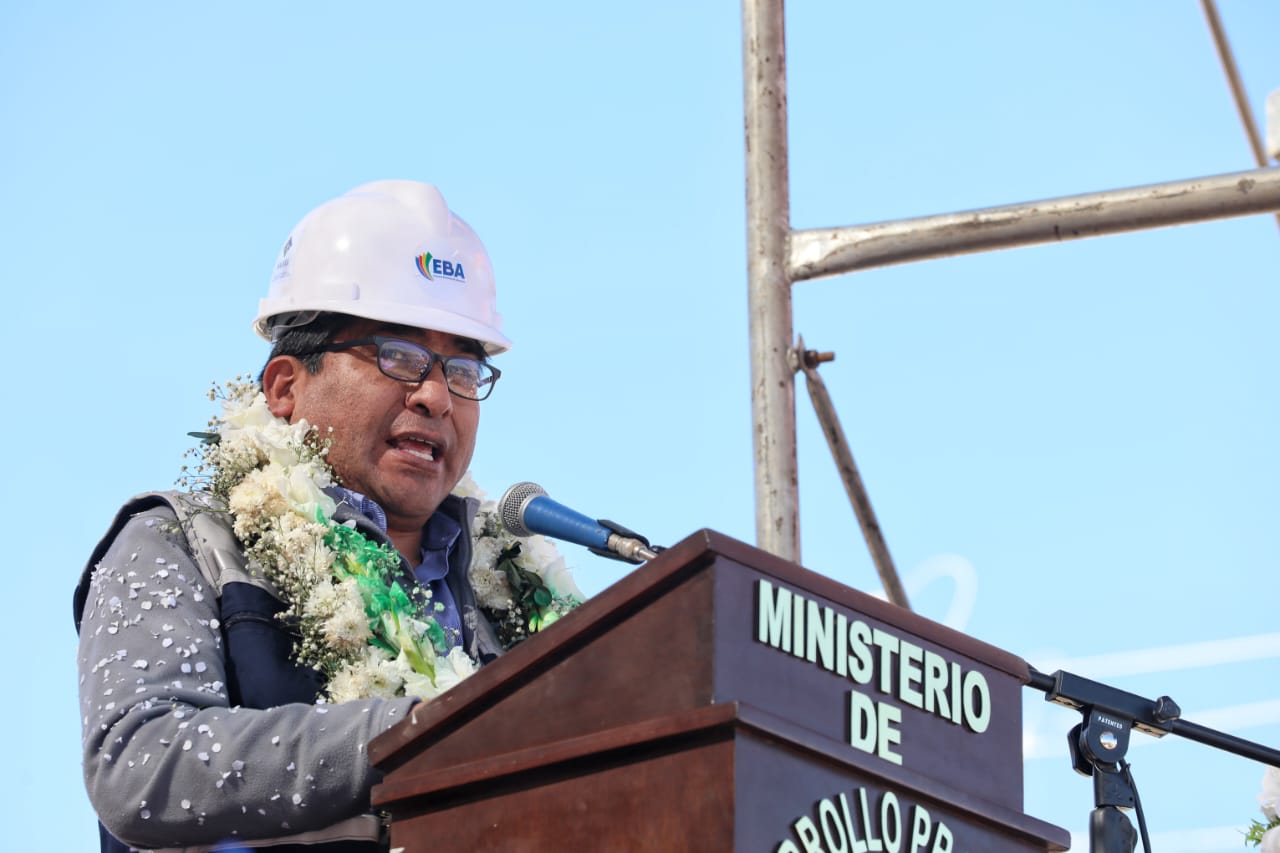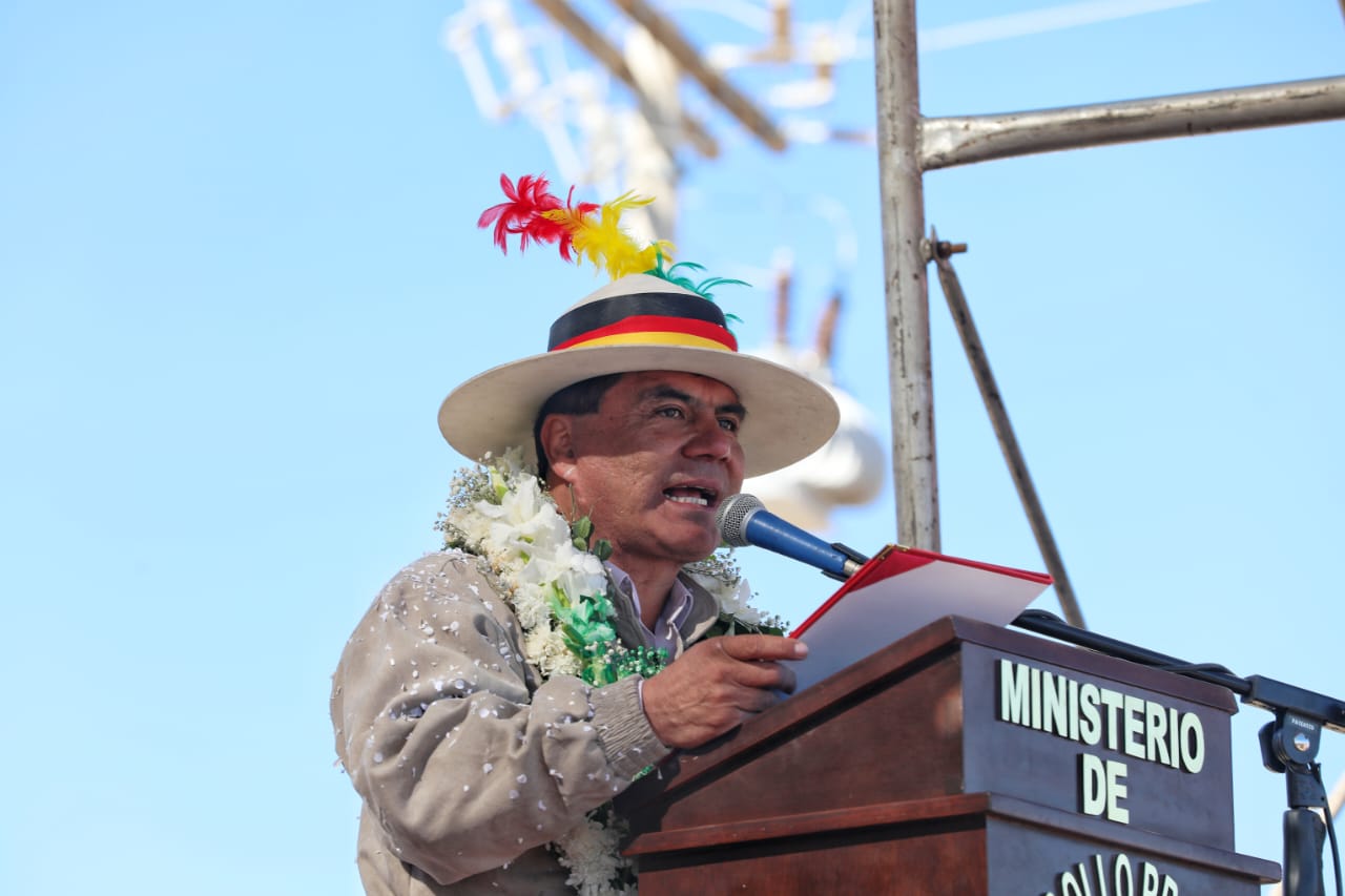 Presidente coloca la piedra fundamental para la ampliación de la Planta Procesadora de Lácteos en Challapata, Oruro. Fuente: Comunicación Presidencial