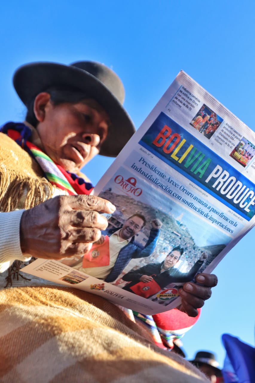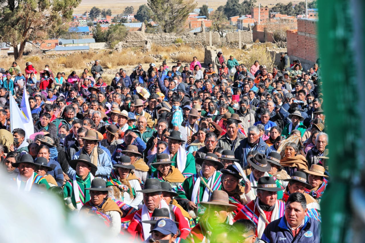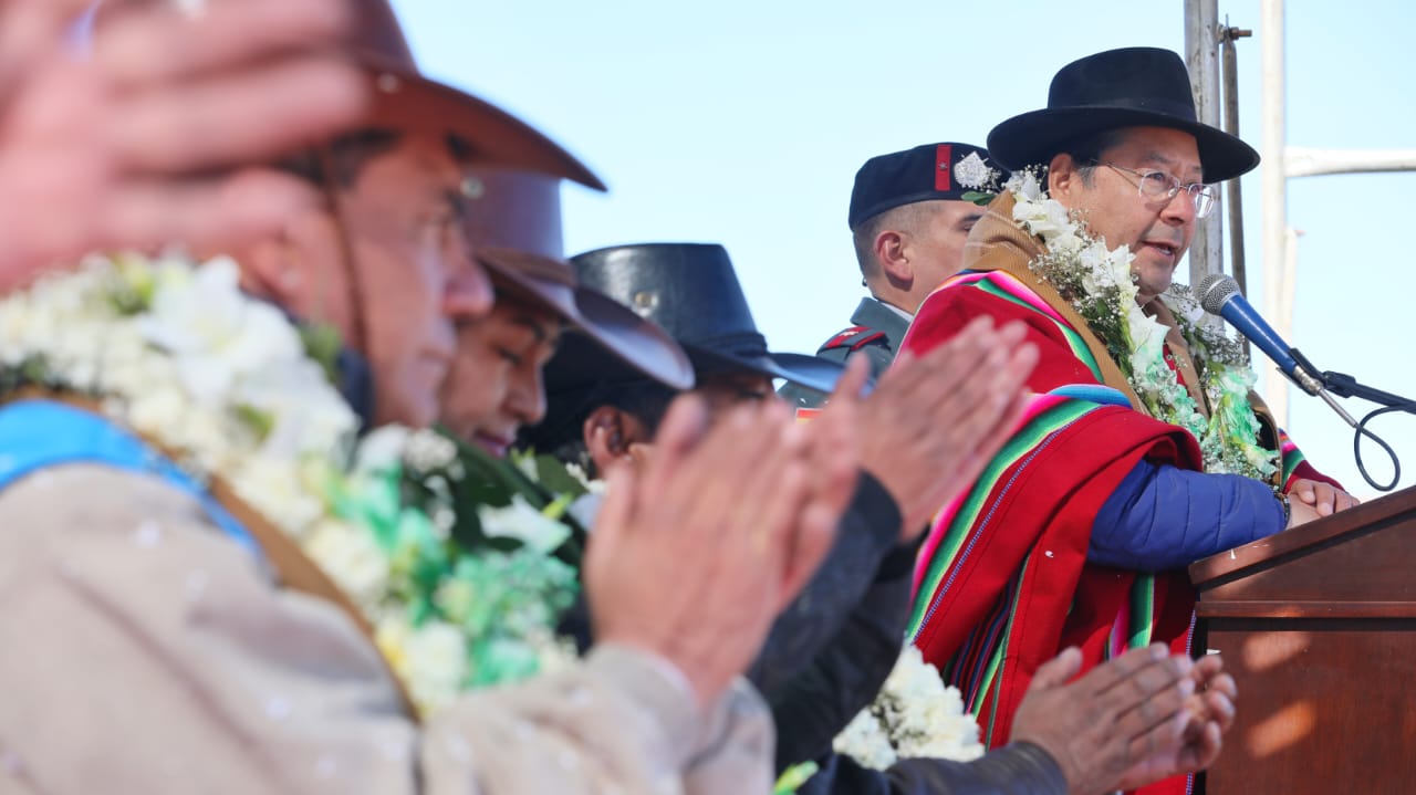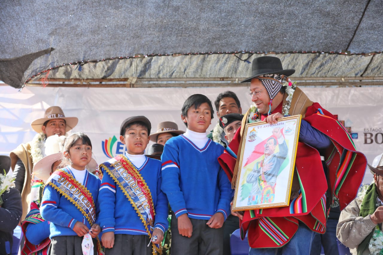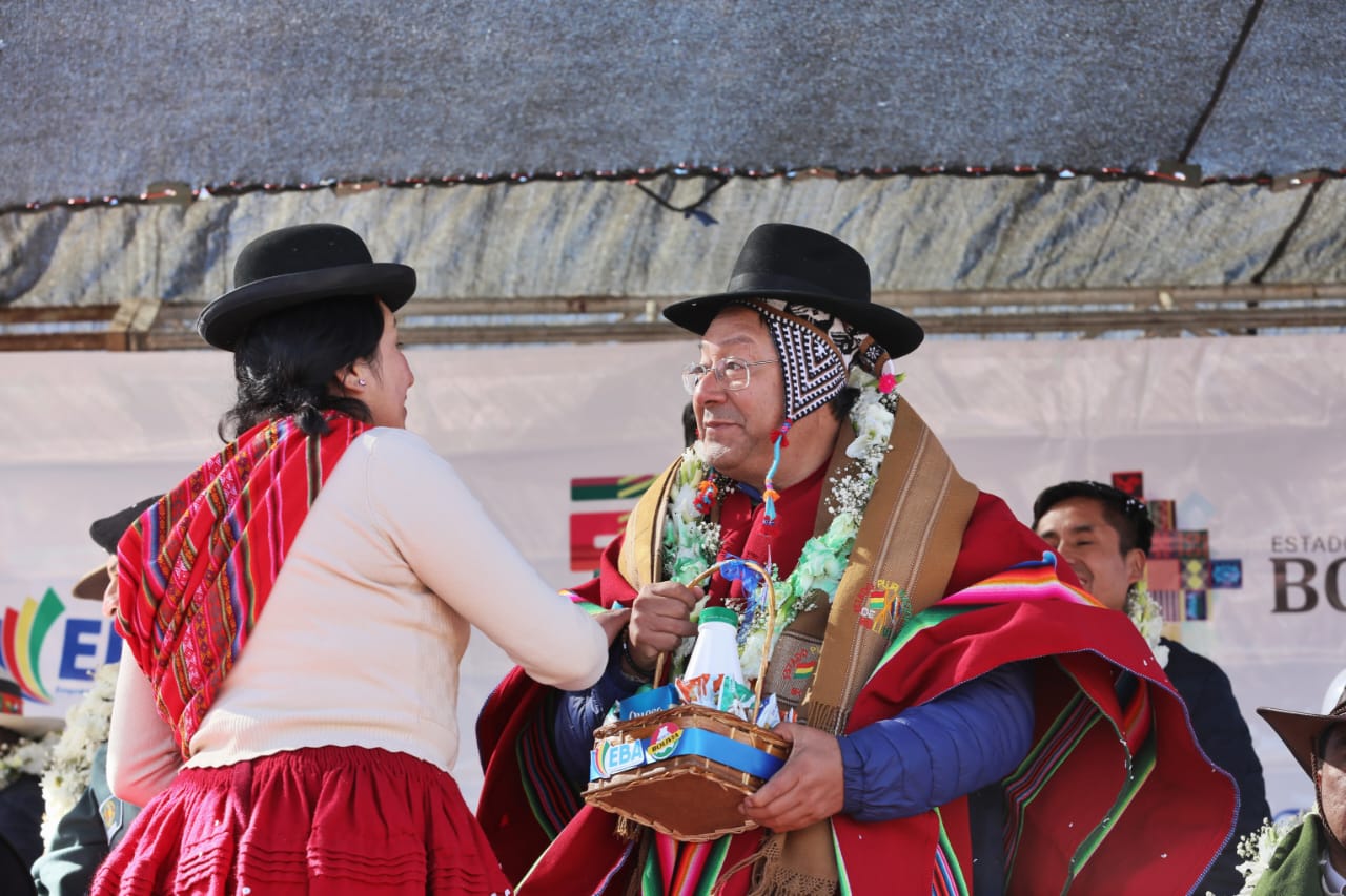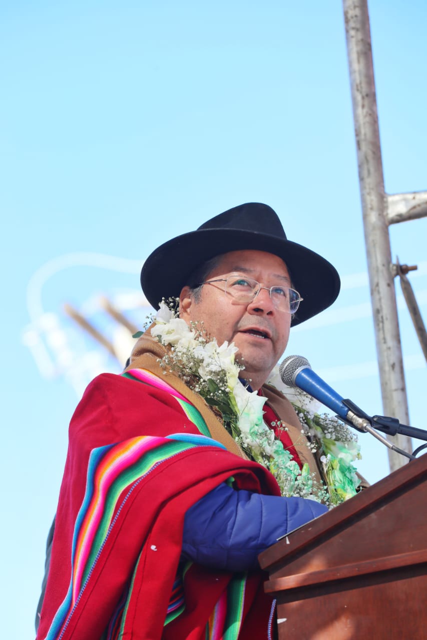 Presidente coloca la piedra fundamental para la ampliación de la Planta Procesadora de Lácteos en Challapata, Oruro. Fuente: Comunicación Presidencial
