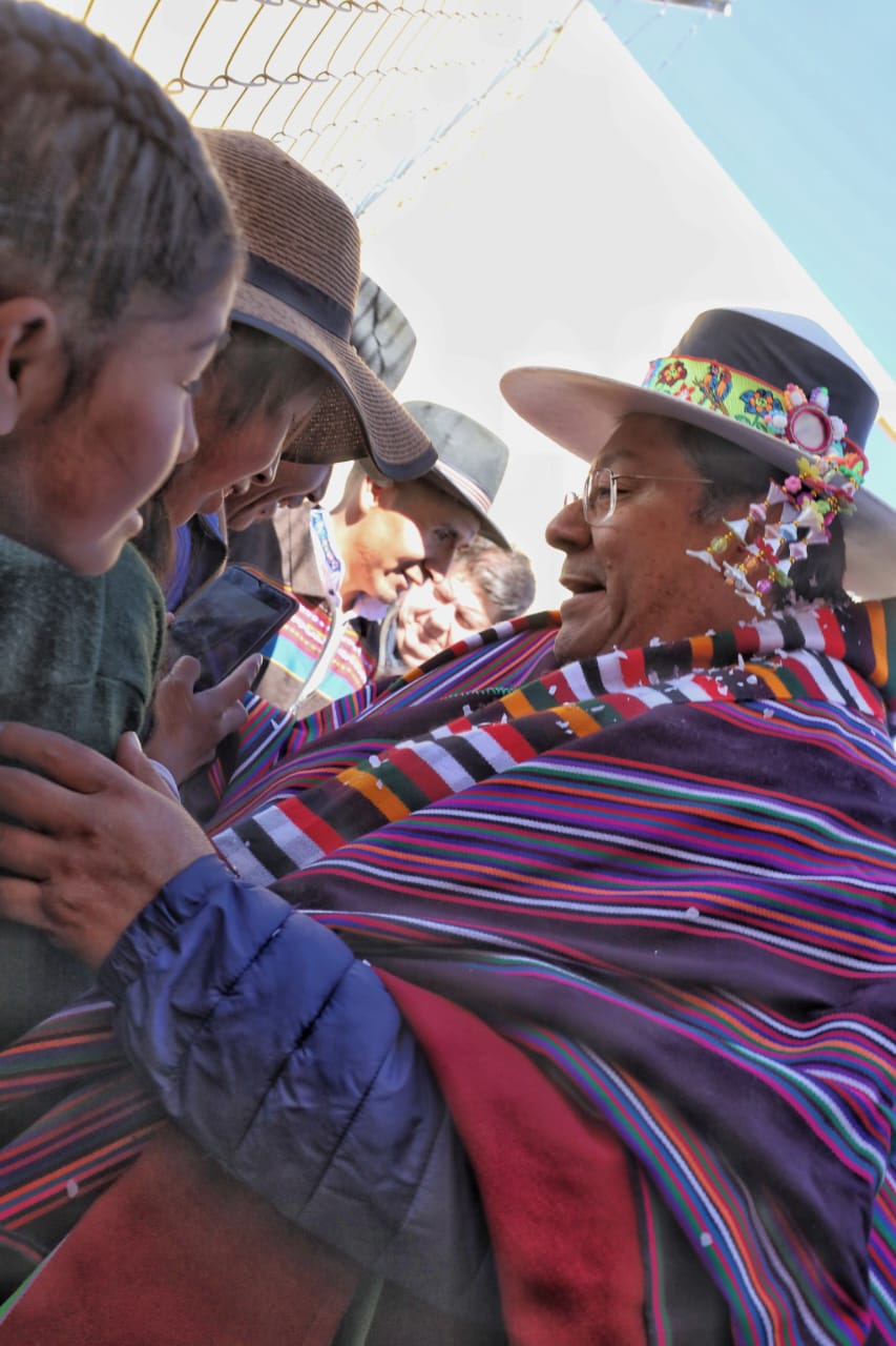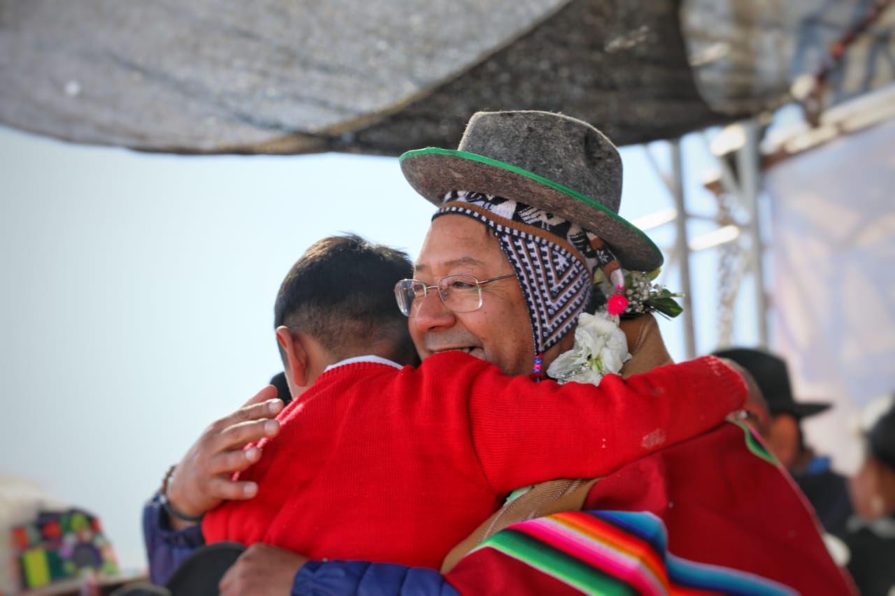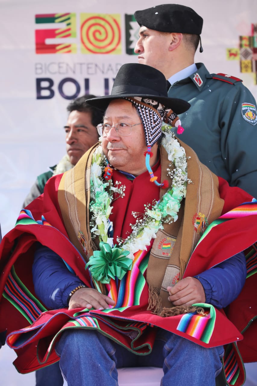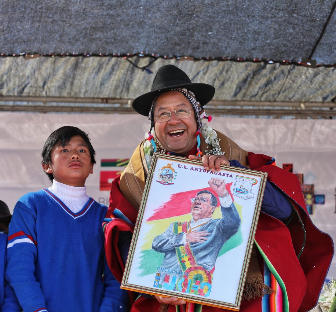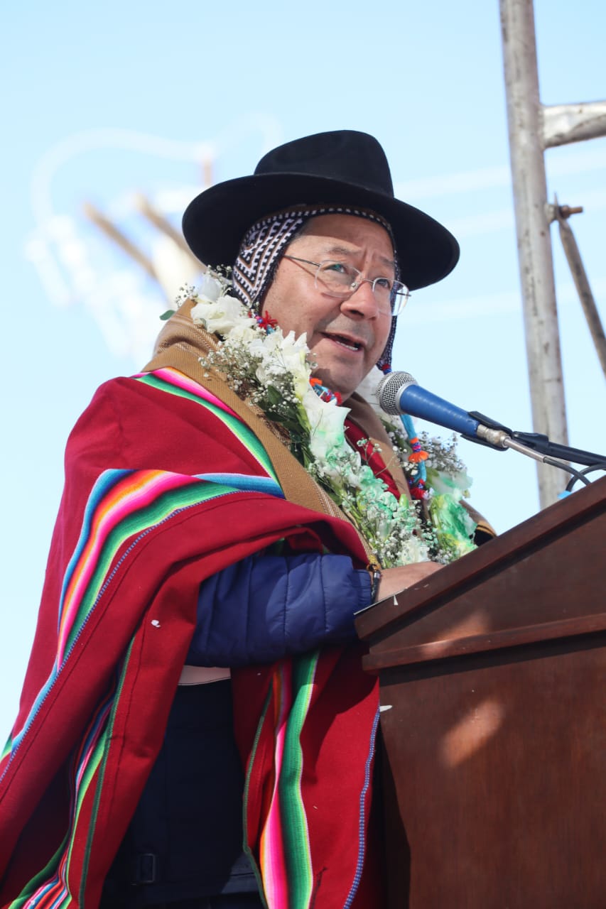 Presidente coloca la piedra fundamental para la ampliación de la Planta Procesadora de Lácteos en Challapata, Oruro. Fuente: Comunicación Presidencial