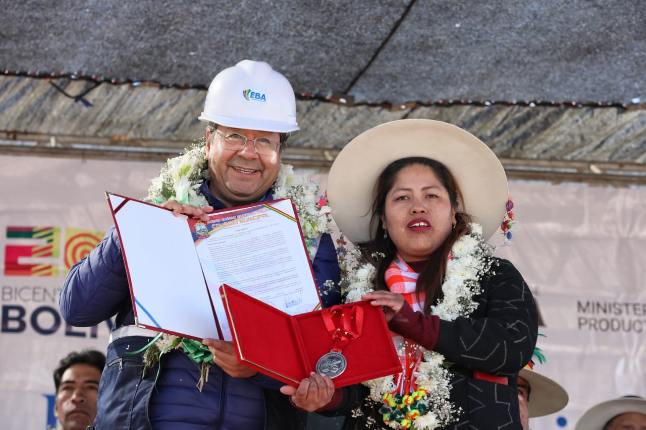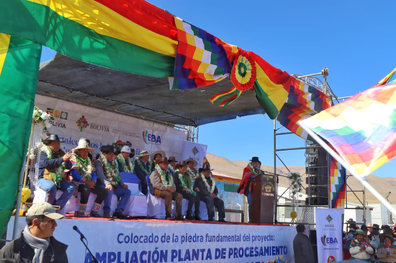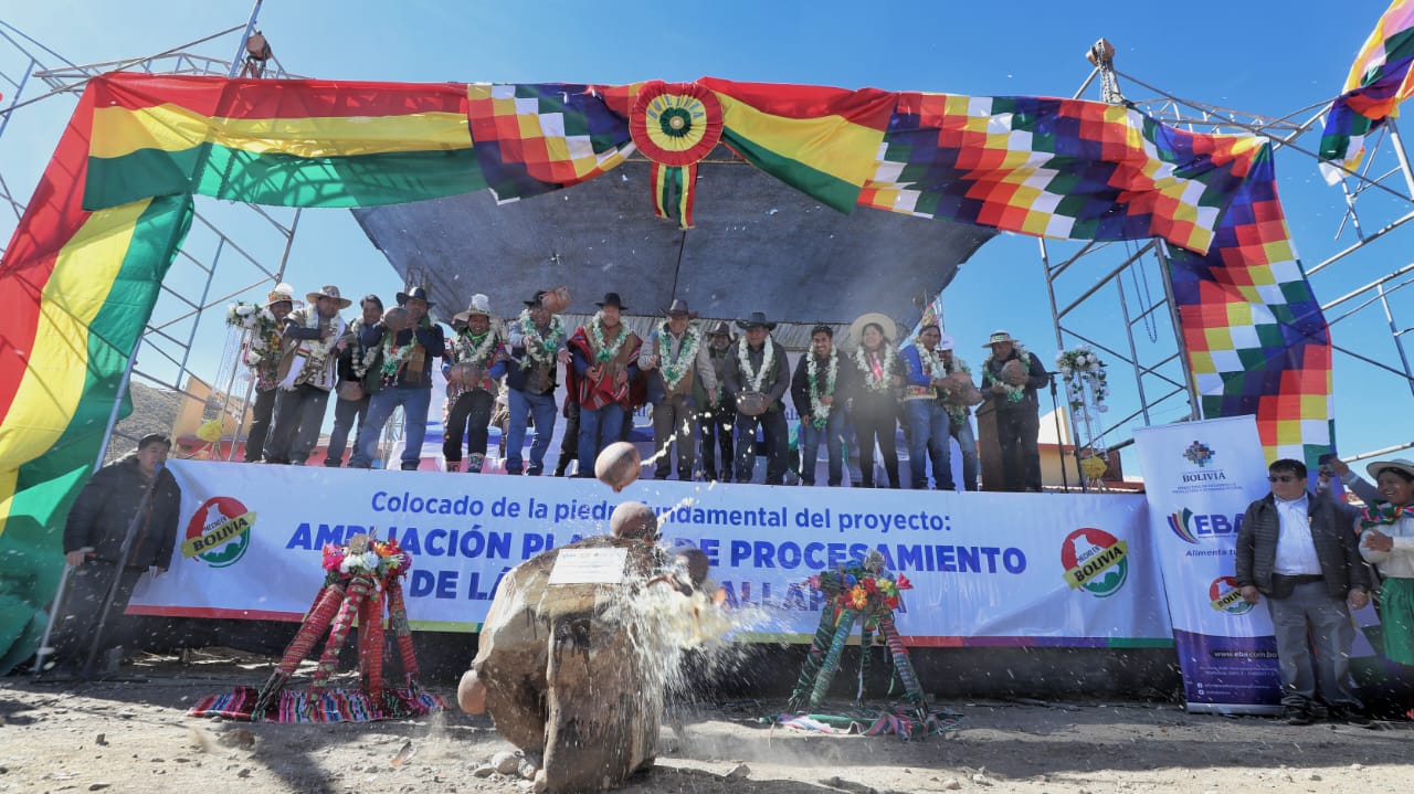 Presidente coloca la piedra fundamental para la ampliación de la Planta Procesadora de Lácteos en Challapata, Oruro