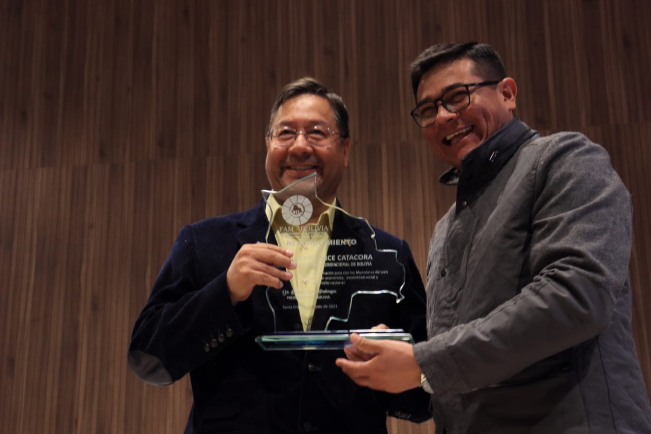 Presidente del Estado Luis Arce participa en la inauguración del Congreso de la FAM Bolivia, en Santa Cruz. Fuente: Comunicación Presidencial