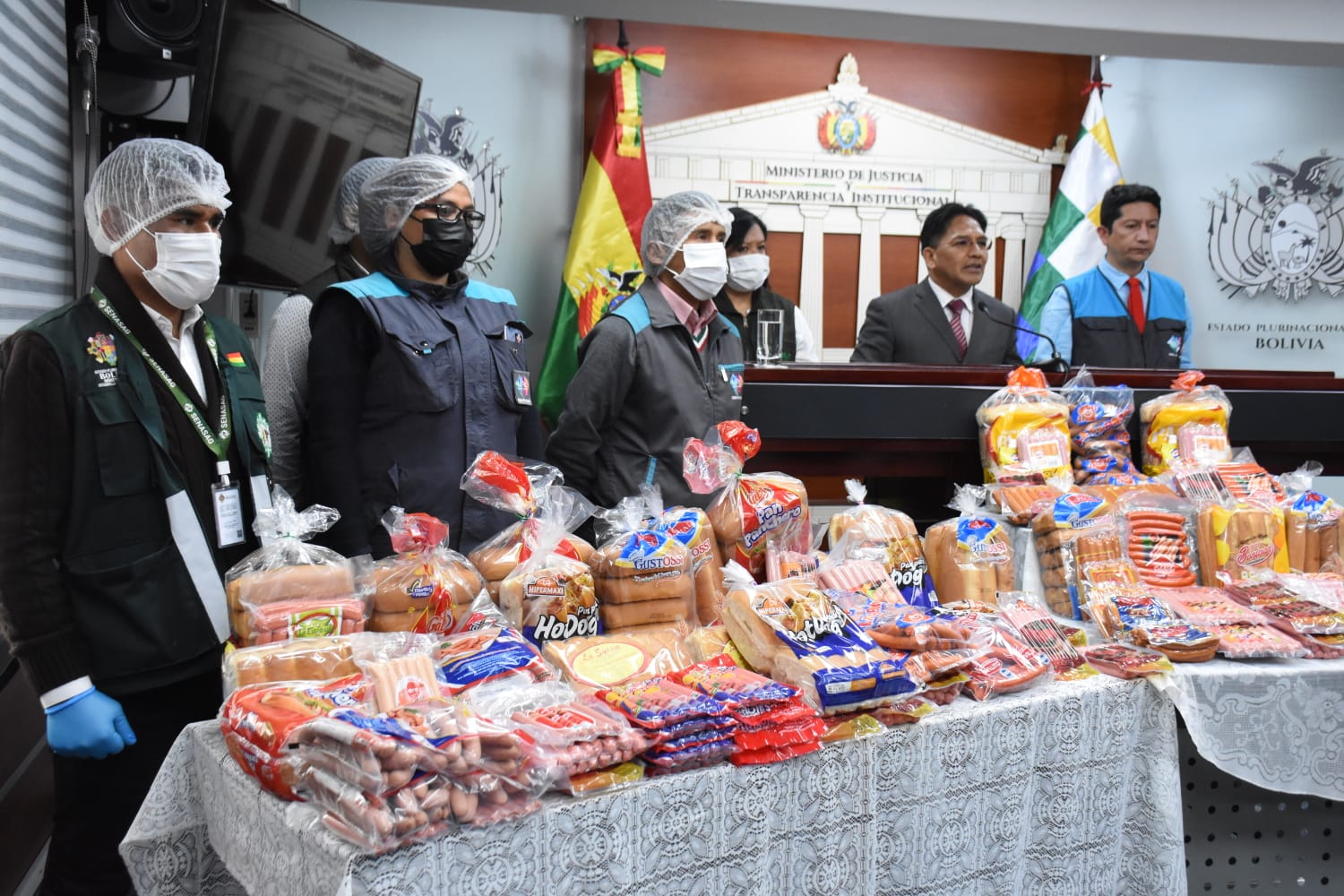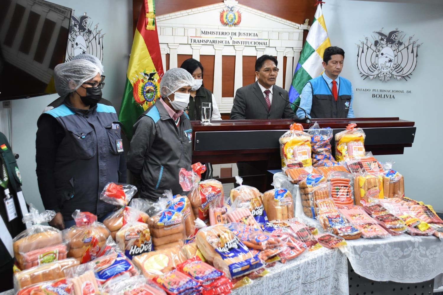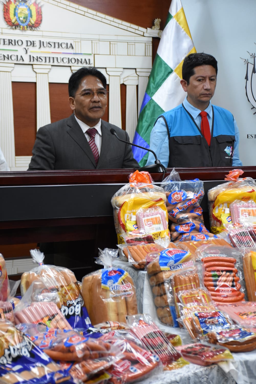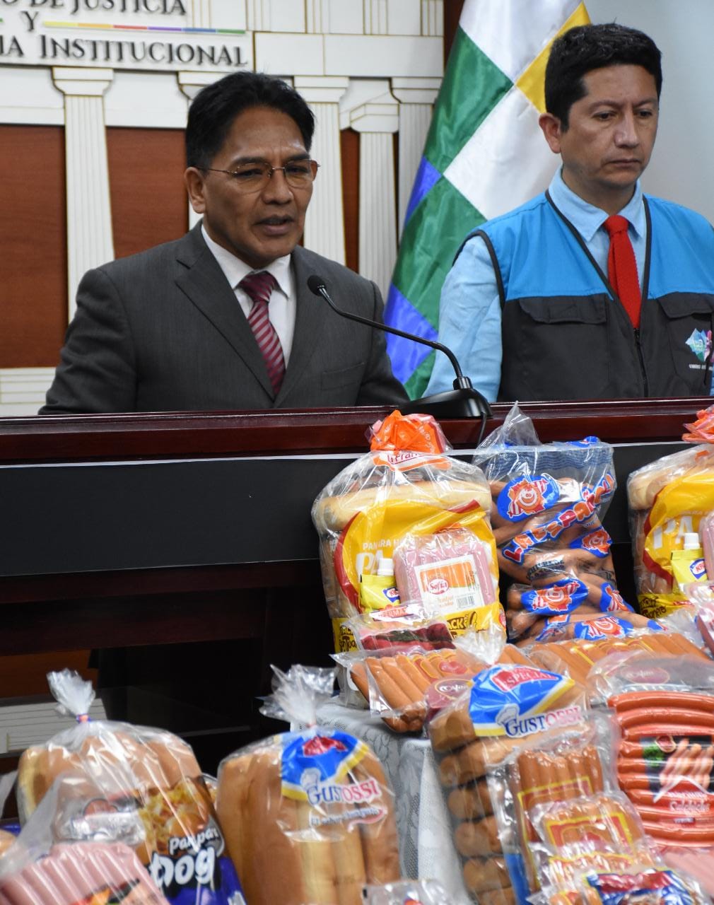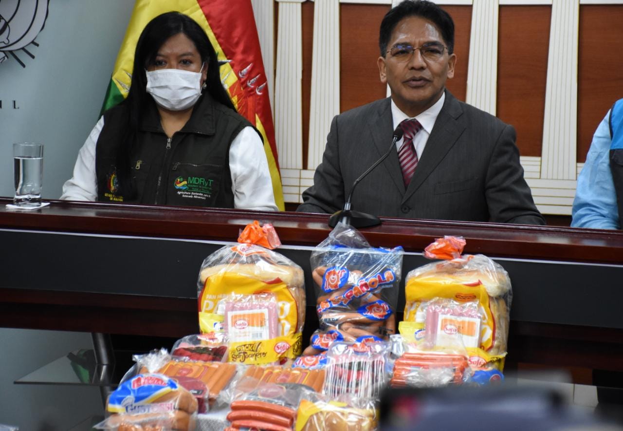 El viceministro de Defensa del Usuario y Derechos del Consumidor, Jorge Silva, informa que se estarán realizando diferentes operativos por las fiestas de San Juan en coordinación con el Servicio Nacional de Sanidad Agropecuaria e Inocuidad Alimentaria (Senasag) y las intendencias municipales. Fotos: Jorge Mamani