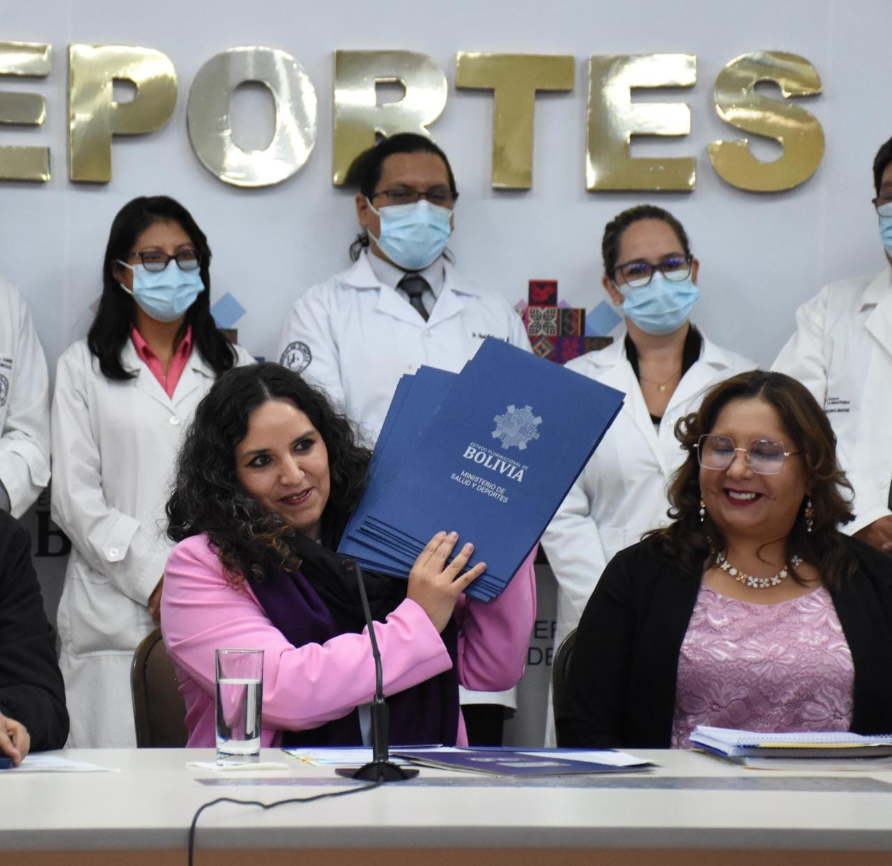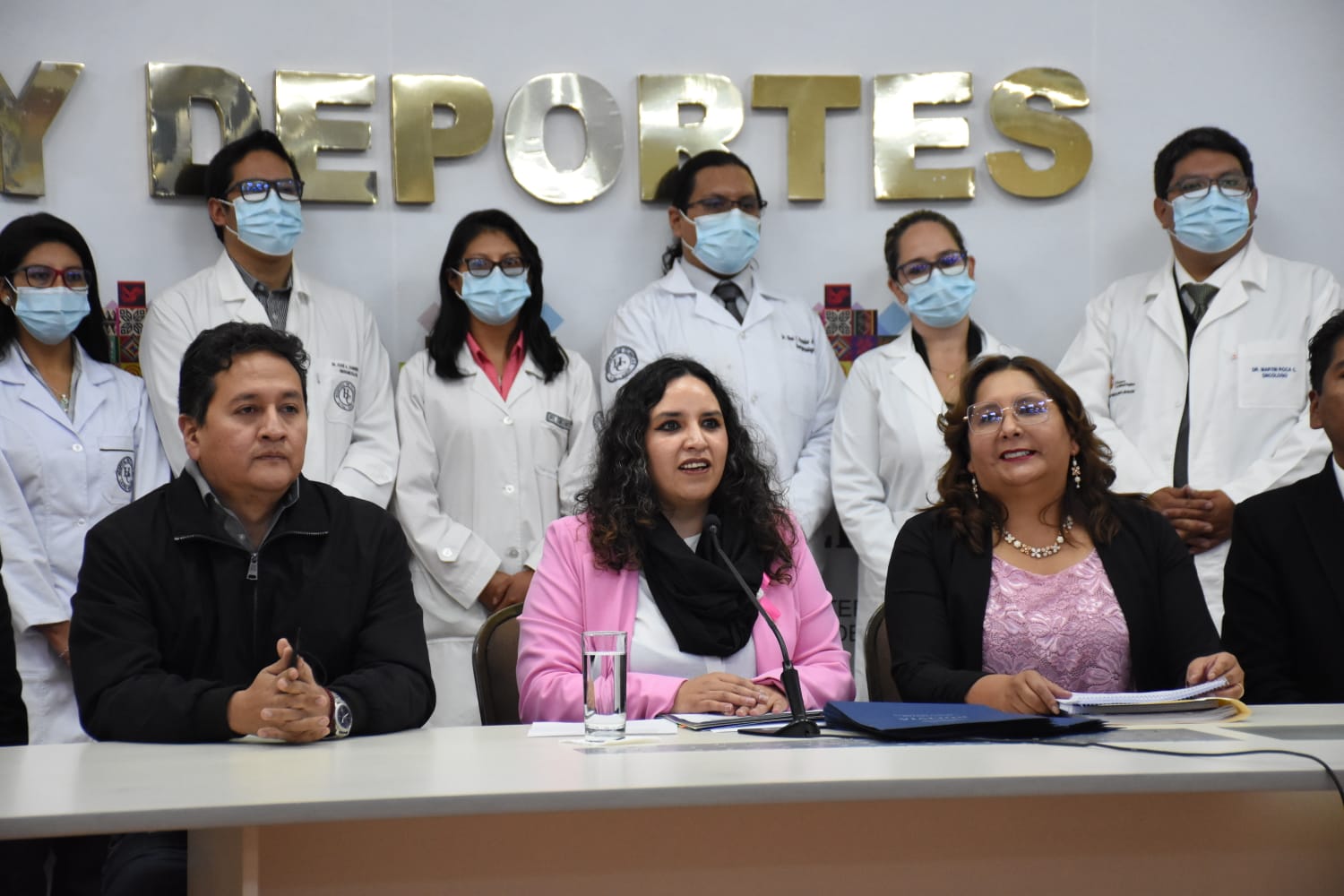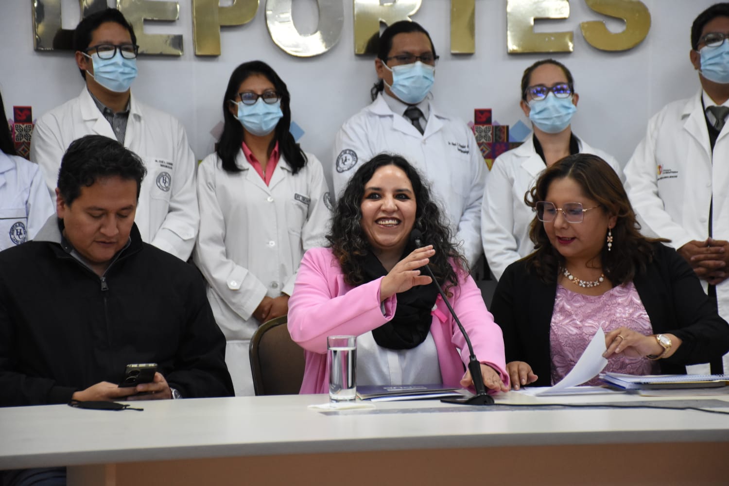 Ministra de Salud y Deportes Maria Renée Castro, en conferencia de prensa sobre acciones inmediatas para mejorar el Sistema de Salud