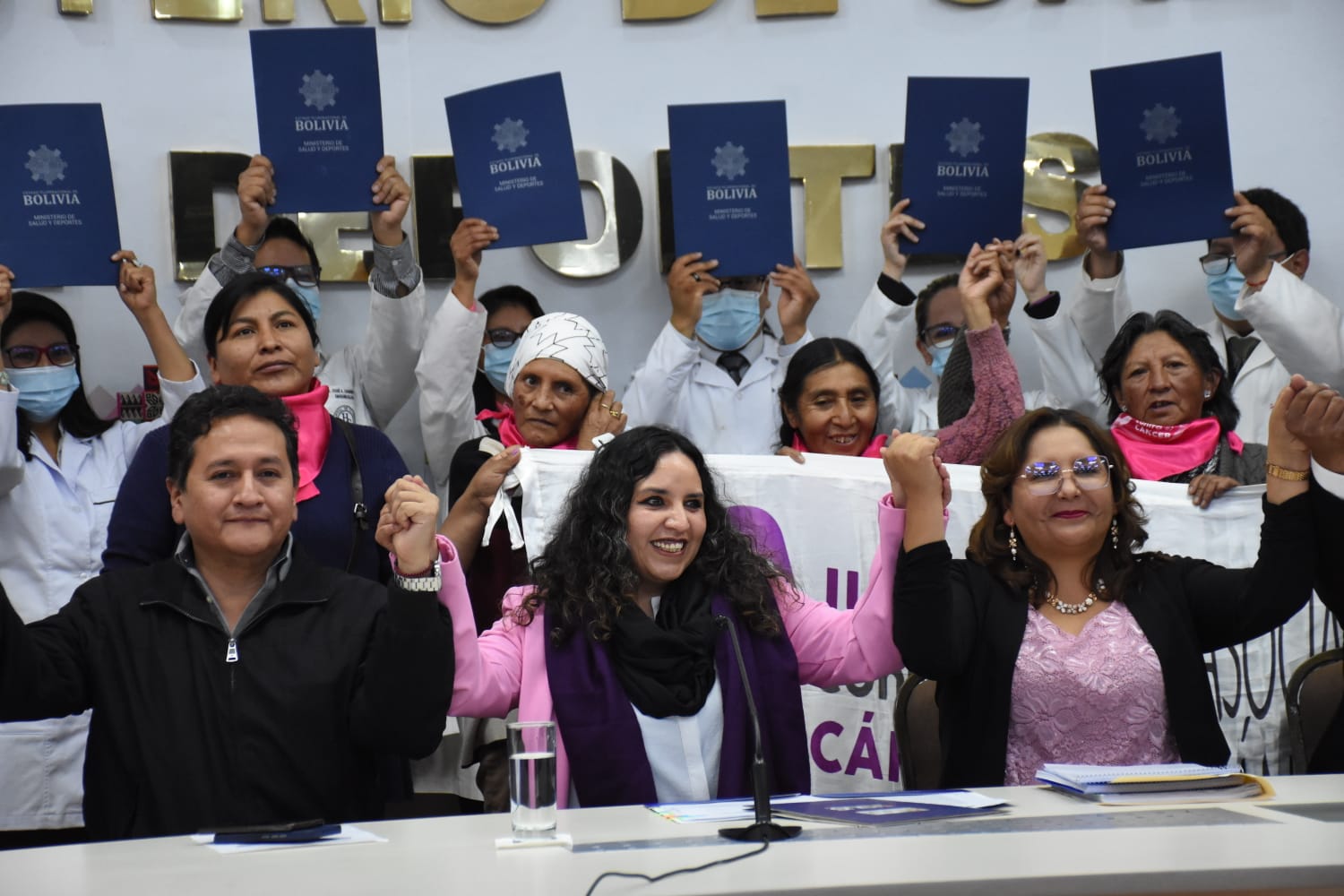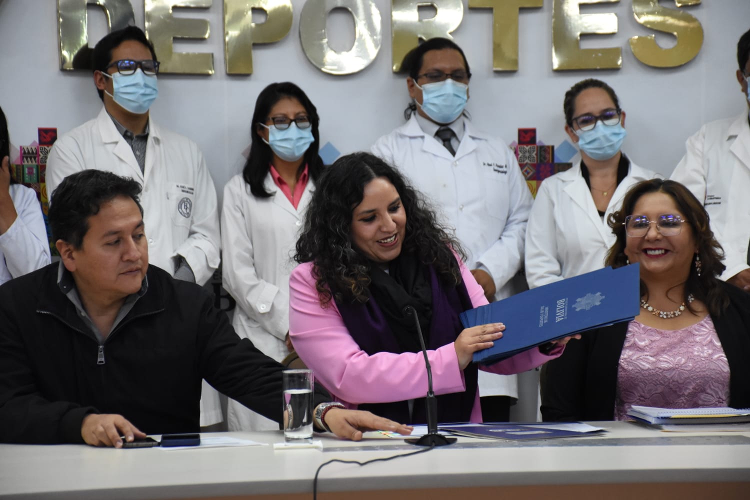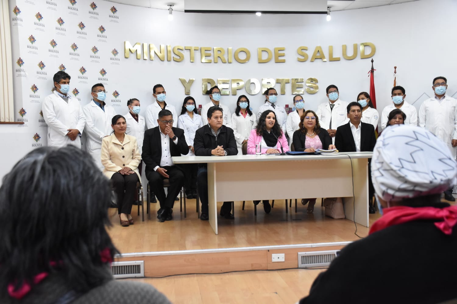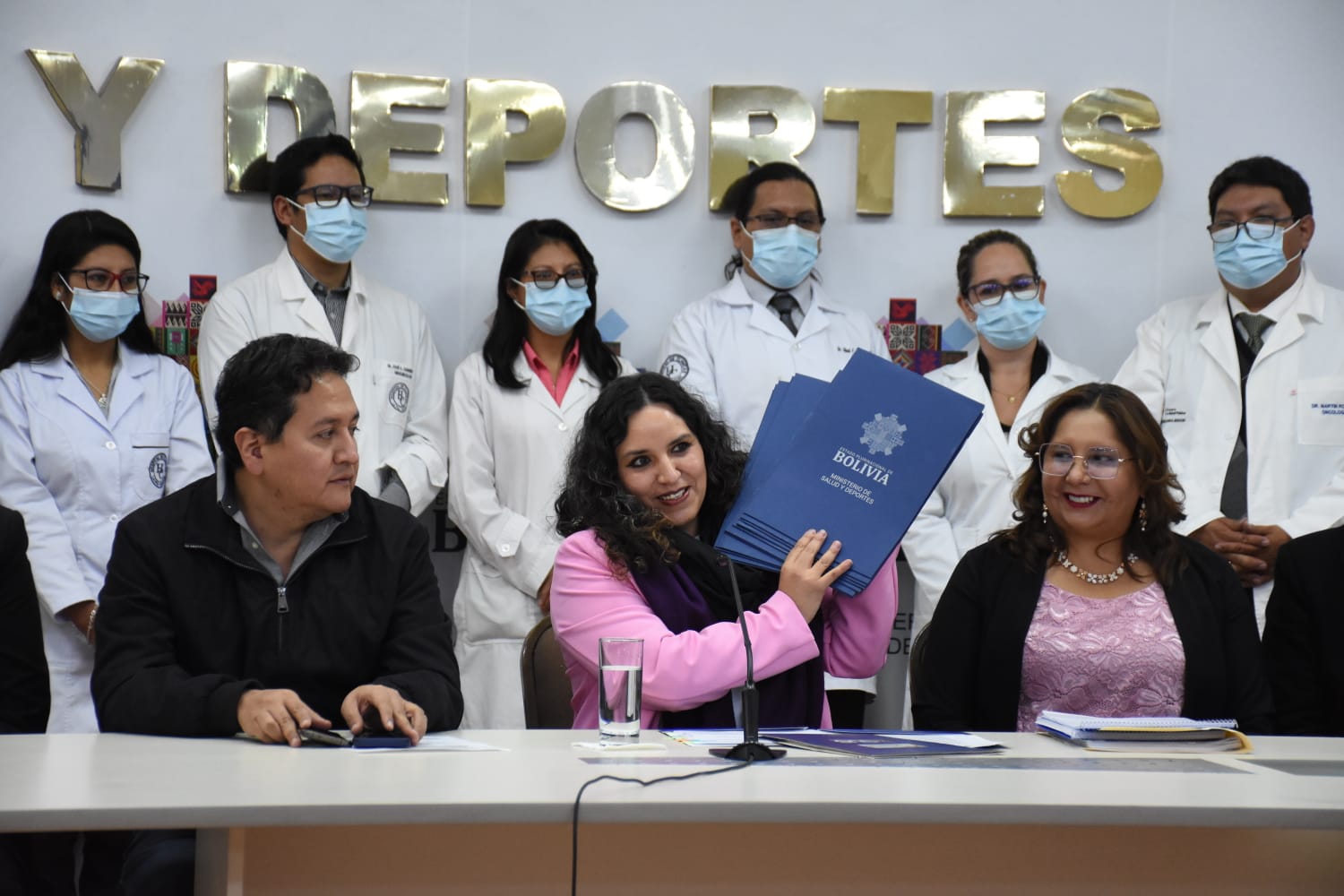 Ministra de Salud y Deportes Maria Renée Castro, en conferencia de prensa sobre acciones inmediatas para mejorar el Sistema de Salud