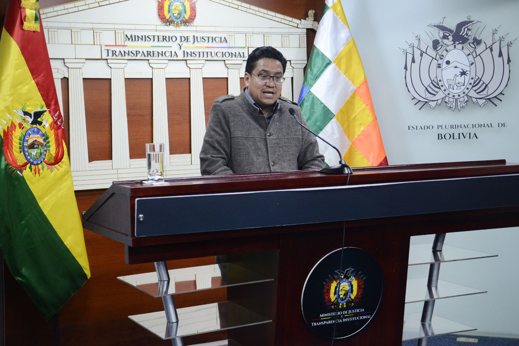 Viceministro de Justicia y Derechos Fundamentales, César Siles Bazán en conferencia de prensa. Foto: Freddy Barragán