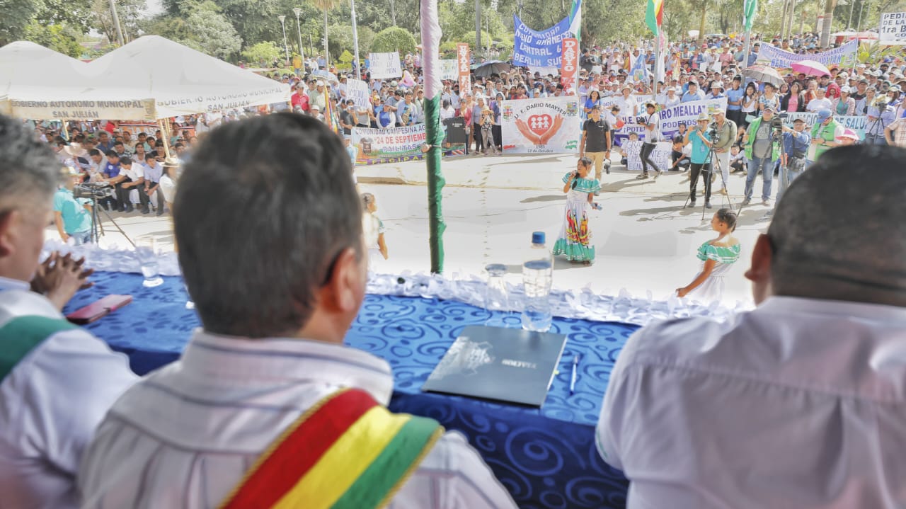 Presidente del Estado Luis Arce participa en la Sesión de Honor por el 55 aniversario del municipio de San Julián, Santa Cruz