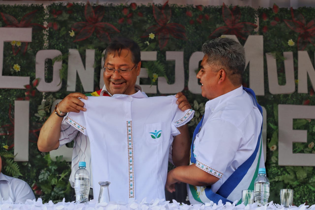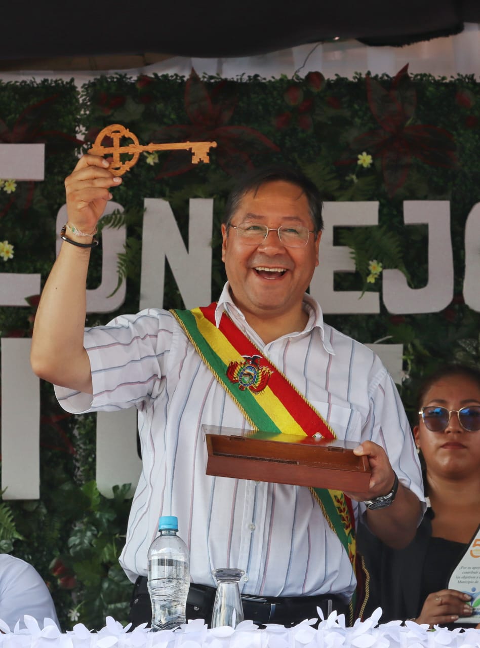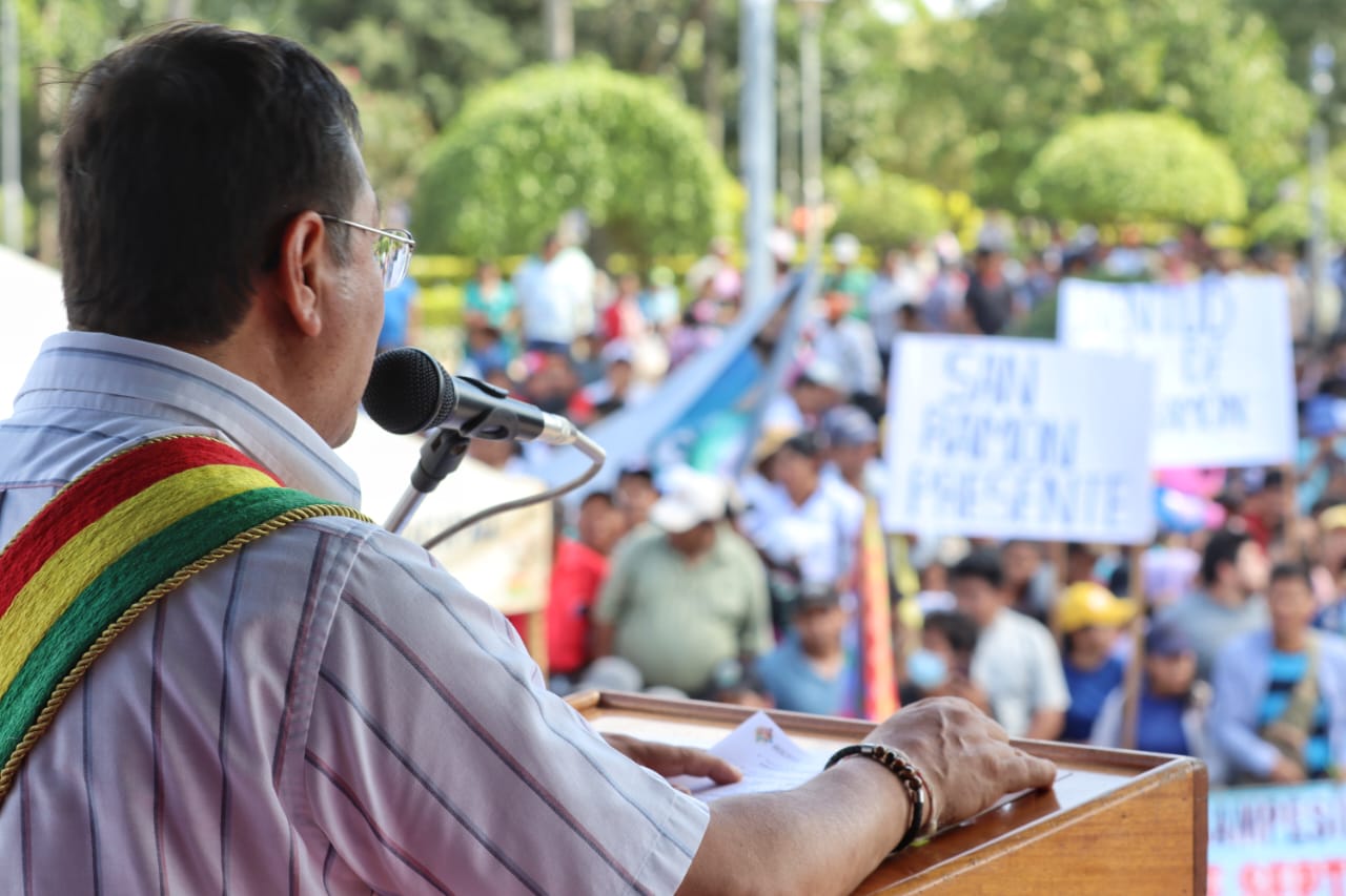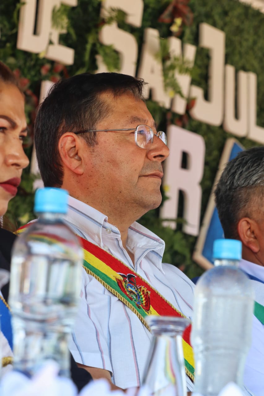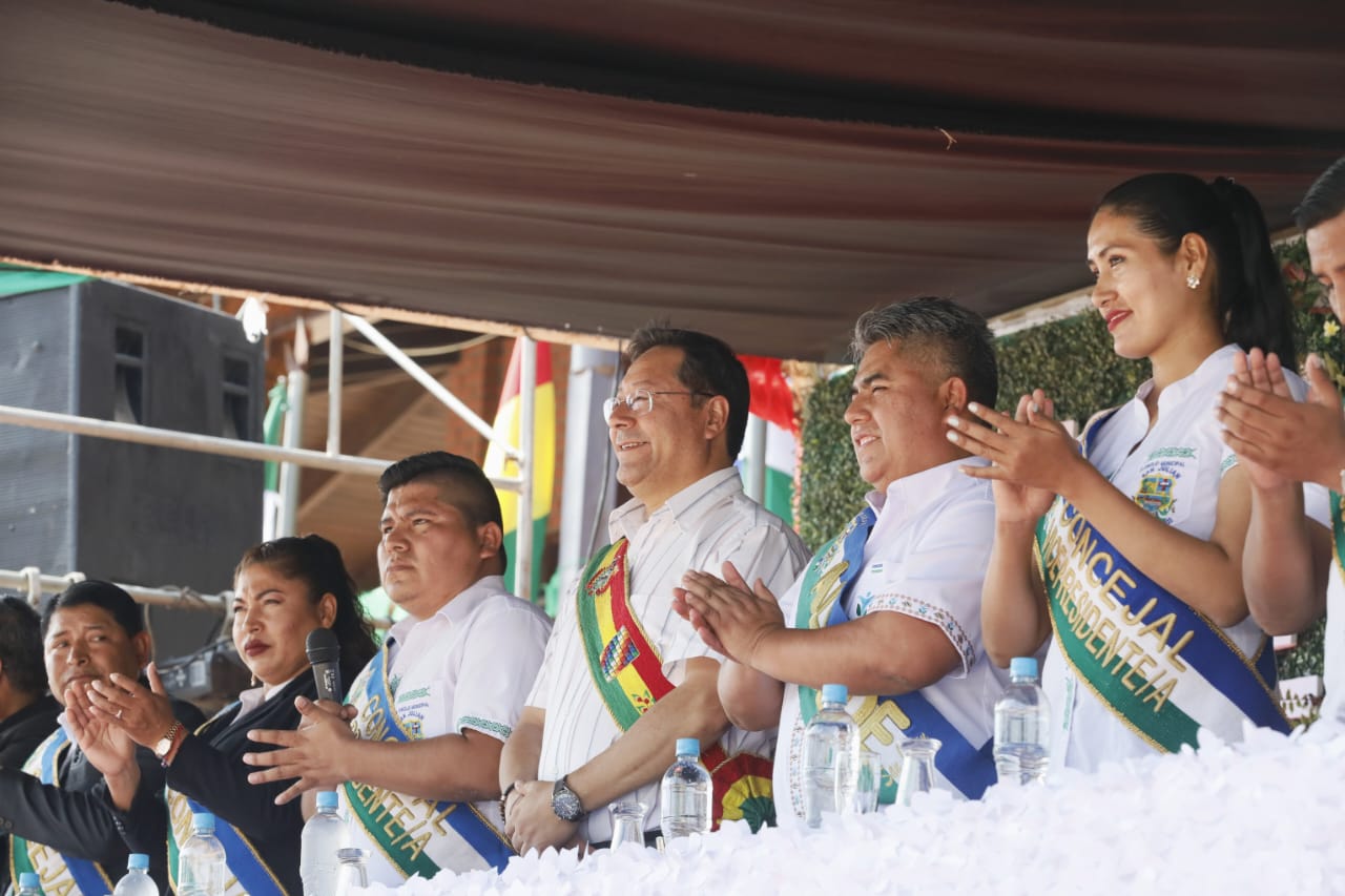 Presidente del Estado Luis Arce participa en la Sesión de Honor por el 55 aniversario del municipio de San Julián, Santa Cruz. Fuente: Comunicación Presidencial