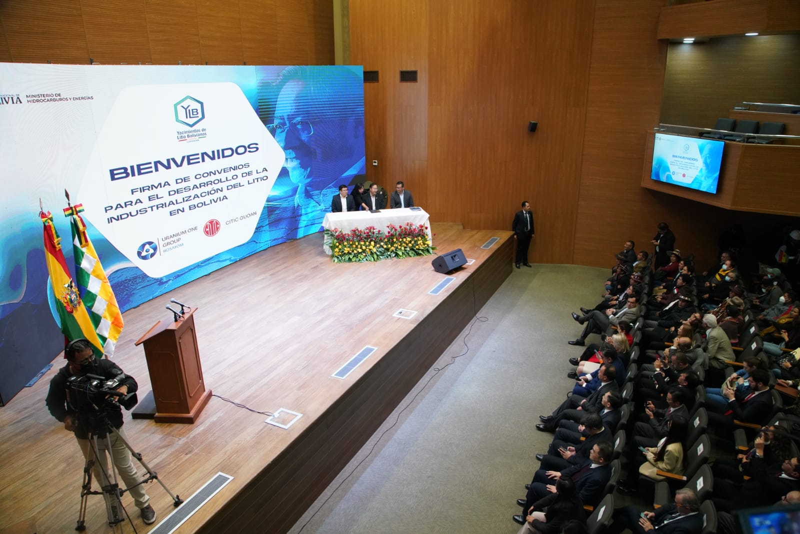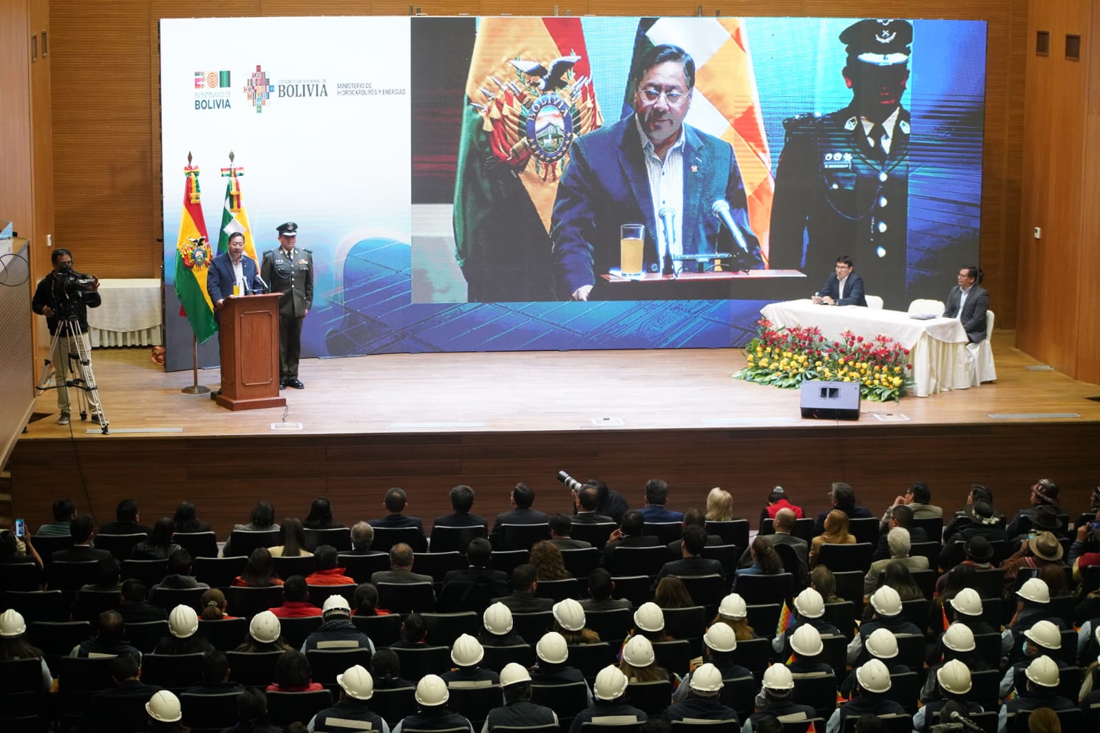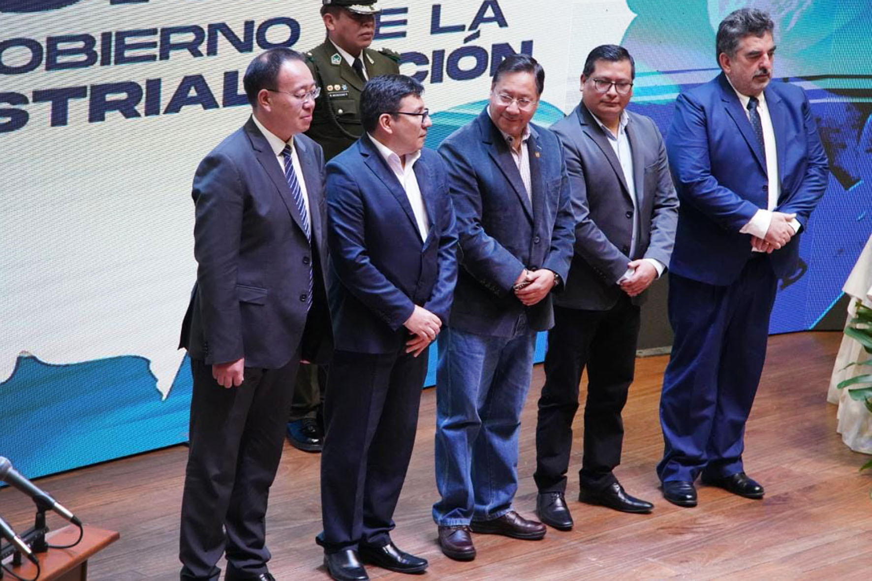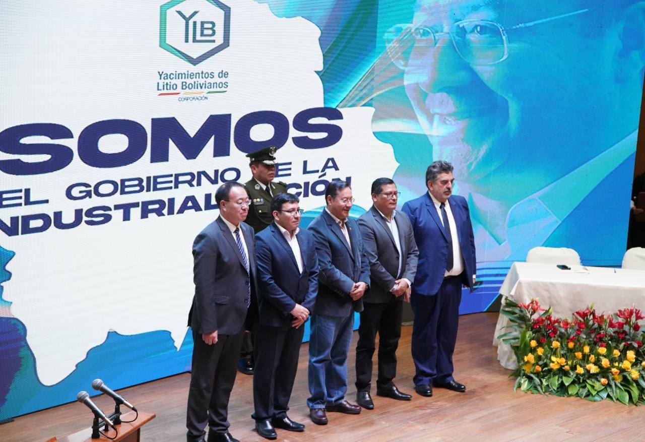 Presidente del Estado Luis Arce Catacora, participa de la firma del convenio para el desarrollo de la industrialización del litio en el salar de Pastos Grandes del departamento de Potosí