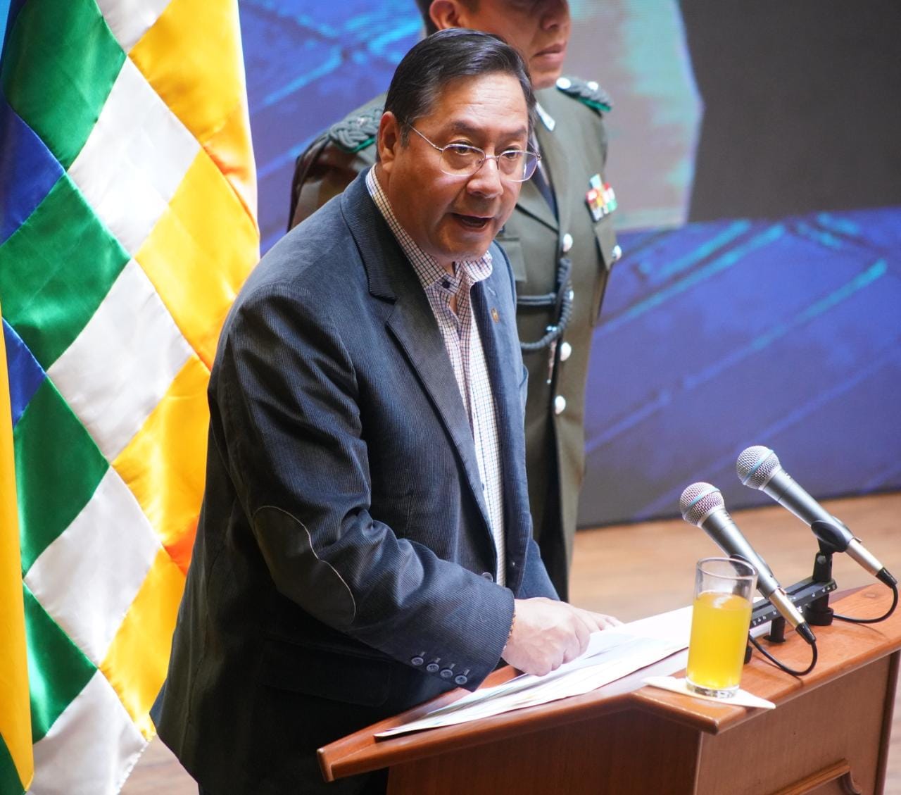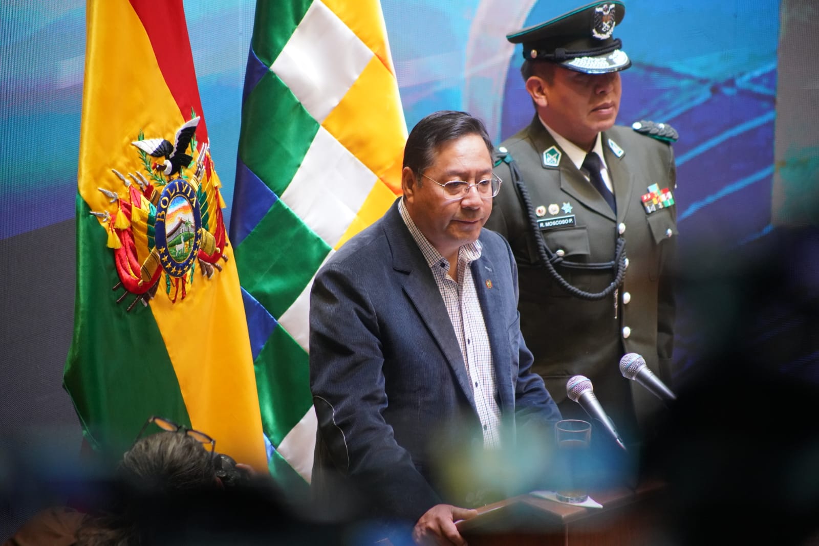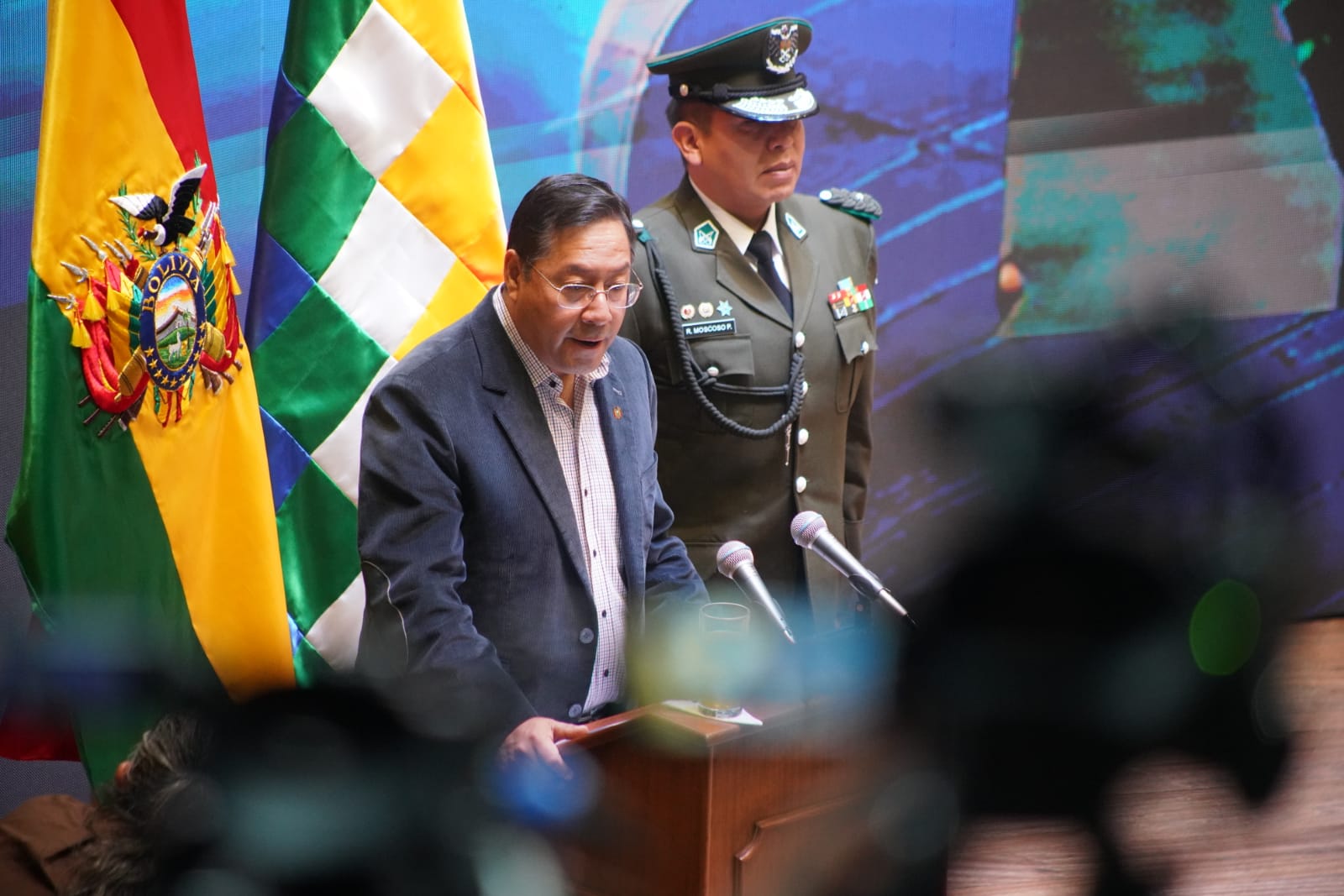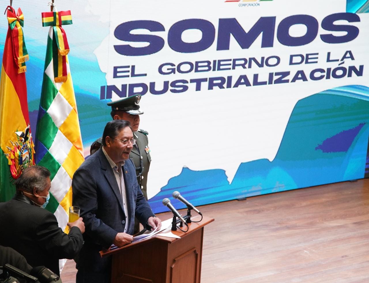 El Presidente del Estado Plurinacional de Bolivia Luis Arce Catacora, participa de la firma del convenio para el desarrollo de la industrialización del litio en el salar de Pastos Grandes del departamento de Potosí. Fotos: Jorge Mamani
