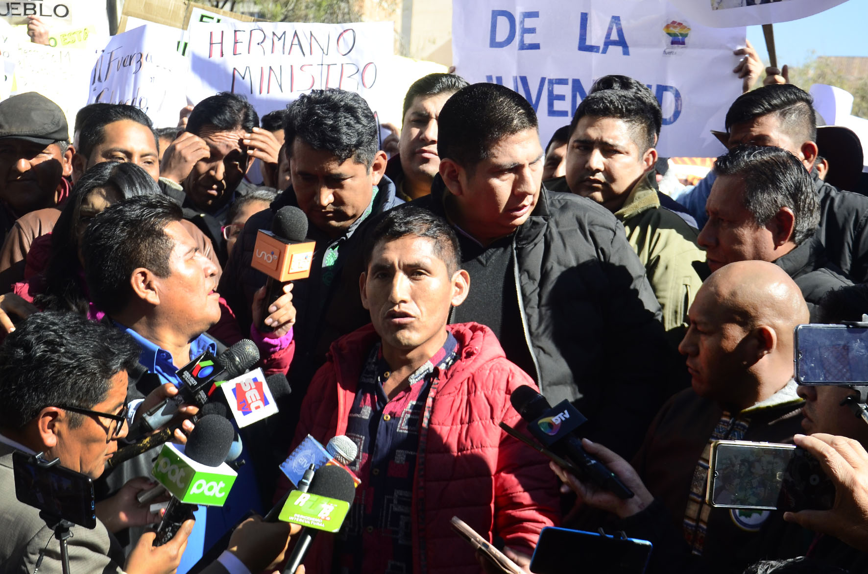 La Confederación de Interculturales en conferencia de prensa dan su respaldo al Gobierno Nacional y Ministro de Gobierno Eduardo Del Castillo. Fotos: Freddy Barragán
