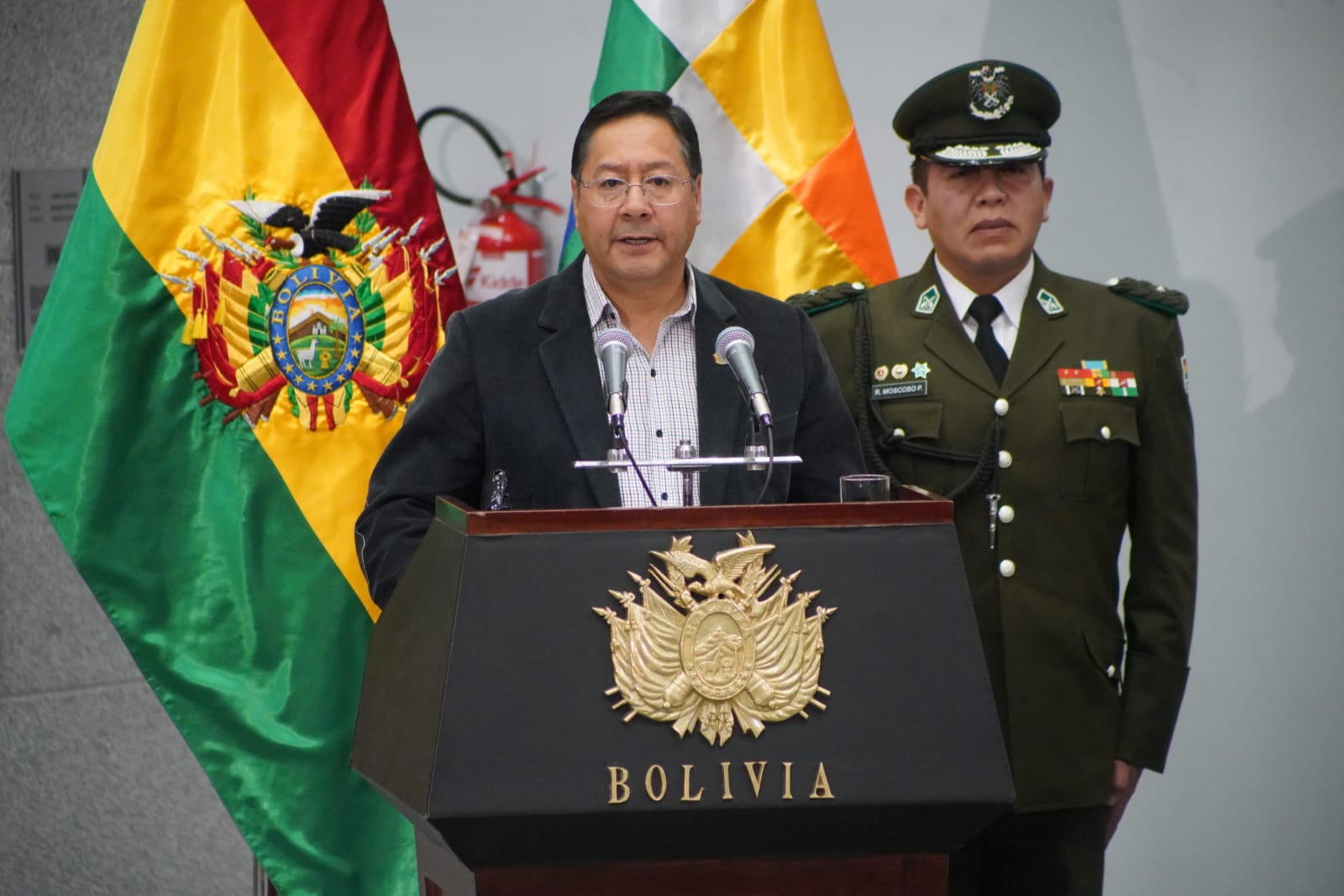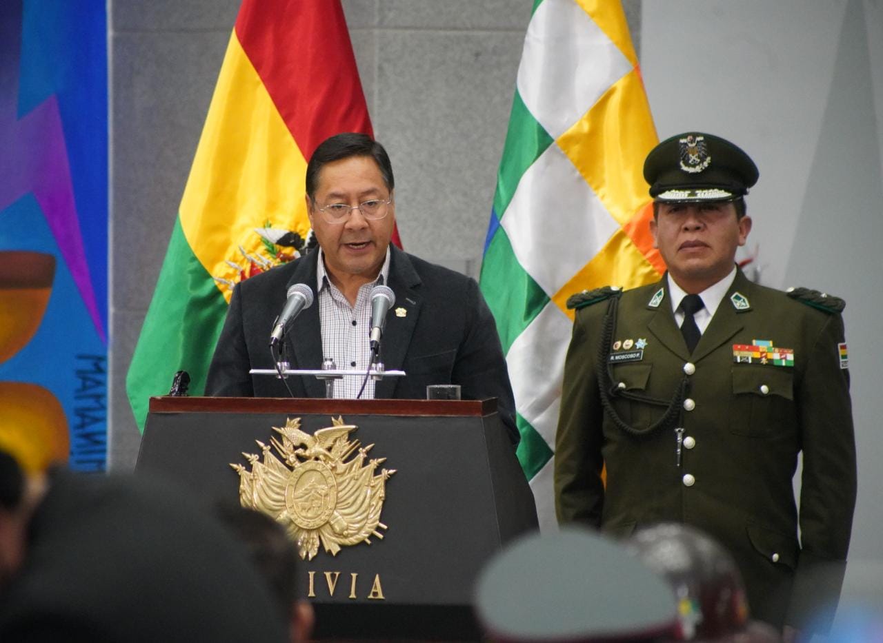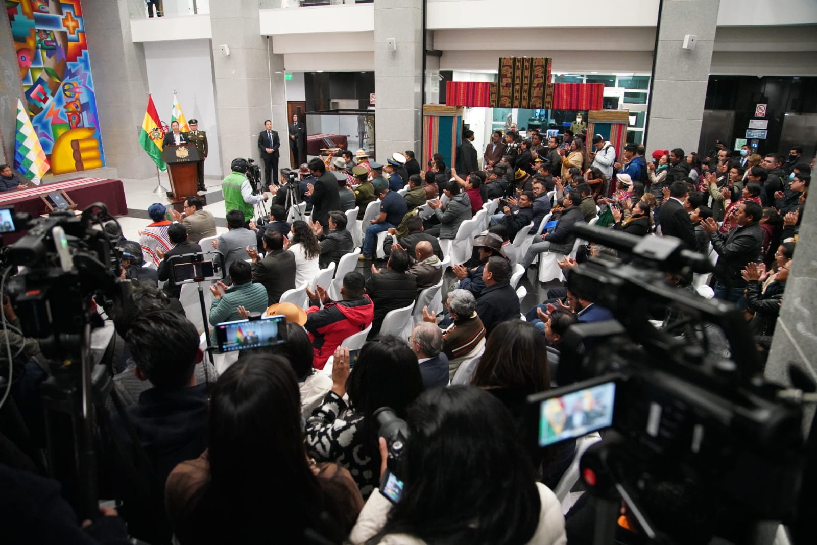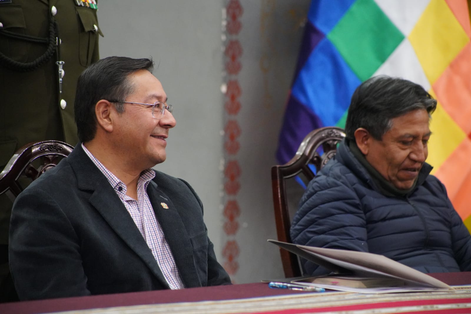 El presidente constitucional del estado Luis Alberto Arce Catacora, ratifica a Eduardo del Castillo como Ministro de Gobierno, en el Hall de la Casa Grande del Pueblo. Fotos: Jorge Mamani y Josué Cortéz