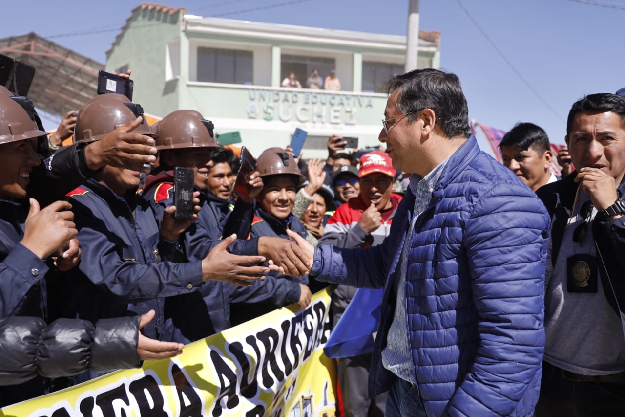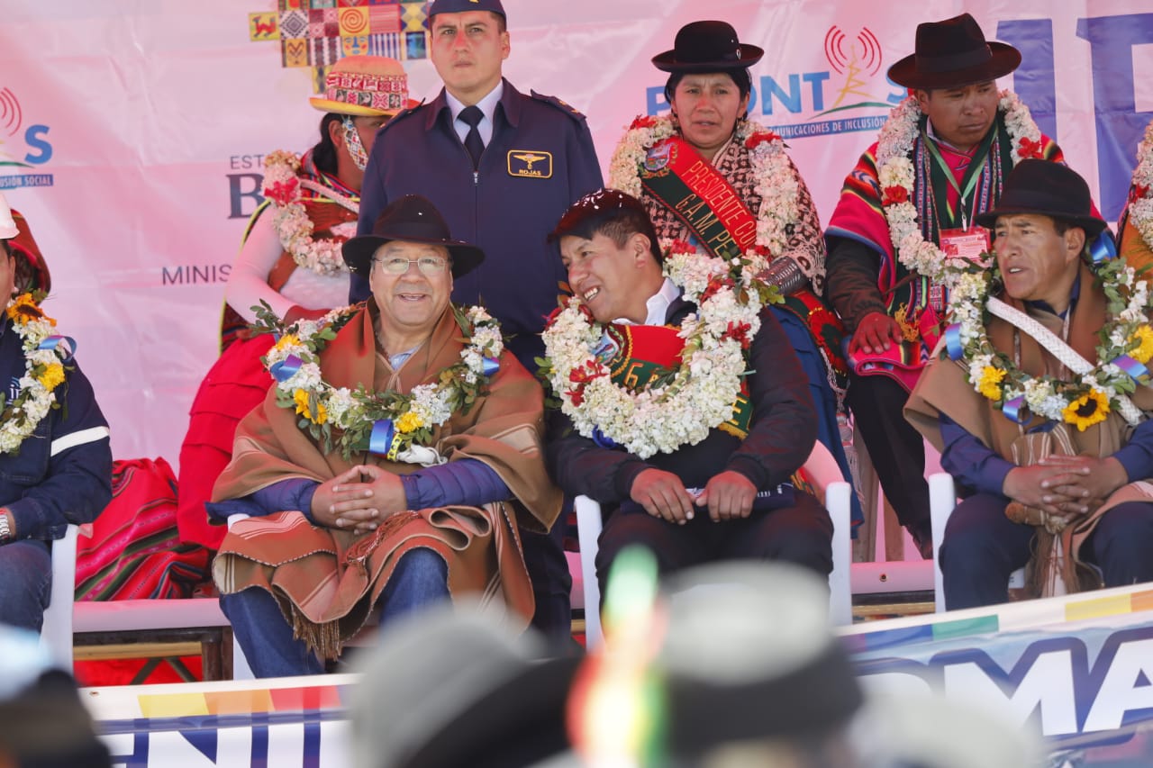 Presidente del Estado Luis Arce, entrega Radio Bases de Entel en el municipio de Pelechuco. Fuente: Comunicación Presidencial