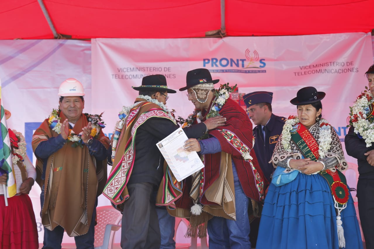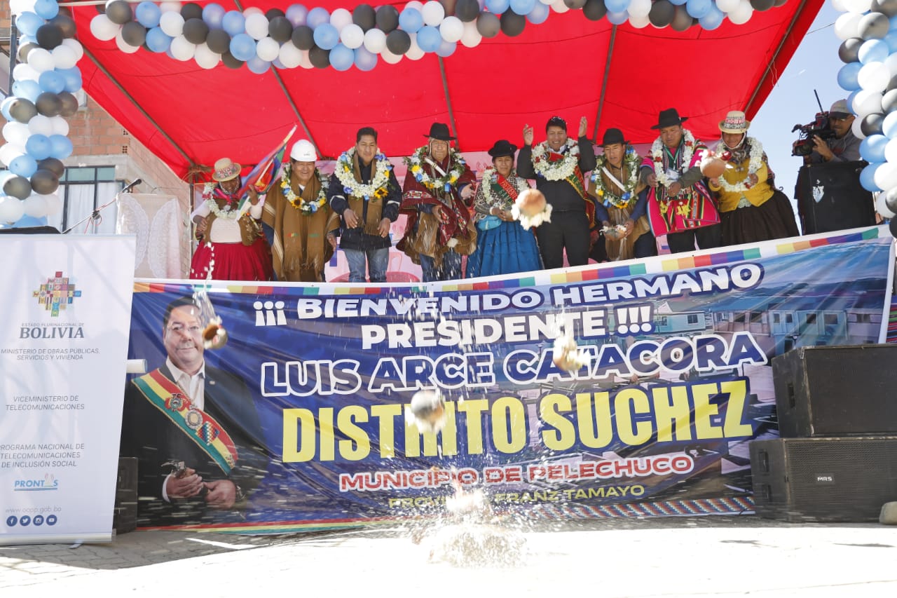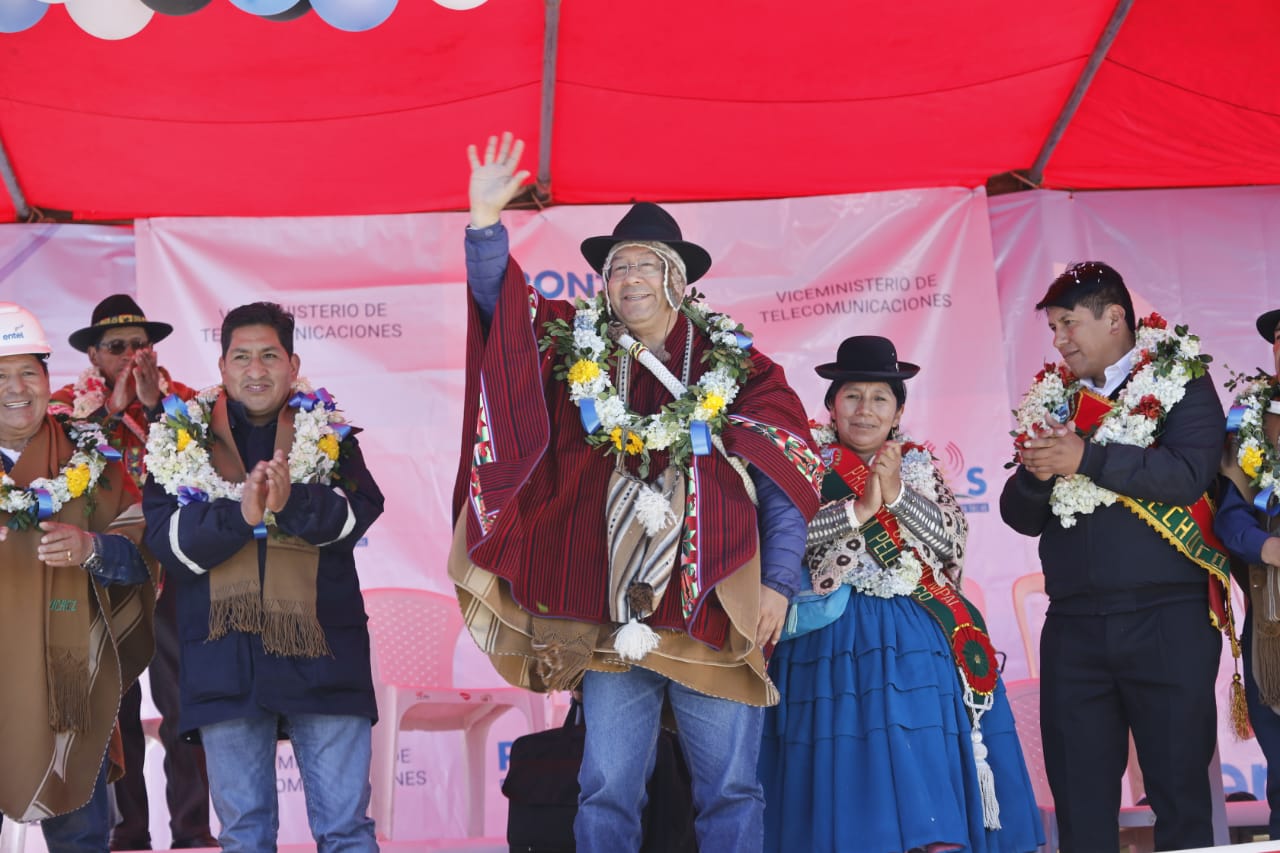 Presidente del Estado Luis Arce, entrega Radio Bases de Entel en el municipio de Pelechuco